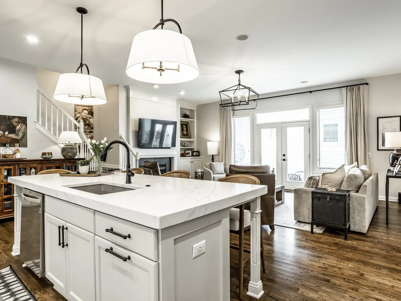 Welcome to the epitome of luxury and low-maintenance living in the gated community of Sycamore Springs. This stunning 4-bedroom, 4.5-bath residence features the sought-after "Hamilton" floor plan, complete with a rare 3-car garage and spacious private courtyard-exceptional amenities for this section of the neighborhood. Beautifully updated throughout, the home blends sophistication with everyday comfort. A full list of updates and features is available in the supplements. The main-floor primary suite offers a luxurious retreat with a jacuzzi tub, separate shower, and a generous walk-in closet with direct laundry room access. The renovated kitchen features newly faced cabinetry, quartz countertops, and a large custom island perfect for entertaining. It opens seamlessly to the great room and dining room, creating an inviting, functional layout. The main floor also showcases refinished hardwoods, a newly added office space, updated lighting, and custom blinds and window treatments. One upper level features two bedrooms, a full bath, and a spacious loft. A separate upper-level suite offers a large fourth bedroom and full bath-ideal for guests or multigenerational living. The finished basement adds even more living space with a wet bar, renovated built-ins, another full bath, and abundant storage. Outdoor highlights include a charming front porch, a second-floor balcony, and a generous private courtyard. Neighborhood amenities include a clubhouse, pool, fitness center, and basketball court. In this section of Sycamore Springs, the HOA also covers roof and exterior maintenance for added peace of mind. Enjoy a prime location that pairs privacy and exclusivity with convenient access to shopping, dining, and I-465.