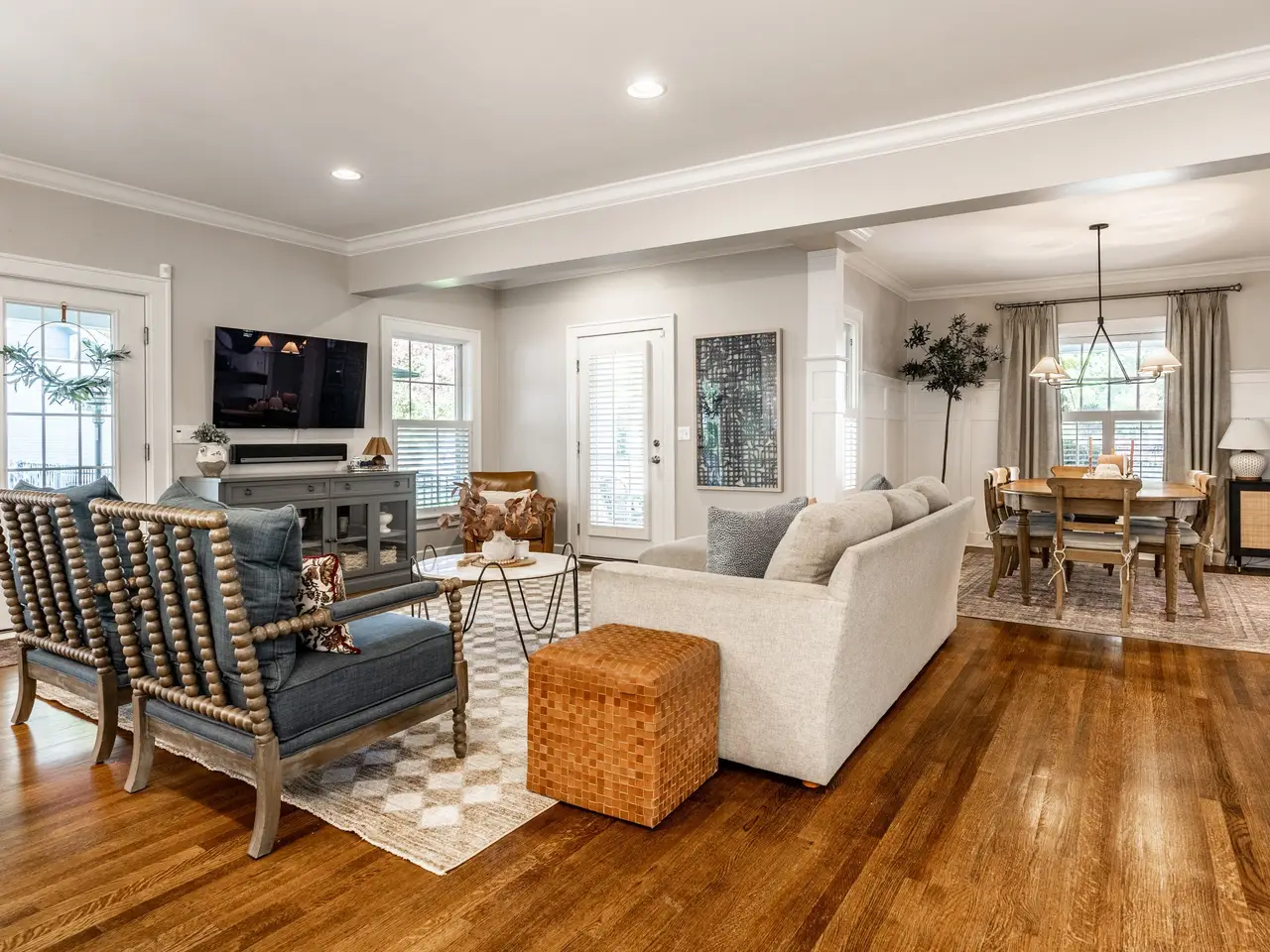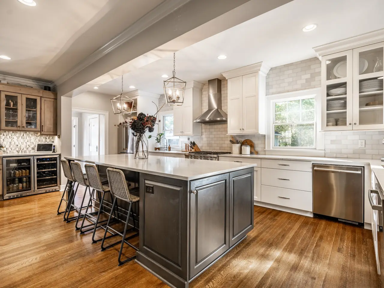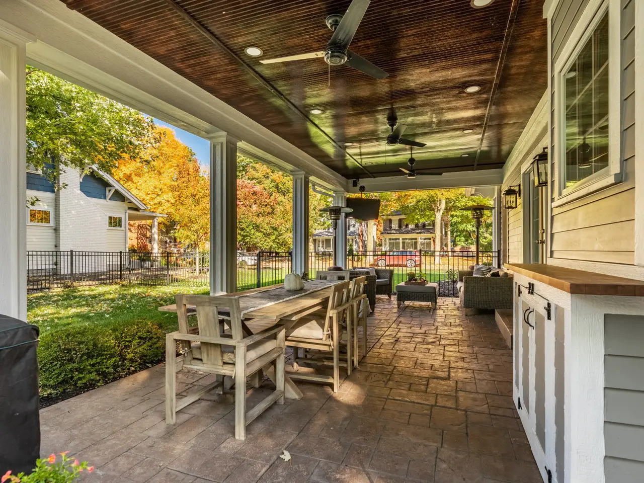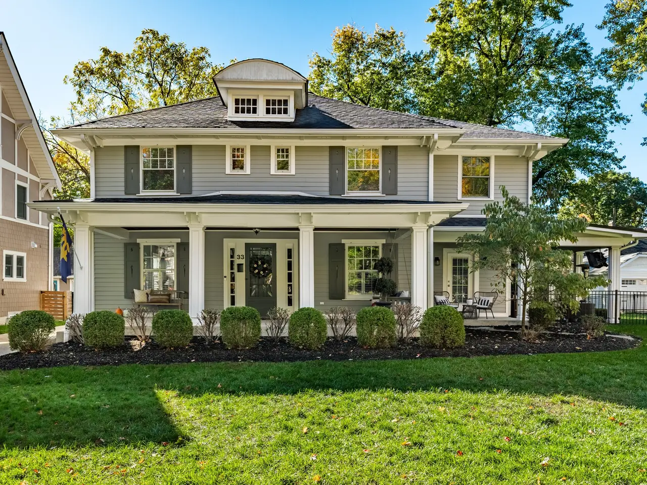 Indulge in this exquisitely renovated residence, a true gem nestled within the prestigious and historic enclave of Butler Tarkington. This exceptional home presides over a serene block characterized by immaculately manicured lawns and the gracious welcome of deep, wide front porches. Step inside to discover a world where history meets contemporary luxury. Original hardwood floors, meticulously preserved, span the main level, leading you through formal living and dining rooms designed for sophisticated entertaining. The handsome living room is a study in refined comfort, anchored by a warm gas fireplace and flanked by bespoke built-ins-a magnificent setting for gatherings both intimate and grand. An inspired architectural transformation has seamlessly opened the kitchen, family, and dining spaces, cultivating a warm, welcoming contemporary flow. This airy design is bathed in natural light, illuminating exquisite details at every turn. The extraordinary gourmet kitchen is the heart of the home, a culinary masterpiece equipped with dual dishwashers, a professional six-burner gas range, and an expansive center island-all featuring high-end appointments tailored for the most discerning chef. Every detail of the main level has been meticulously planned, from the tucked-away family command center to the convenient mudroom and chic half bath by the rear entry. The upper level is crowned by a terrific primary suite, an ensuite bathroom that serves as a private, retreat-like sanctuary, and a large custom closet. This luxurious haven extends its charm to a private balcony offering tranquil views over the spacious rear grounds. Set on a rare one-third acre parcel, the surrounding estate is equally distinctive. Guests are greeted by a large covered front porch, while a private side porch offers an elegant space for al fresco dining or viewing a game in comfort. The detached garage has been thoughtfully renovated to incorporate a dedicated office space. Absolutely flawless!