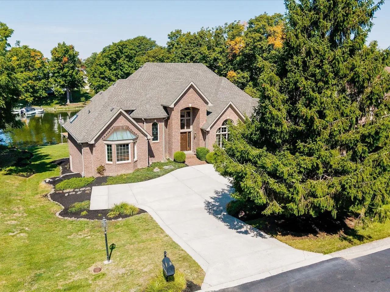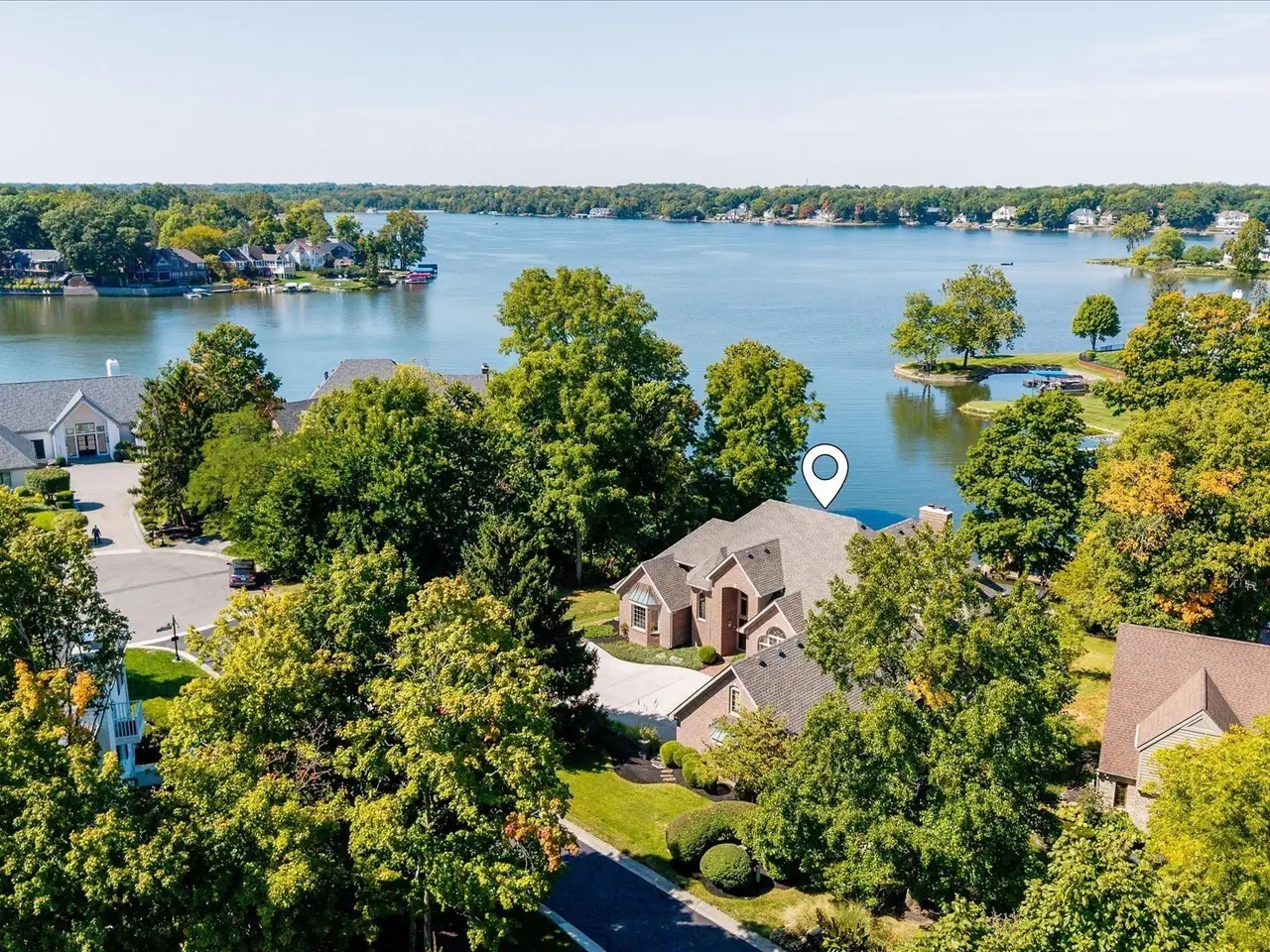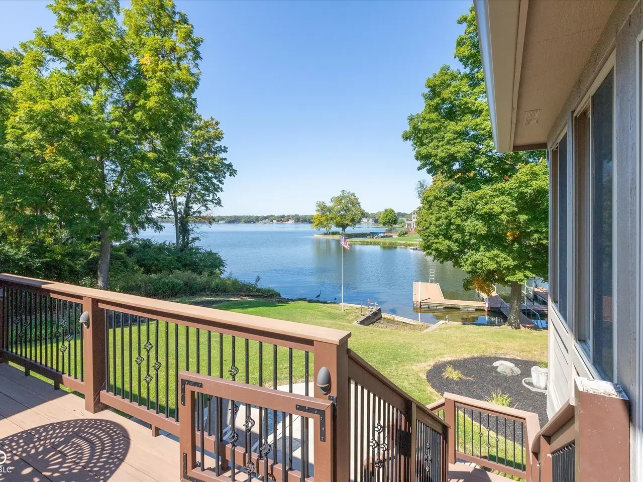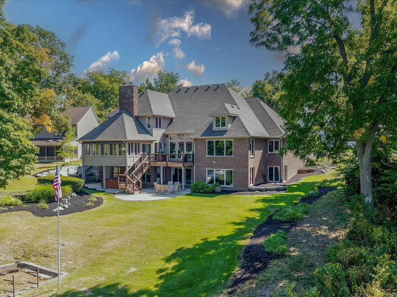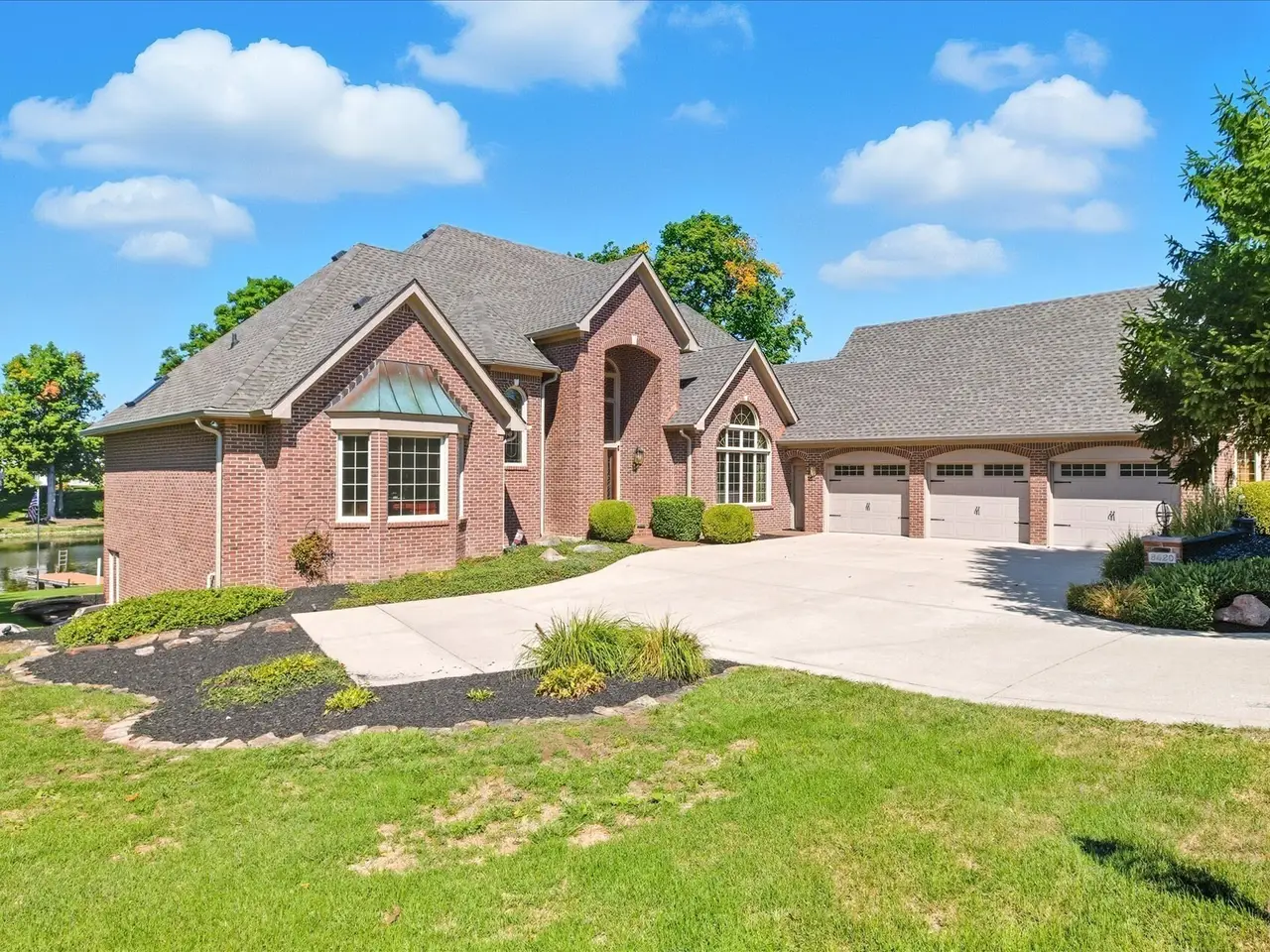 Discover lakeside living at its finest in this stunning 5BR, 4.5BA home with 100' of shoreline on a .40-acre lot with mature trees. This home offers the perfect blend of luxury, comfort, and outdoor entertaining. The main level features rich hardwood floors, a spacious great room with lake views, a formal office with built-ins, and a main-level primary suite with two walk-in closets, luxurious full bath and a door to the main level deck. The gourmet kitchen is equipped with granite countertops, stainless steel appliances, custom cabinetry, a breakfast bar, and a breakfast nook with views of the lake. A hearth room with fireplace, wet bar and door to a 3-season sunroom. The 3-season sunroom offers beautiful lake views and a door to the deck with stairs leading to a large patio-ideal for outdoor dining, music, and sunset views. Upstairs you'll find a private ensuite bedroom and two additional bedrooms connected by a Jack & Jill bath. The walkout lower level lives like a second home with a 5th bedroom, full bath, den, rec. room, wet bar, and family room with fireplace. An unfinished area with double doors to the backyard is perfect for a workshop, storage, or hobbies. Outside, enjoy direct access to the reservoir from your private dock with space for 4-5 boats. Whether you're entertaining guests or enjoying peaceful mornings on the water, this home offers year-round comfort, function, and a true lakeside lifestyle. Updates: Walkout Lower Level 4 Panel Sliding Doors & Adjacent 2 Windows, Double Doors to Storage '25, New roof/gutters/ exterior paint '24, Replaced Deck, Railings, Stairs '21, Garage Doors, Motors & Chains '19, Hardi Board Siding, All West & North Facing Windows '18, Sewage Ejector Pumps '15, Kitchen Counter Tops/Island Counter Top/Nook Counter Top & All Appliances '12, HVAC Units '12.