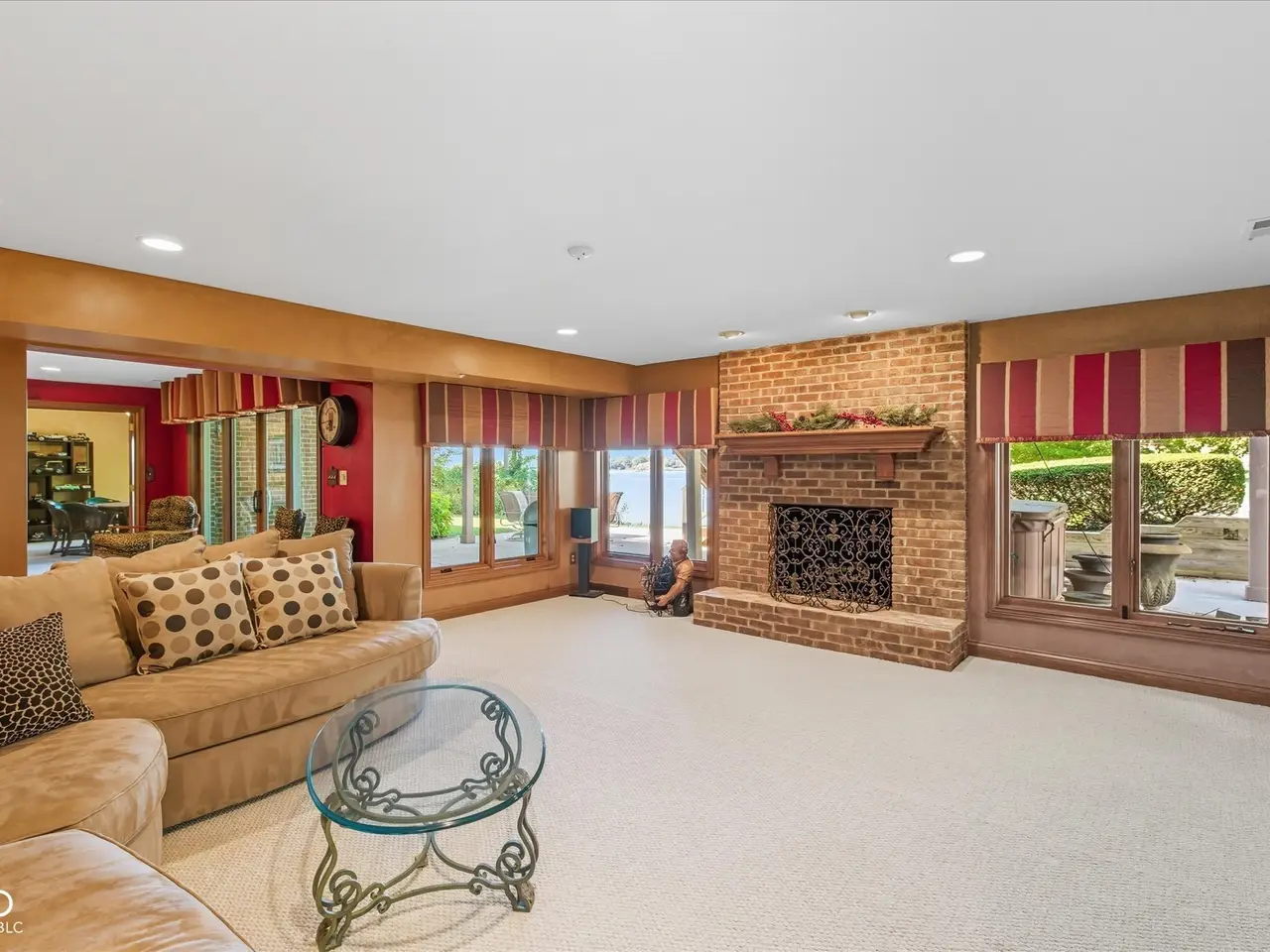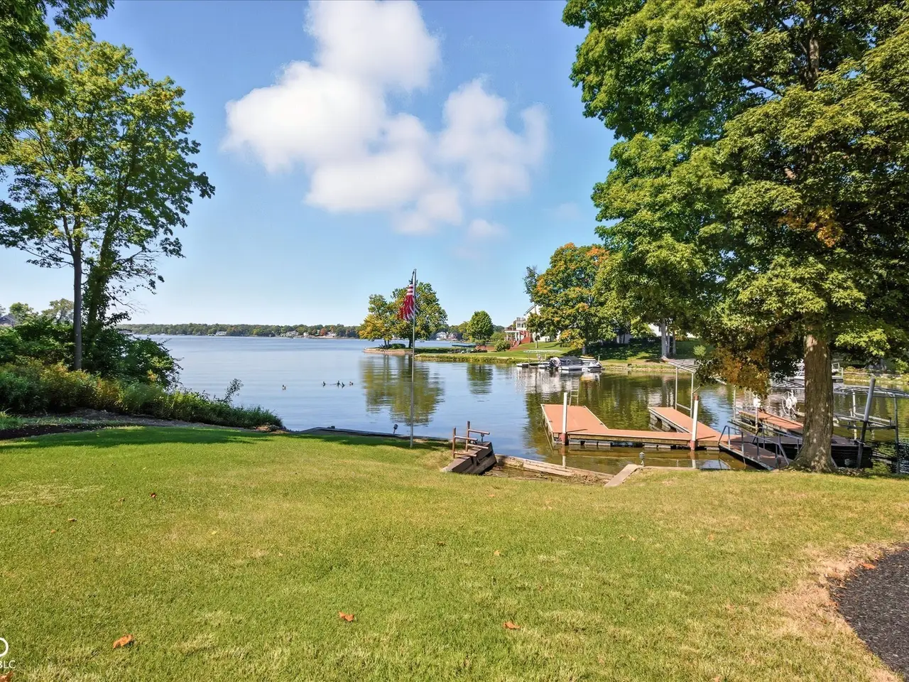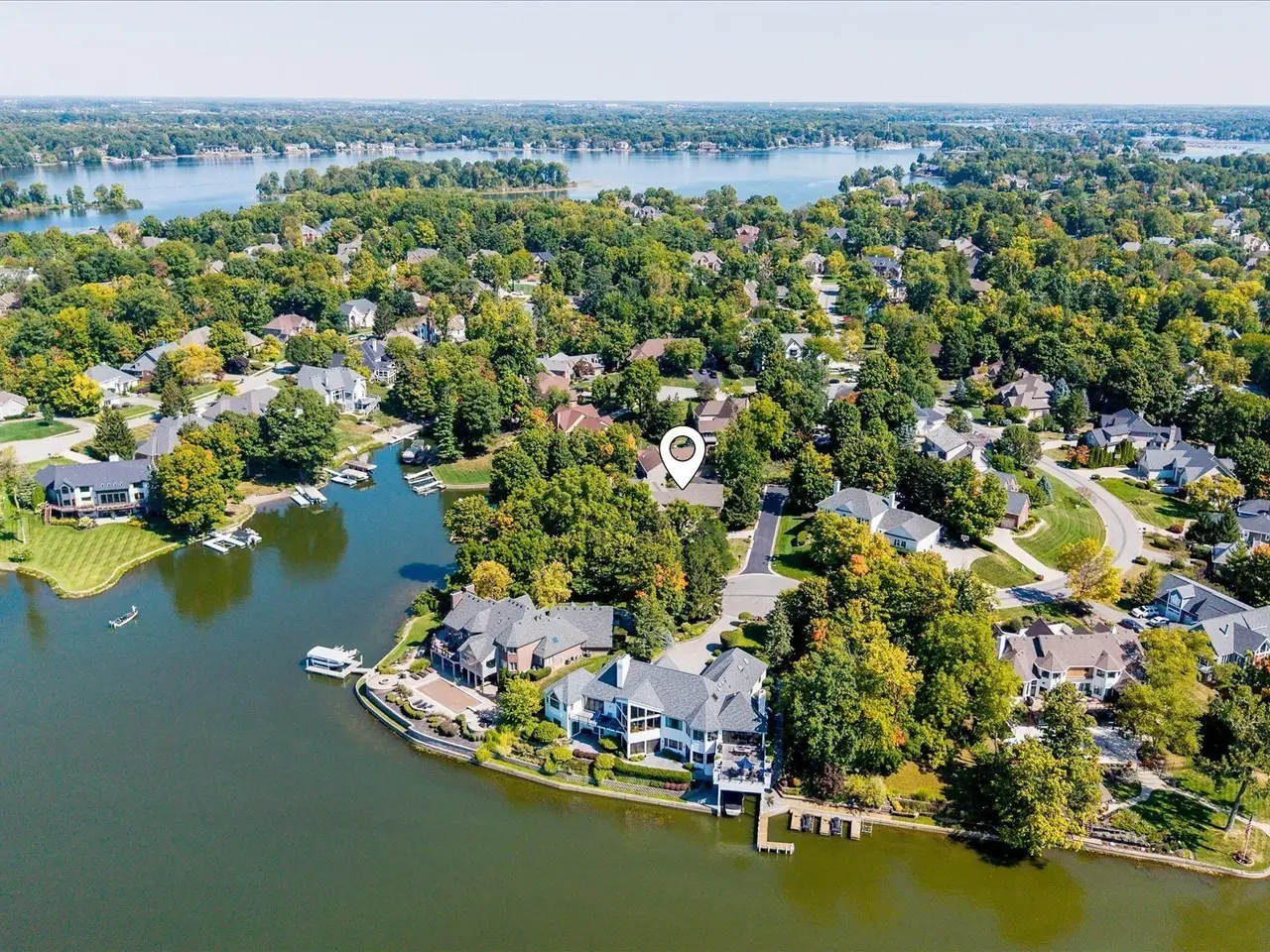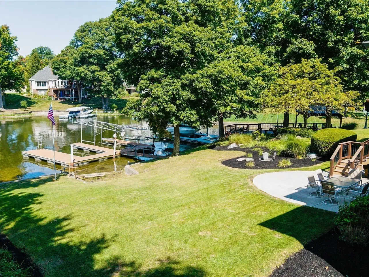 Discover lakeside living at its finest in this stunning 5BR, 4.5BA home with 100' of shoreline on a .40-acre lot with mature trees. This home offers the perfect blend of luxury, comfort, and outdoor entertaining. The main level features rich hardwood floors, a spacious great room with lake views, a formal office with built-ins, and a main-level primary suite with two walk-in closets, luxurious full bath and a door to the main level deck. The gourmet kitchen is equipped with granite countertops, stainless steel appliances, custom cabinetry, a breakfast bar, and a breakfast nook with views of the lake. A hearth room with fireplace, wet bar and door to a 3-season sunroom. The 3-season sunroom offers beautiful lake views and a door to the deck with stairs leading to a large patio-ideal for outdoor dining, music, and sunset views. Upstairs you'll find a private ensuite bedroom and two additional bedrooms connected by a Jack & Jill bath. The walkout lower level lives like a second home with a 5th bedroom, full bath, den, rec. room, wet bar, and family room with fireplace. An unfinished area with double doors to the backyard is perfect for a workshop, storage, or hobbies. Outside, enjoy direct access to the reservoir from your private dock with space for 4-5 boats. Whether you're entertaining guests or enjoying peaceful mornings on the water, this home offers year-round comfort, function, and a true lakeside lifestyle. Updates: Walkout Lower Level 4 Panel Sliding Doors & Adjacent 2 Windows, Double Doors to Storage '25, New roof/gutters/ exterior paint '24, Replaced Deck, Railings, Stairs '21, Garage Doors, Motors & Chains '19, Hardi Board Siding, All West & North Facing Windows '18, Sewage Ejector Pumps '15, Kitchen Counter Tops/Island Counter Top/Nook Counter Top & All Appliances '12, HVAC Units '12.