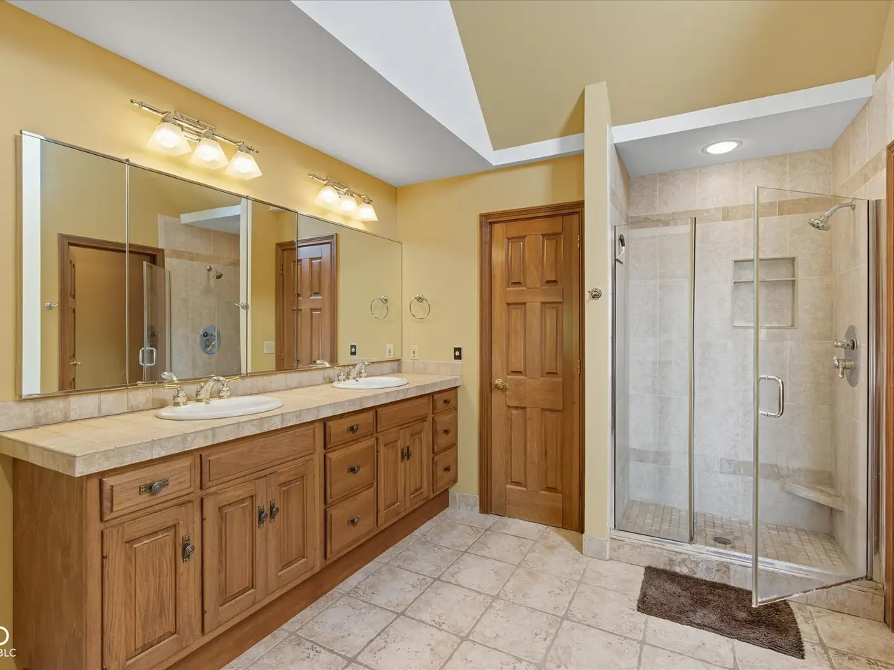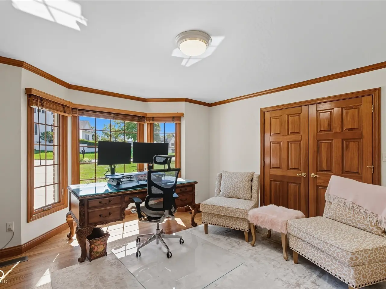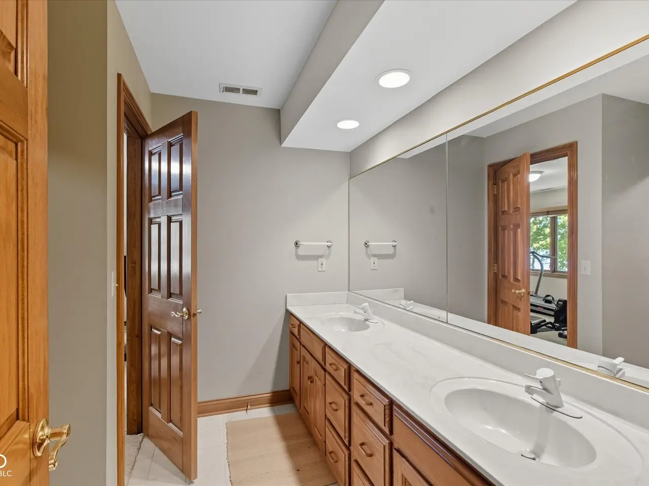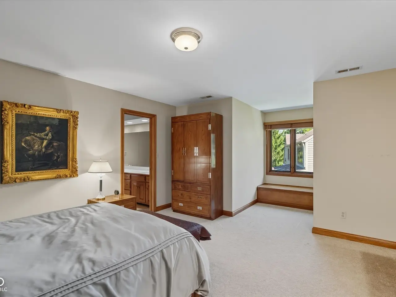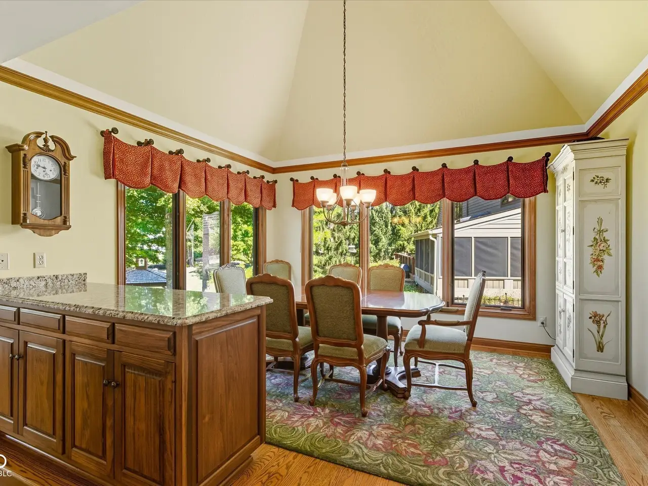 Discover lakeside living at its finest in this stunning 5BR, 4.5BA home with 100' of shoreline on a .40-acre lot with mature trees. This home offers the perfect blend of luxury, comfort, and outdoor entertaining. The main level features rich hardwood floors, a spacious great room with lake views, a formal office with built-ins, and a main-level primary suite with two walk-in closets, luxurious full bath and a door to the main level deck. The gourmet kitchen is equipped with granite countertops, stainless steel appliances, custom cabinetry, a breakfast bar, and a breakfast nook with views of the lake. A hearth room with fireplace, wet bar and door to a 3-season sunroom. The 3-season sunroom offers beautiful lake views and a door to the deck with stairs leading to a large patio-ideal for outdoor dining, music, and sunset views. Upstairs you'll find a private ensuite bedroom and two additional bedrooms connected by a Jack & Jill bath. The walkout lower level lives like a second home with a 5th bedroom, full bath, den, rec. room, wet bar, and family room with fireplace. An unfinished area with double doors to the backyard is perfect for a workshop, storage, or hobbies. Outside, enjoy direct access to the reservoir from your private dock with space for 4-5 boats. Whether you're entertaining guests or enjoying peaceful mornings on the water, this home offers year-round comfort, function, and a true lakeside lifestyle. Updates: Walkout Lower Level 4 Panel Sliding Doors & Adjacent 2 Windows, Double Doors to Storage '25, New roof/gutters/ exterior paint '24, Replaced Deck, Railings, Stairs '21, Garage Doors, Motors & Chains '19, Hardi Board Siding, All West & North Facing Windows '18, Sewage Ejector Pumps '15, Kitchen Counter Tops/Island Counter Top/Nook Counter Top & All Appliances '12, HVAC Units '12.