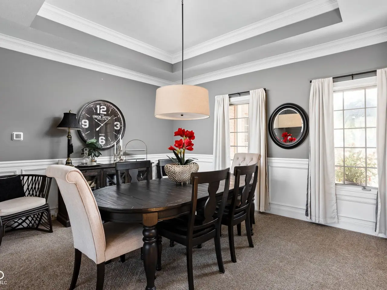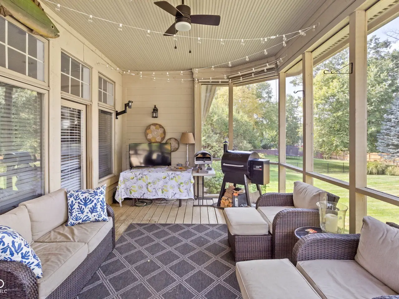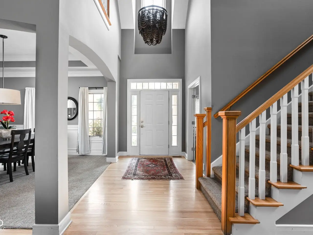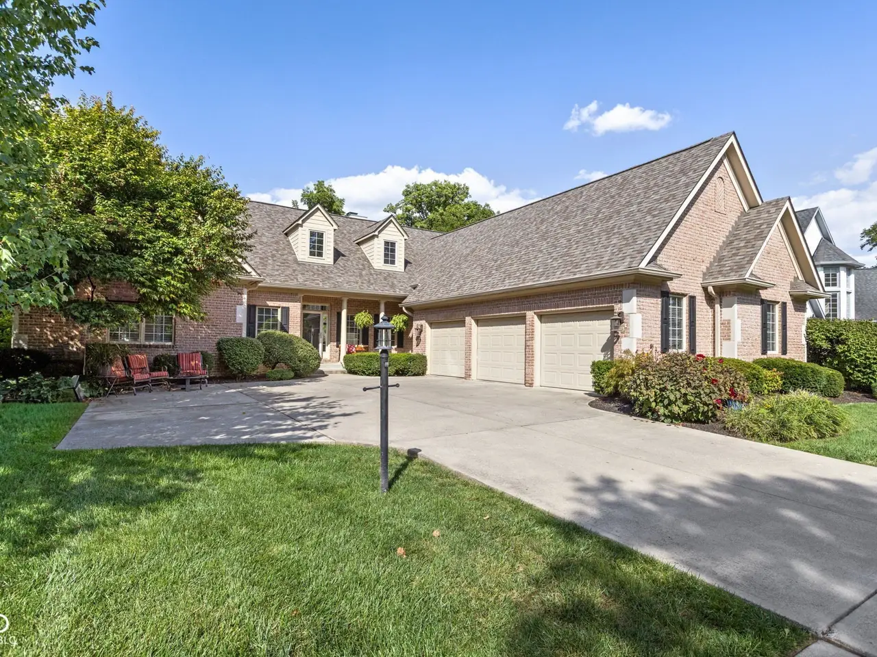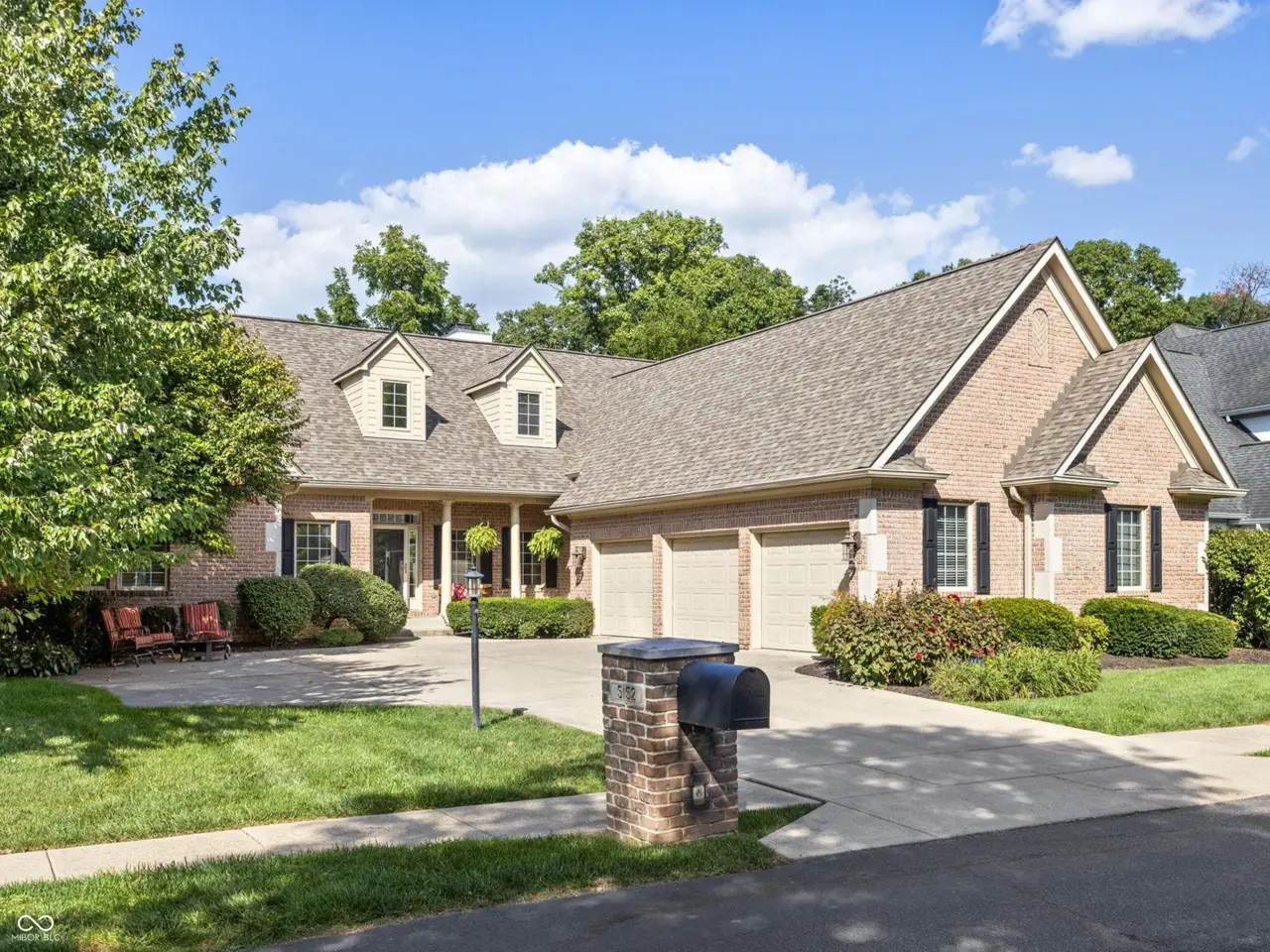 Welcome to Allison Place, an exclusive gated community in Washington Township. This traditional all-brick home with dormer windows offers nearly 6,000 square feet of thoughtfully designed living space, 5 bedrooms, 5.5 baths, and a 3-car garage, all set on a beautifully landscaped .46-acre lot with mature trees and a newer partially fenced yard. The main level showcases hardwood floors, soaring 9-foot ceilings, and a vaulted great room with a two-sided fireplace shared with the hearth room. A formal dining room, private office, and screened porch provide flexibility for everyday living and entertaining. The remodeled gourmet kitchen is a showpiece with granite counters, a large center island, Thor gas range with vent hood, drawer microwave, dual-drawer refrigerators, and custom inset cabinetry. The main-level primary suite offers a luxurious retreat with dual granite vanities, raised counters, and a walk-in tile shower. A remodeled guest en suite bath completes the main floor. Upstairs, you'll find two spacious en suite bedrooms and a versatile loft. The finished lookout basement adds over 2,400 sq. ft. of additional living space with 9-foot ceilings, a family room, mirrored exercise room, home theater, bedroom with attached bath, and three large storage areas. Updates include a remodeled kitchen, primary suite bath, and guest bath, a newer fence, plus a 4-year-old roof. Enjoy the privacy of a gated neighborhood while remaining close to award-winning Allisonville Elementary, top-rated shopping, dining, and easy access to major thoroughfares. A rare blend of classic architecture, modern updates, and functional design, this home is ready to welcome its next owner.