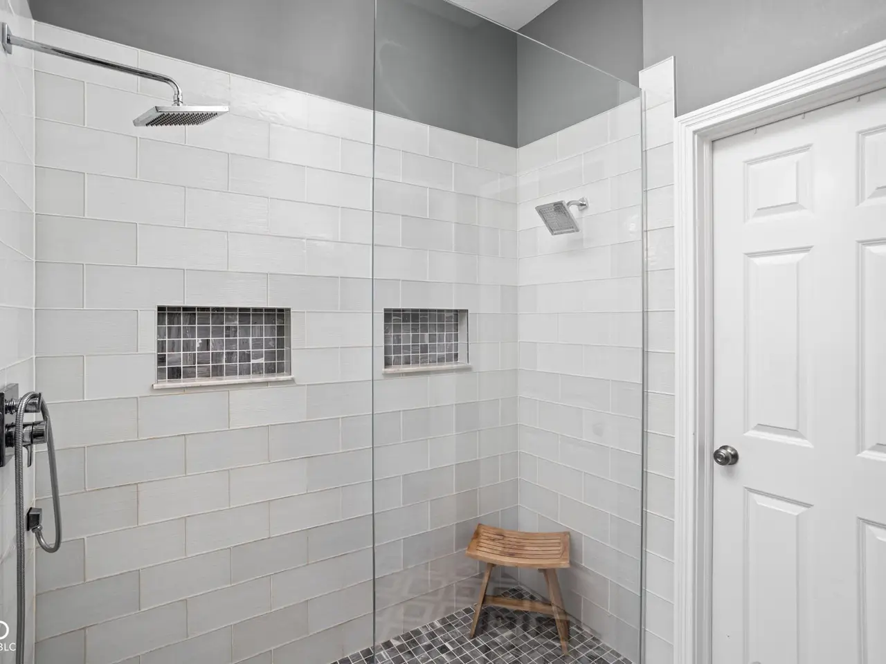 Main-level primary suite with walk-in tile shower