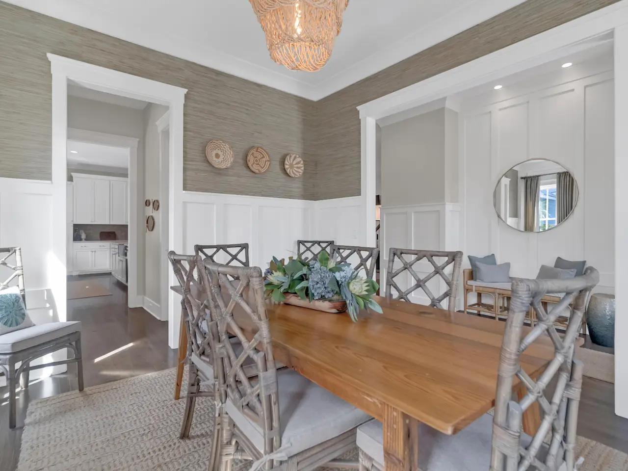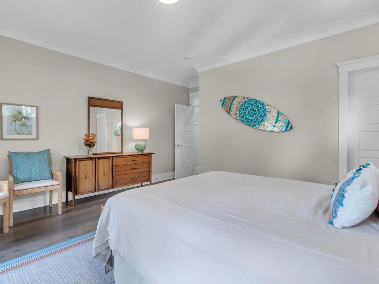 Coastal Luxury with Pool & Beach Access This 5-bedroom, 4.5-bath home combines refined design with thoughtful functionality, just steps from the sand. The open floor plan showcases rich hickory flooring, abundant natural light, and attention to detail throughout. At the heart of the home is the spacious kitchen with marble counters, abundant cabinetry, gas range, a butler's pantry with sink and beverage station that seamlessly flows into the family and dining areas. The first floor also features a private study/office, a separate dining room, and one of two expansive primary suites--ideal for multigenerational living. Upstairs, you'll find the second primary suite plus additional bedrooms for family and guests. The 2nd level also features an open area for gathering,a laundry room withplentiful storage and laundry sink. All of the guest bedrooms feature walk-in closets. One of these has a private bath the other two share a nicely done hall bath. The upstairs primary offers a handsome coffered ceiling, double walk-in closets and a well appointed bath. Then, just step outside where outdoor living takes center stage with a fabulous oasis featuring an in-ground pool, covered patio with a built-in grill, refrigerator, dining bar, tv, and an additional patio area with a true wood-burning fireplacperfect for entertaining year-round. The oversized detached garage includes finished space above, offering endless possibilities for an office, gym, playroom, or studio. All this, with convenient beach access (just through the back gate and less than a block away), makes this property the ultimate blend of elegance, comfort, and coastal convenience.