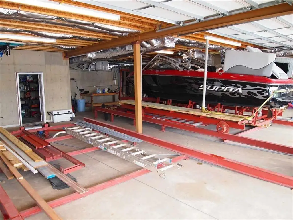This stunning custom built home has a 4 BR, 3.5 BA waterfront main house and 3 BR, 2.5 BA Guest House . Located on a point with 157' of year round deep water. Guest house sits over a 40x42 boat house with 2 marine railway systems capable of loading two 30' boats into Climate Control dry storage. Kitchens have granite counters, custom built cabinets and stainless steel appliances. Boat Storage includes a 10X20 Concrete Safe Rm. Guest house has a separate entrance with extra parking. Main House has a 3 car garage. Has an excellent location for an inground Pool by the Waters Edge. Selling fully Furnished.
