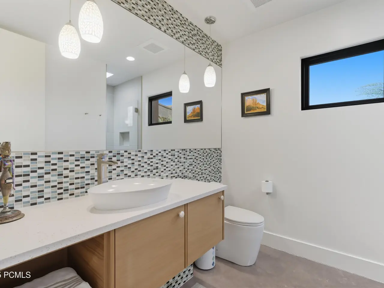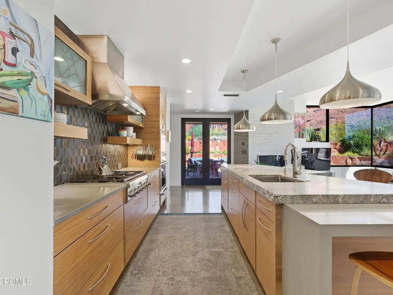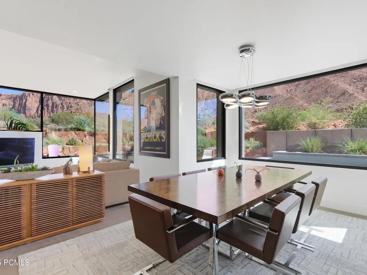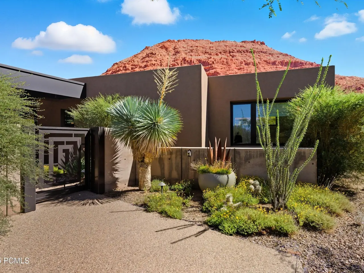 Experience the pinnacle of sophistication in this breathtaking 3-bedroom, 3-bath estate nestled within the serene landscapes of Kayenta in Ivins, Utah. Crafted with uncompromising attention to detail, this architectural masterpiece seamlessly blends timeless design with contemporary elegance, designed by the Gulch Design Group. Step inside to discover an open-concept floor plan, custom picture windows, and designer finishes that flood the home with natural light while framing sweeping views of the iconic red cliffs. The chef's kitchen is a true work of art, showcasing Thermador and Viking appliances, custom granite and quartz countertops, and a spacious island perfect for both entertaining and everyday living. The primary suite serves as a tranquil retreat, featuring a spa-inspired bathroom complete with a walk-in shower, soaking tub, and serene desert views. Outdoors, the meticulously landscaped grounds create a resort-caliber sanctuary with a heated pool and attached spa, an outdoor fire feature, and multiple lounge areas - perfect for hosting gatherings or unwinding beneath spectacular desert sunsets. Additional highlights include solar panels, a stone-surround fireplace, skylights, and motorized blinds, offering both beauty and efficiency. Located just minutes from world-class hiking trails, the Kayenta Art Village, Tuacahn Performing Arts Center, and Snow Canyon State Park, this exceptional residence delivers the ultimate combination of privacy, prestige, and proximity. Offered exclusively by appointment.
