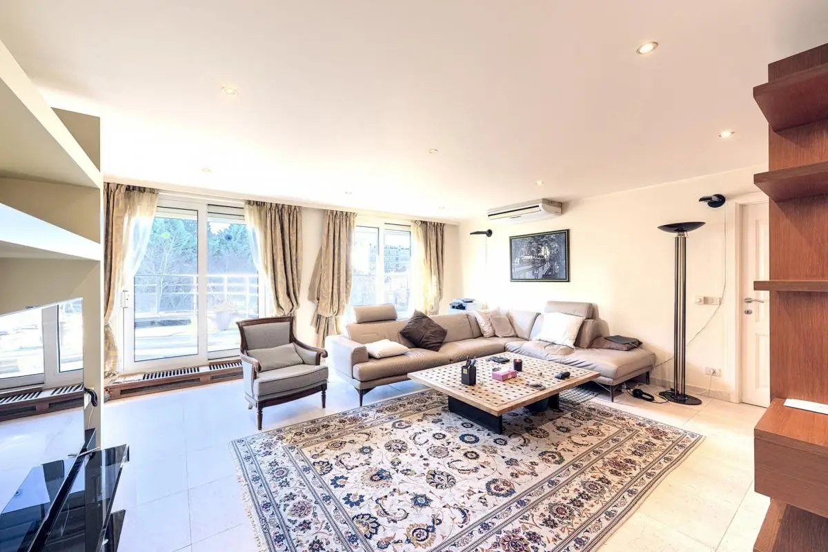 In the Bois de la Cambre district, near the Hippodrome de Boitsfort, in a beautiful high-class building, superb three-façade penthouse of approximately 260 square meters plus 90 square meter terrace. Bright reception rooms, super-equipped kitchen, four bedrooms, three bathrooms. Optional cellar and two garage parking spaces. (2 X 50.000 €). PEB E+.