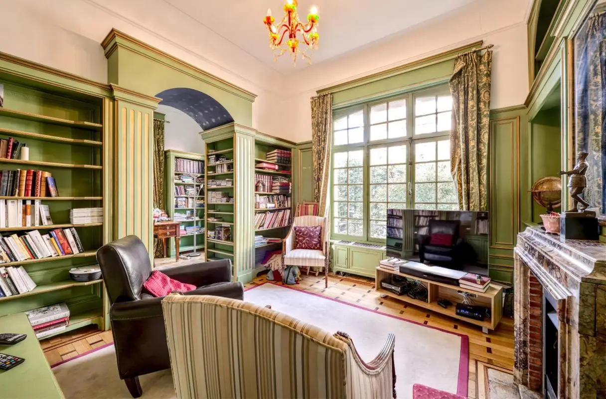 In the Roosevelt District, charming villa from 1921, three facades on a plot of land of approximately 10 ares, 50 bucolic garden. Living space approximately 430 square meters. Beautiful receptions, very refined decoration, panelling, fireplace, super equipped kitchen, five bedrooms, three bathrooms, two shower rooms. Independent garage. Peb F parking.