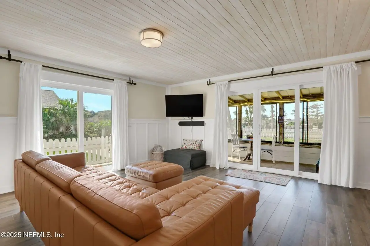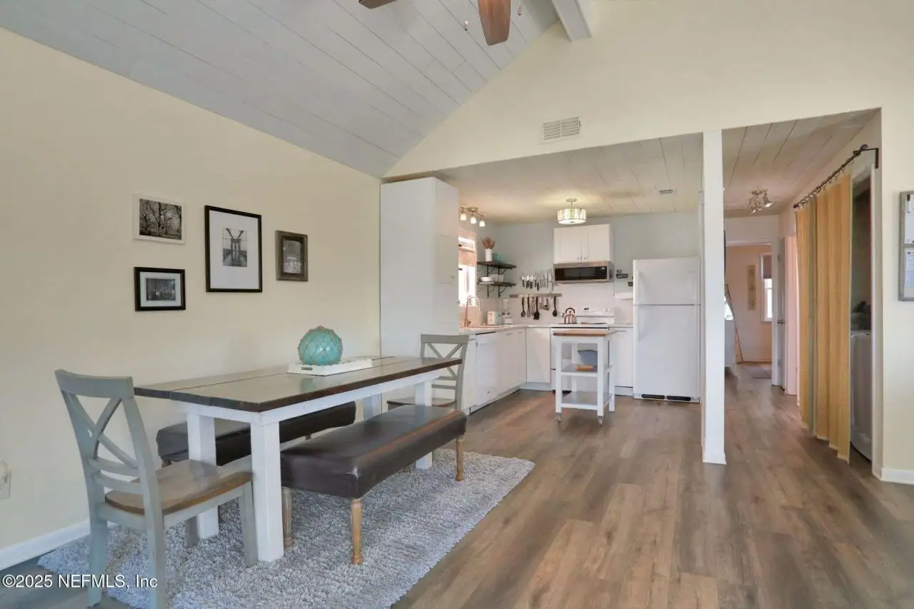 If you've been dreaming of the perfect beach getaway/investment in a charming neighborhood, you don't want to miss seeing 1721 2nd St South. This fully renovated up/down duplex in South JAX Beach delivers both immediate rental income and endless expansion possibilities. Currently operating as an established vacation rental, Sea Spray and Seabreeze Chalets have become the favored spot for returning guests. Sitting pretty on a prime corner lot directly across from Huguenot Lagoon, this gem of a home offers the best of both worlds. Breathtaking lagoon and fountain views to the west and the Atlantic Ocean two blocks east. Just a short walk to Whole Foods, SoNapa Grille, and Bonefish.With 1,932 total square feet, each of the fully renovated units have 2 spacious bedrooms and luxurious baths. Built solid with coquina clad concrete block on first floor and fresh Hardie Cementous board and batten on 2nd. Recent improvements include a complete re-plumb, and some windows and all doors have been replaced with a durable vinyl-clad option. Outdoor living shines here. Both units have shared use of the large white-picket fenced yard and outdoor shower. Each have a private area for dining al 'fresca. The main level has an oversized Florida Room with durable composite flooring and upstairs has a wraparound deck with views all around. You'll love the style and unique vibe of both places. Each have gorgeous wood-plank ceilings and commercial-grade LVP flooring that can handle sandy feet and salty air for years to come. The spacious open floor plans flow seamlessly from living to dining with room for a cozy office nook. Upstairs, a stylish stone faux fireplace filled with candles creates perfect ambiance for romantic evenings while the soaring cathedral ceilings makes the space feel more spacious.Both kitchens showcase quartz counters, bright-white shaker cabinets, glass fronts or open shelving along with classic subway tile backsplashes. Completing the coastal aesthetic, each kitchen centers around a practical butcher block island.The renovated bathrooms feature shiplap walls, furniture vanities, and coastal-inspired tile work. Private laundry facilities with included washers and dryers add convenience while the oversized bedrooms offer plenty of closet space.Not just a pretty view, you'll love having Fountain View Park (formerly known as Huguenot Park) across the street. A new name and a rejuvenation of the amenities including a 3-acre fish-stocked lake with a fishing pier and boardwalk. It also includes a children's playground, picnic areas and direct street-end access to Jacksonville Beach Tennis Club and Basketball Courts.With recent updates to the HVAC and Water Heaters, this turnkey investment is ready to start earning from day one.