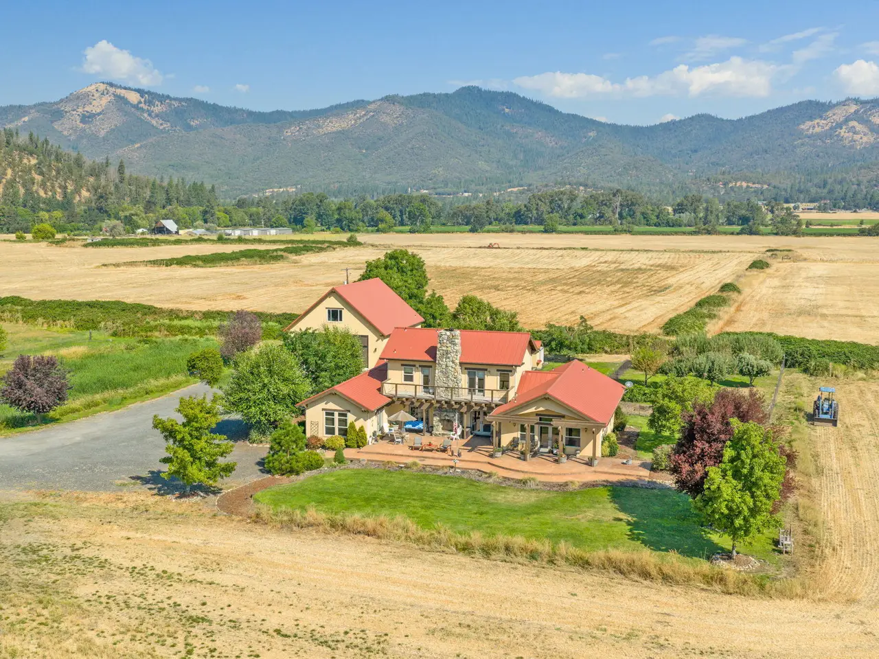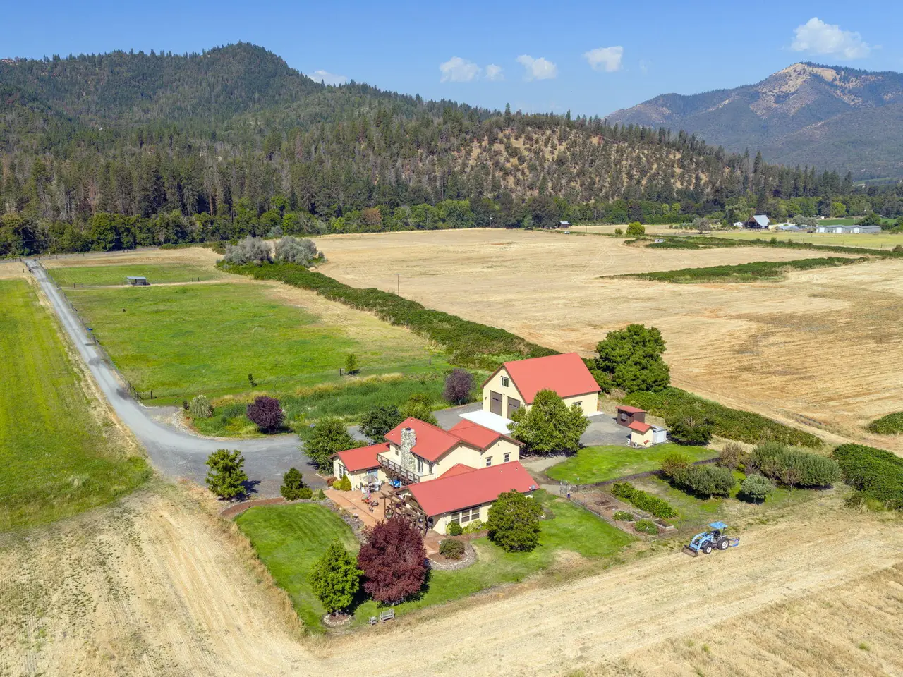 Beautiful unique opportunity in Applegate Valley with 2 homes just under 80 acres with Applegate River irrigation rights. Fenced and crossed fenced. Lg shop, RV garage with unfinished studio above. 75X100 pole barn and year round pond. Spanish custom home stucco exterior w/gourmet kitchen w/granite counters & tile floors, lg ceilings & windows. Lg great rm w/floor to ceiling stone fireplace. French doors to lg stamped patios. 2nd home is cute cabin w/lg covered porch, 2 bdrms, 1 bath w/wood pellet stove. This premier ranch is one of the most beautiful properties located across from Cantrell Buckley Park entrance w/gorgeous views of the surrounding Mts and Southern Oregon wineries.