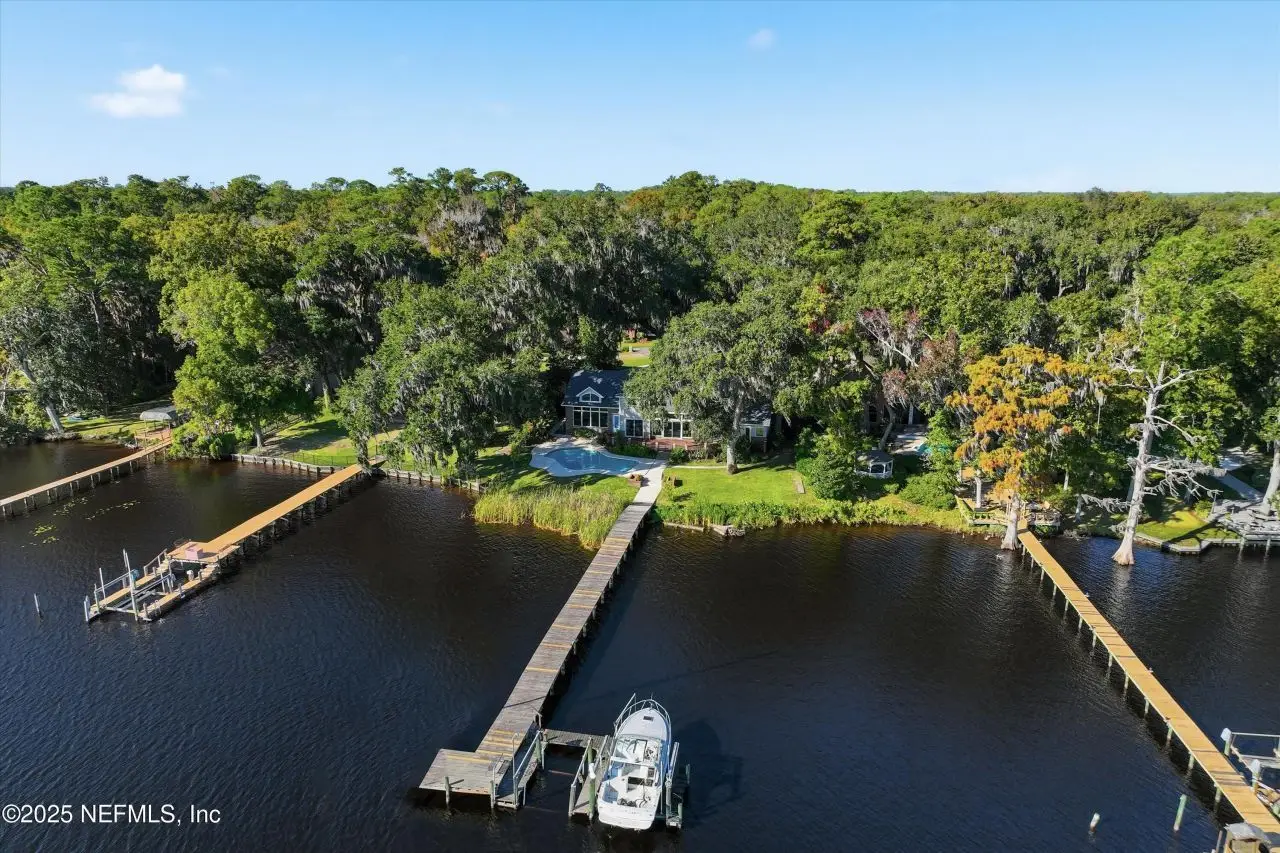 Experience the ultimate waterfront lifestyle in this stunning Riverfront Estate! Offering breathtaking water views, where Julington Creek meets the St. Johns River and gorgeous sunsets. Nestled beneath grand oak trees at the end of a private drive that enhances its Old Florida charm, this home features five bedrooms, an elegant study, spacious loft, two fireplaces, and newer LVP flooring throughout. Floor to ceiling windows fill the home with natural light and panoramic river views in the main living areas and downstairs primary suite. Made for outdoor living, the home showcases an expansive back deck, pool, and private dock. A true boaters paradise, where you can enjoy endless access to the river. With multiple slips, bring your boat, jet skis, or both! Perfect location, off iconic tree-lined Mandarin Rd, just minutes from Mandarin Park with a playground, scenic trails, and a public boat ramp. An easy commute to downtown Jacksonville and St. Johns. Blending luxury, comfort, and unmatched outdoor living, this exceptional property offers a rare opportunity to own one of Mandarin's premier riverfront homes!