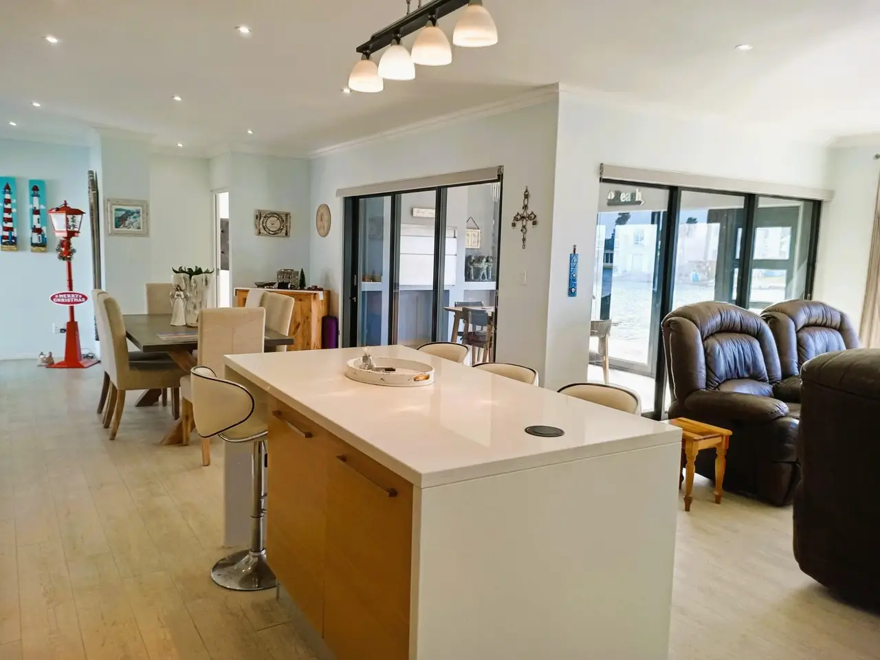 This is a golden chance to secure not just one, but two fully furnished waterfront homes in the highly sought-after Marina Martinique - along with a large corner stand offering further development potential. With an impressive 110 meters of uninterrupted water frontage, the lifestyle here is all about space, views, and direct access to the canals. The first home offers three bedrooms and two bathrooms, with a light and airy open-plan layout that flows seamlessly between the kitchen, dining, and lounge areas. An enclosed patio with built-in braai invites year-round outdoor living. The second residence is equally inviting, featuring two bedrooms, two bathrooms, and a guest loo. The open-plan living area includes a built-in bar and pool table, making it ideal for entertaining. Outside, you'll find another enclosed patio and braai area, as well as a sparkling swimming pool for those summer afternoons and it's heated for winter. While both houses are eco-friendly solar systems with 8kVA inverter, two 5kVA batteries, and 12 solar panels ensures energy efficiency and cost savings. A spacious double garage on each house rounds off this practical yet stylish home. Adding to the value, the property includes a vacant 864sqm waterfront plot, perfect for building a third luxury residence or simply enjoying extra space, a garden and privacy. To top it all off, the sale includes all furniture, a VW Kombi, and a boat - meaning you can move in and start enjoying the waterfront lifestyle immediately. Whether you're seeking a private family retreat, a smart investment, or a lifestyle upgrade, this package offers it all - space, style, sustainability, and a prime location in Jeffreys Bay's most prestigious canal estate.