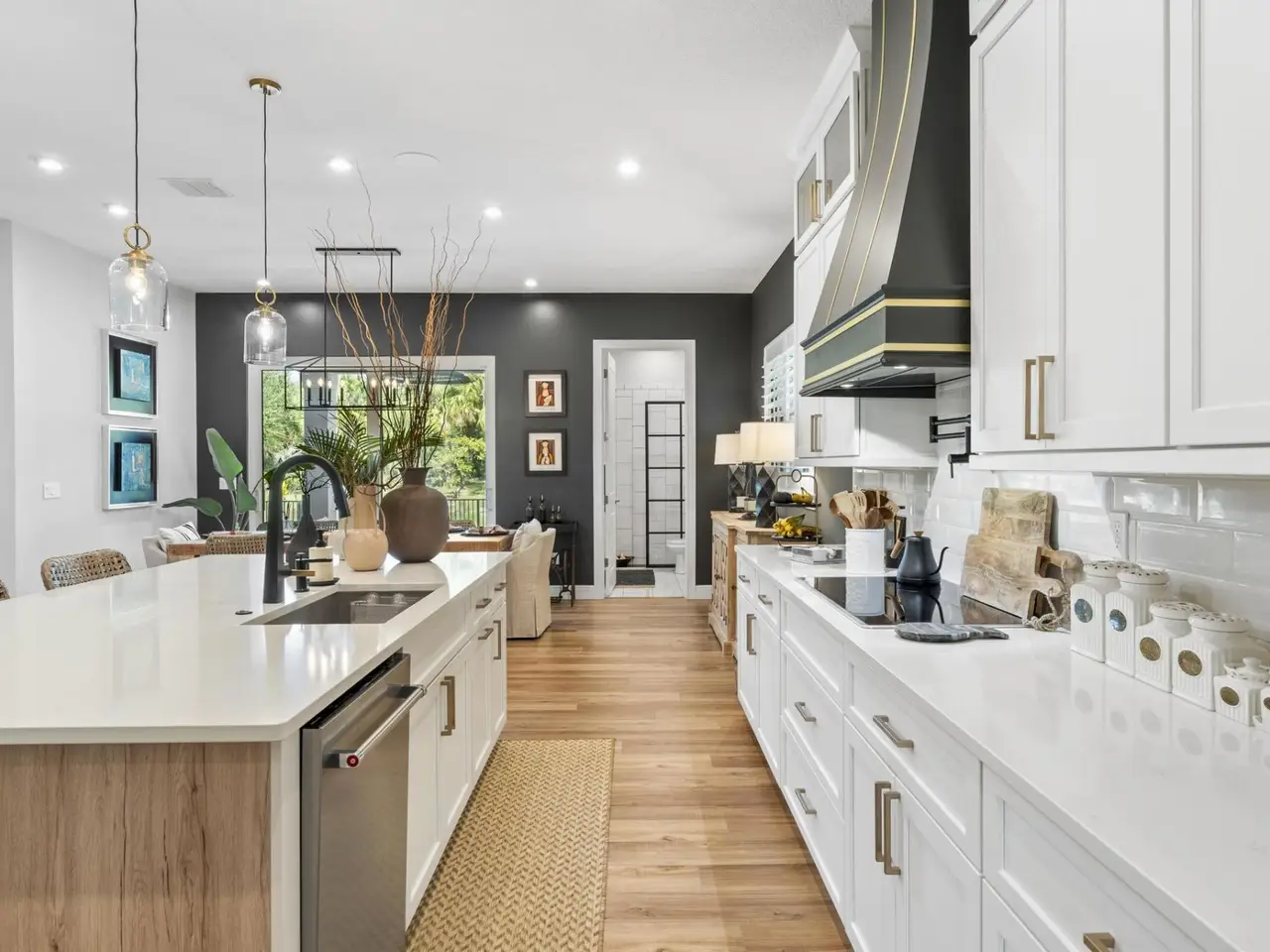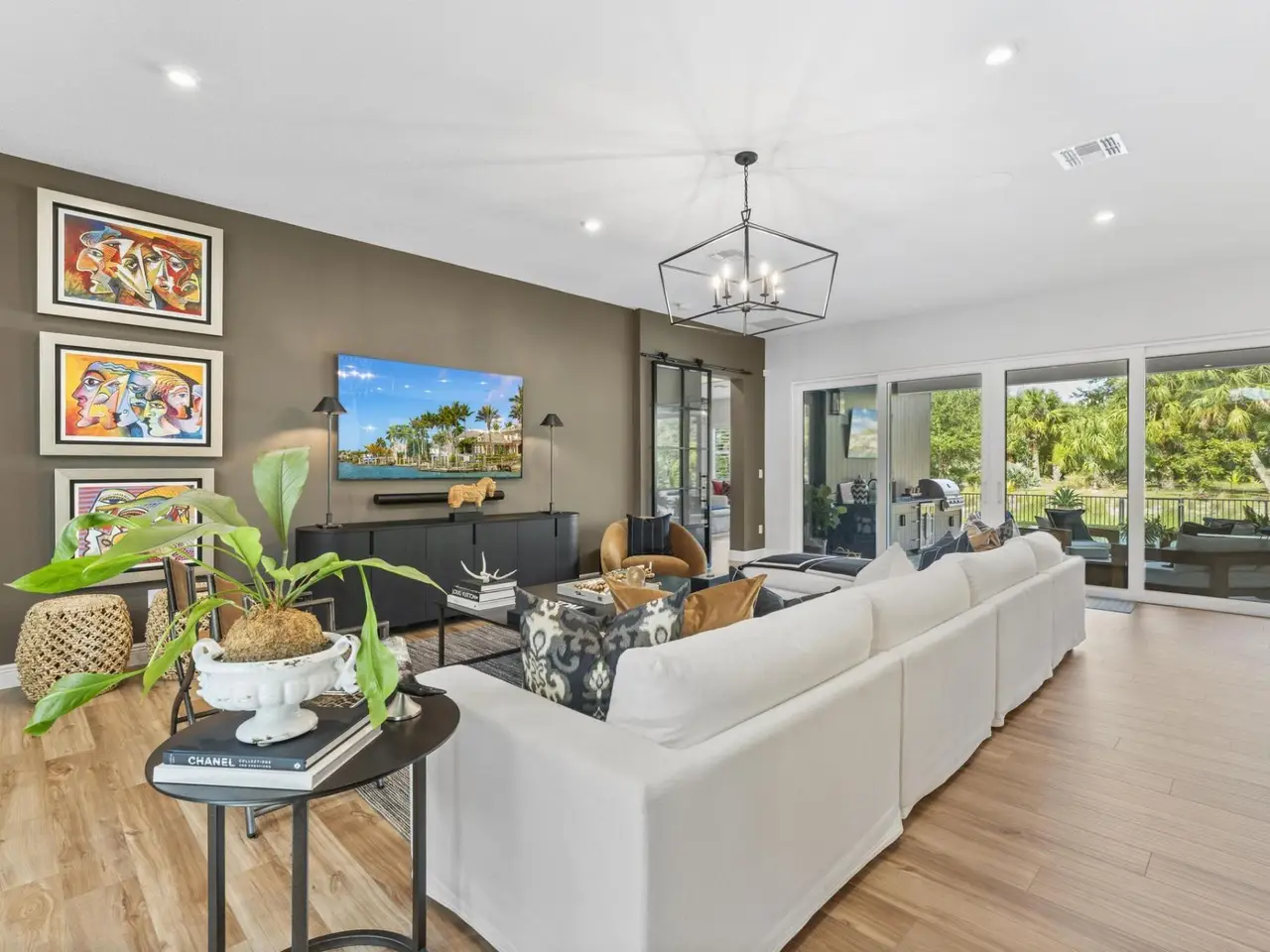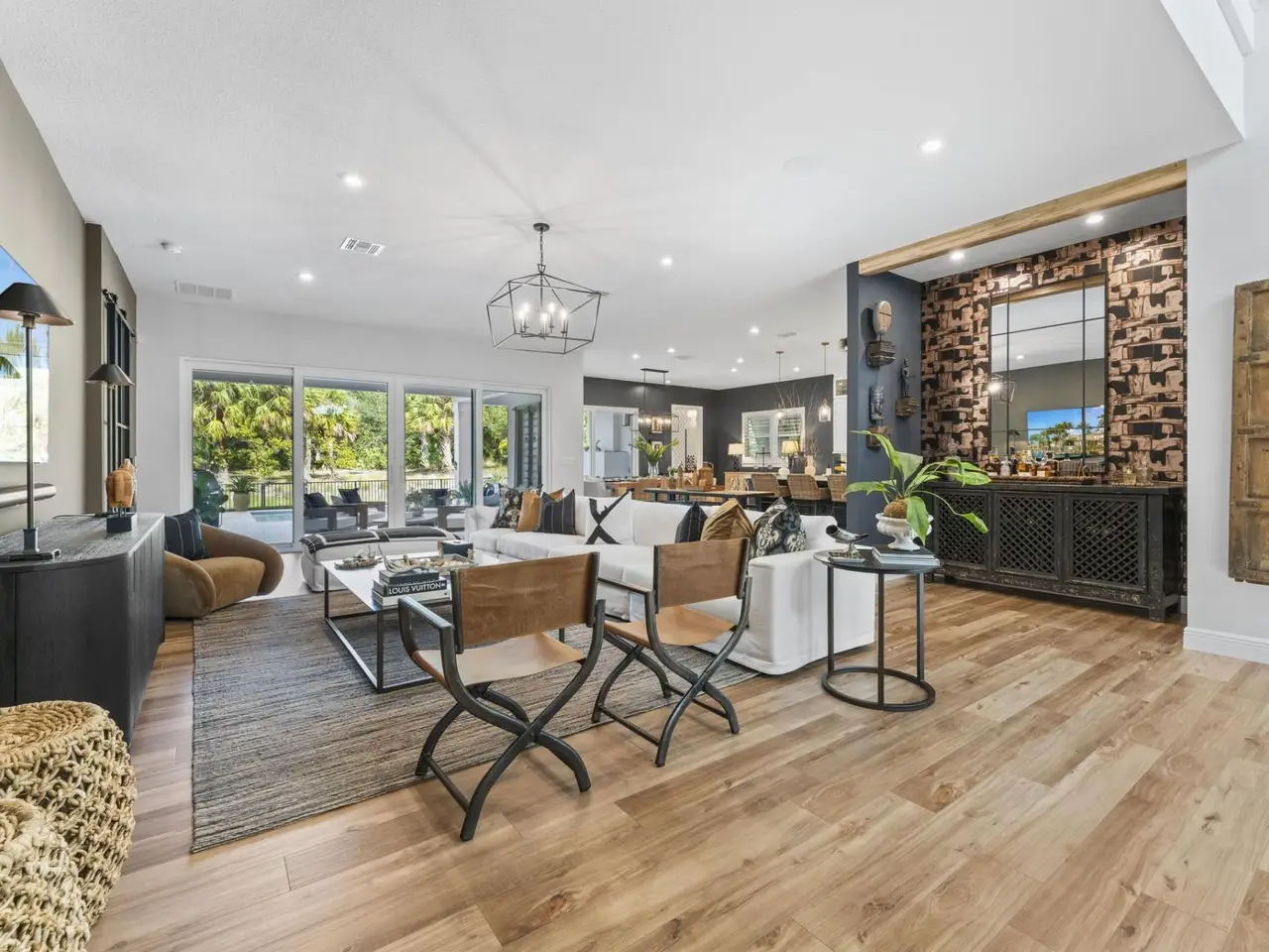 Exclusive Langford Landing Enclave! 40FT BOAT SLIP! Perfectly oriented with preserve vista, impossibly private in feel. Soaring 2-story foyer entry. Open concept, with distinct spaces, including living, dining, and dedicated office. Designer custom kitchen, with large island, and butler pantry. Downstairs Main Suite with custom His/Her closets, pass-thru shower, & spa tub. Upstairs, 4 guest beds with en suite baths, living area, and wide balcony. Full impact glass, Sonos system, integrated security, up/down laundry, 24kw generator/500 gal tank. 2024 new saltwater pool, outdoor living rm w/gas fireplace, modern outdoor kitchen. True 3 car garage for enthusiasts, w/ custom cabinetry and rod storage. Residence has private 40FT boat slip & 24k lift at on-property marina.