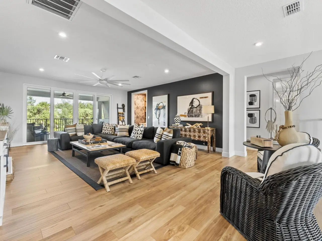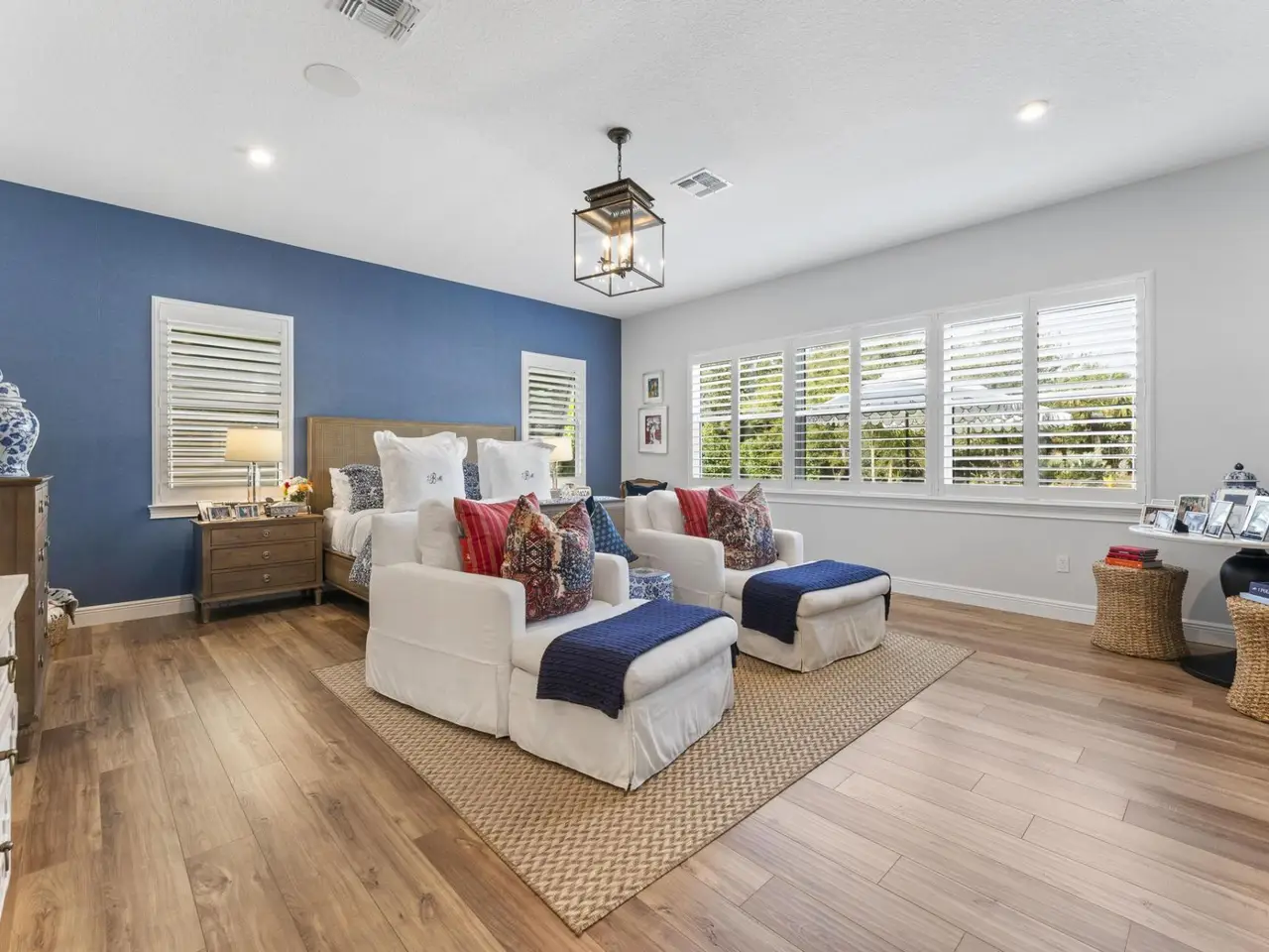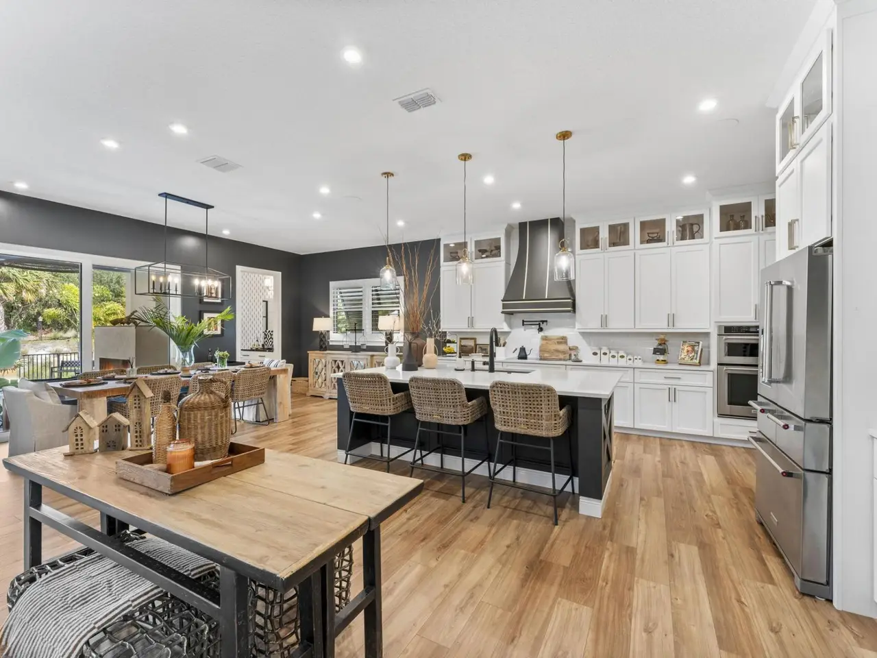 Exclusive Langford Landing Enclave! 40FT BOAT SLIP! Perfectly oriented with preserve vista, impossibly private in feel. Soaring 2-story foyer entry. Open concept, with distinct spaces, including living, dining, and dedicated office. Designer custom kitchen, with large island, and butler pantry. Downstairs Main Suite with custom His/Her closets, pass-thru shower, & spa tub. Upstairs, 4 guest beds with en suite baths, living area, and wide balcony. Full impact glass, Sonos system, integrated security, up/down laundry, 24kw generator/500 gal tank. 2024 new saltwater pool, outdoor living rm w/gas fireplace, modern outdoor kitchen. True 3 car garage for enthusiasts, w/ custom cabinetry and rod storage. Residence has private 40FT boat slip & 24k lift at on-property marina.