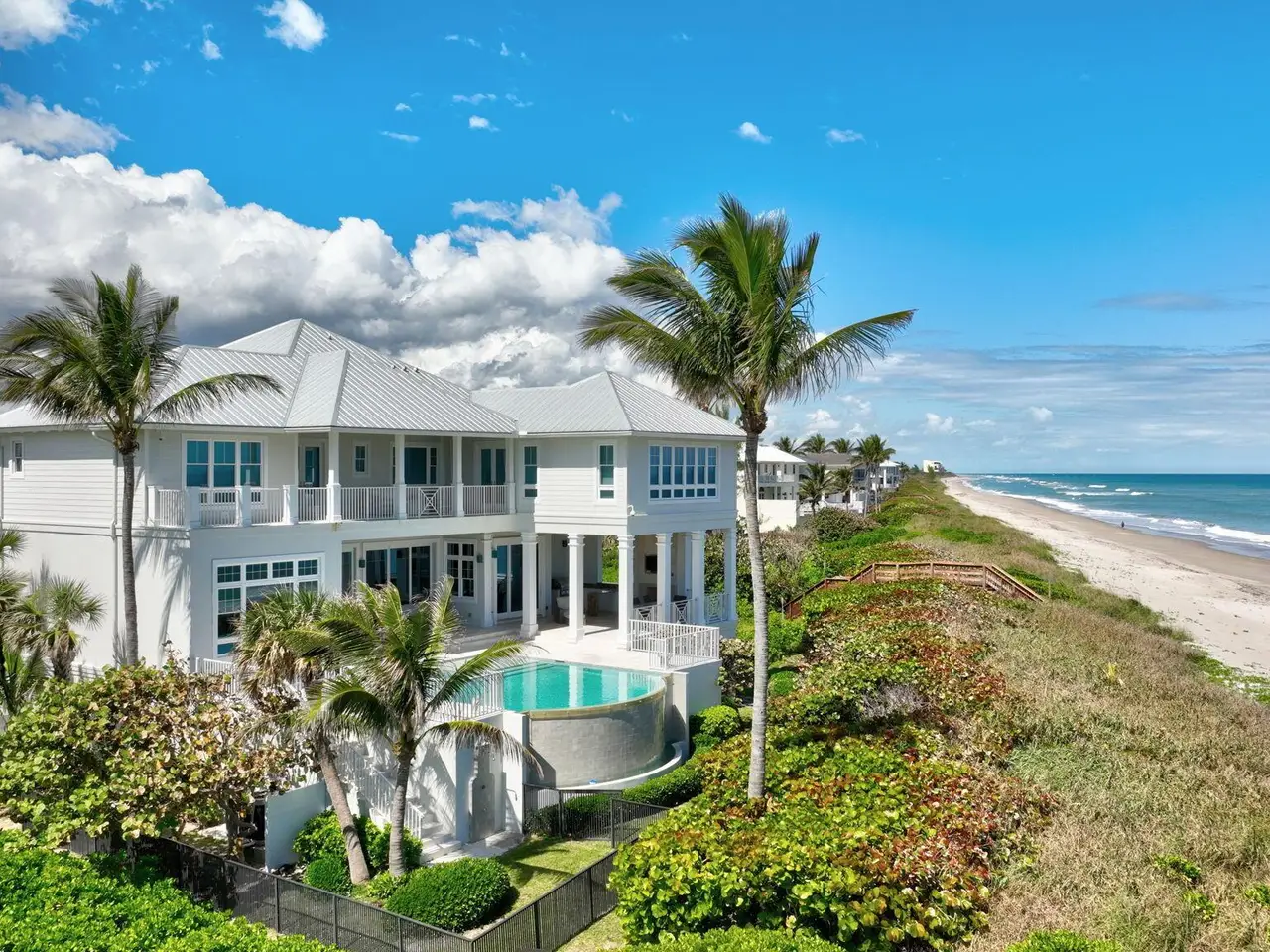 Experience the pinnacle of coastal living in this custom built, oceanfront masterpiece, offering 100ft of pristine beachfront and over 6000 sq ft of luxurious living space. Built to near-commercial standards, this three-story estate is designed for both elegance and durability and features impact windows & doors that provide breathtaking water views from every room. The spacious primary suite boasts panoramic views of the ocean, a luxurious spa bath, oversized custom closets and a private terrace. The open concept chef's kitchen is designed to entertain in style around the oversized island. First option of your own 50ft private boat dock on the intracoastal that allows easy ocean access making it a boater's dream. The eight car garage ensures ample storage for any automobile enthusiast.