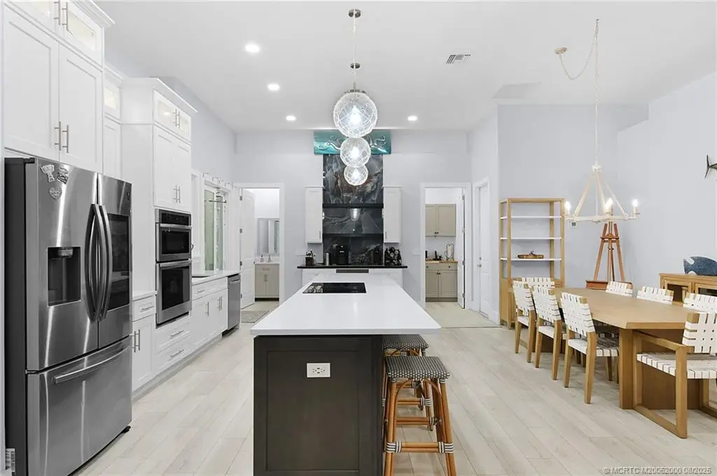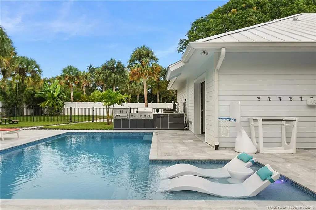 Step in??id? this ????? W???t-??tyle, custom-built c?ncr?te block home, complete with a full-length front porch and timeless curb appeal. This 3-bedroom, 2.5-bath home sits on a half-acre lot and is built with quality in mind, featuring soaring 12-foot ceilings, 9-foot doors, and luxury plank flooring throughout, spray foam insulation and impact glass. The chef's kitchen showcases white shaker cabinetry, an expansive island, coffee bar, and quartz countertops-perfect for both entertaining and everyday living. The primary suite is a true retreat with oversized walk-in closets, a sauna, and an impressive spa-style shower. Step outside to a screened-in porch with retractable screen overlooking a brand-new saltwater pool and spa. The outdoor living area includes a full summer kitchen with pizza oven, bar, outdoor shower, and lush professional landscaping-creating a serene, private oasis. With room to store your boat or RV, residents also enjoy access to a private day dock with fishing pier.