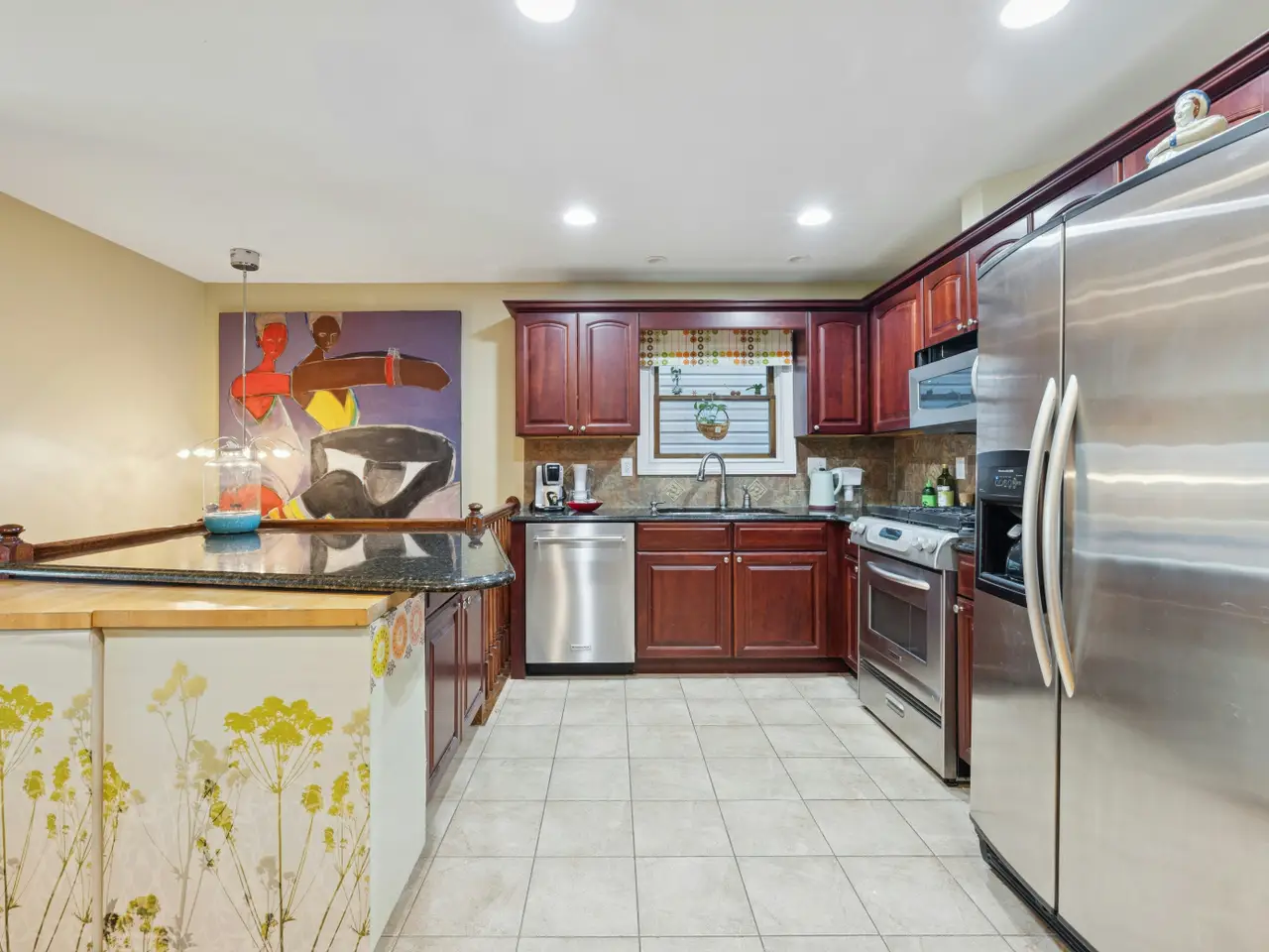 Lovingly maintained two-family townhouse in the heart of Jersey City Heights, moments from Pershing and Leonard Gordon Parks, Summit and Central Aves, major highways and the Journal Square PATH station- plus the bus to NYC stops across the street! An entry foyer greets you, adjacent to the 1 car ATTACHED GARAGE. Up a flight of stairs, past a gracious landing, is a 2BR duplex with an open concept living/dining and kitchen space. French doors to a juliet balcony allow for tons of natural light. Granite and SS kitchen with custom cabinetry and ample counter space! Recently renovated half bath. The primary bedroom with 2 WIC's, a renovated 4pc ensuite spa-like bathroom and balcony rounds out this main level. Down a flight of stairs is the 2nd Bedroom, currently set up as a great room for multiple uses, plus a full bathroom and laundry/utility room. Access to an ENORMOUS backyard patio is also on this level. The backyard features modern fencing, lovely pavers, electricity and water supply. The top floor is currently a 3BR, 2 full updated bathroom full floor unit with granite and SS kitchen, spacious living/dining room, french doors to a juliet balcony in the LR and a proper balcony off the primary bedroom with open views. Many options to use as a single family home, reside with extended family or loved ones, rent one of the units to offset carrying costs or use the entire property as an investment. Conveniently located, multiple outdoor spaces, attached garage, lots of sunlight, durable post-war construction, central HVAC system- the list goes on! Truly a superb investment. Shown by appointment.