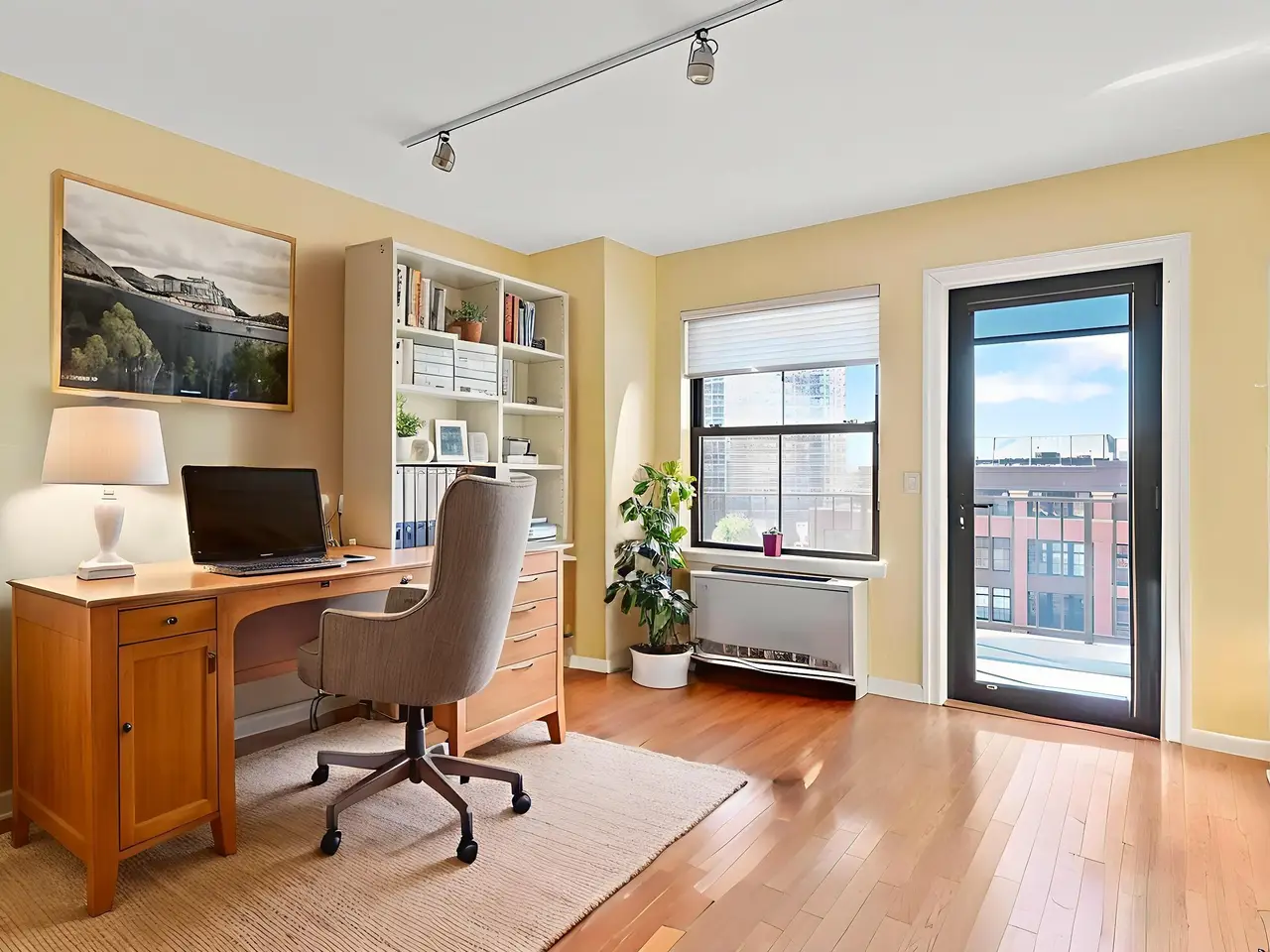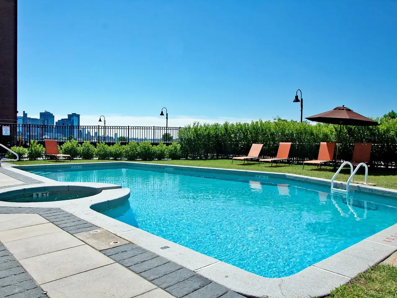 Almost 1500sf of luxury living at Clermont Cove, one of Paulus Hook's most exclusive doorman buildings. This spacious, recently renovated home features two bedrooms plus a large den, two full baths, a large dining living area, plenty of closet space, and a huge private terrace with serene views of the Statue of Liberty, New York Harbor, and Liberty State Park. This sun-filled space boasts an open style kitchen with granite countertops, custom cabinetry, S S appliances and tasteful upgrades including a wine refrigerator and minibar. The terrace can be accessed through the living room and both bedrooms. The extra room is currently being used an office/huge primary bedroom suite, but was previously used as a 3rd Bedroom, and can easily be converted back. Approved architectural plans are included. One valet garage parking space is included in the maintenance fee. Clermont Cove is a full service, luxury building full of amenities including swimming pool, gym, BBQ area, Sky lounge with amazing NYC views, laundry room, and 24 7 concierge. One of the best locations in Paulus Hook - surrounded by parks, nature, restaurants, and shopping, PS 16 school district, with easy access to NYC via Ferry or Exchange Place PATH just minutes away. Whole Foods a quick 7min walk.