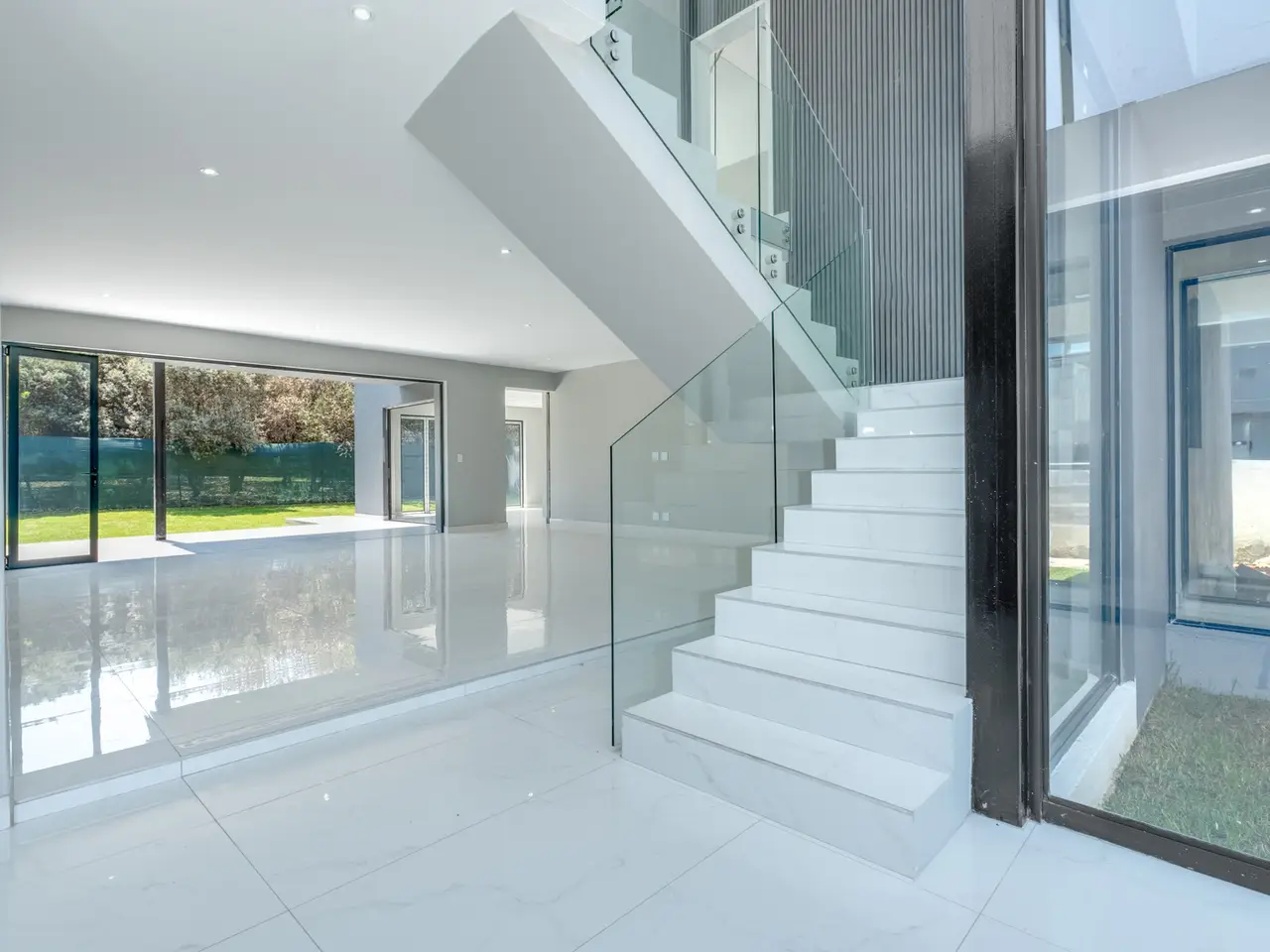 This large, family home offers fantastic value seldom found in Steyn City. Situated on a 954 m2 stand with ample off-road parking for 6 vehicles as well as a fully enclosed large lawn area for the kids/family to enjoy. The exquisite home has a under roof area of 542 m2 plus a further 100 m2 patio and balcony area, fitted with high end finishers and built on a raft foundation. On entering through the large glass front door, you immediately feel the warmth of the inviting open plan living areas. A large open plan dining and lounge area leads to an separate spacious TV lounge room. Open the full length sliding doors and make an enormous indoor/outdoor living area. The large, covered patio, now becomes part of the indoor living area overlooking a spacious lawn and a green belt area which is maintained by the estate. The modern open plan kitchen has ample cupboards space with provision for a double door fridge and a full upright wine cooler. The quartz island has a 5 plate gas hob and prep bowl. The large separate scullery/2nd kitchen offers more than most cupboard space and for appliances. Spacious guest bedroom with en-suite bathroom has sliding doors to garden area, as well as separate guest loo rounds off the ground floor. At the top of the staircase, you have a built-in bookcase/library. Three additional bedrooms all with en-suite bathrooms, have sliding doors leading to balconies with views of the green belt area. The generous main bedroom has a large walk-in dressing area as well as a feature stand-alone stone bath with separate his and hers vanities and big shower. Full staff quarters with en-suite, 3 garages and off-road guest parking for 6 cars round off this priced to sell property. Close to the lagoon and all of the City Centre amenities. This soon to be completed property offers exceptional value. Give me a call and let’s negotiate prior to completion. What also comes with the home? Steyn City’s 2’000-acre unique parkland residence lifestyle, go for a walk-jog run on the 50km of well-lit paved boulevard, go mounting biking or trail running on the 42km MTB track, go horse riding at the Equestrian Centre, go golfing on the world class Jack Nicholas 18 hole golf course, go play tennis or hit the Gym or outdoor exercise and yoga stations, and if all this activity is too strenuous, then pick-up your rod and go fishing for blue kurper, barbel, or carp in one of 5 dams of the 27 within the estate. Take the kids to the skate park, or for a ride on the Zip line, or to one of three play nods, Dino Park, the Pirate Ship, and Mandela Play Park. If none of the above suite you then just relax on a lounger along-side the 300-metre lagoon or go for a helicopter flip from the Heliport. Give me a call and let’s negotiate for a lifestyle like no other.
