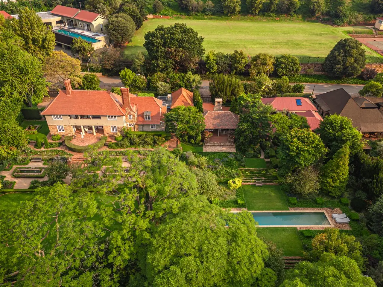 Designed in 1906 by Sir Herbert Baker, this landmark home, the first on its prestigious street, has been beautifully restored and thoughtfully modernised to offer a luxurious lifestyle infused with heritage charm. A grand double-storey stone-clad entrance and imported roof tiles reflect its timeless architectural appeal. The outdoor living spaces are exceptional, featuring an elegant entertainment room with generous dining and lounge areas overlooking a shimmering lap pool. A cricket net and imaginative childrenGÇÖs play areas add a family-friendly touch. Surrounding the home is an award-winning terraced garden inspired by the Arts and Crafts movement, with layered lawns, vibrant flower beds, century-old jacaranda and oak trees, an original Gertrude Jekyll pergola, stone pathways, and tranquil water features. Inside, original features such as wood panelling, bay windows, and fireplaces are seamlessly paired with modern finishes. The ground floor includes a guest suite with en-suite bathroom (originally the coach room), a family TV lounge, open-plan chefGÇÖs kitchen with eat-in area and scullery, formal dining room, and a study with adjoining sitting room. Upstairs are three elegant en-suite bedrooms, each with garden views. The master suite features an open-plan bathroom, walk-in closet, cosy fireplace, and a private balcony. The original Herbert Baker stables have been transformed into a refined, self-contained private cottage, ideal for guests or extended family. A stylish staff room provides added versatility. Equipped with a 70,000L water tank and inverter system, and situated in a boomed-off road with 24-hour security, this home offers the perfect balance of privacy, sustainability, and peace of mind. A truly rare opportunity to own a piece of JohannesburgGÇÖs architectural heritage. Private viewings by appointment.