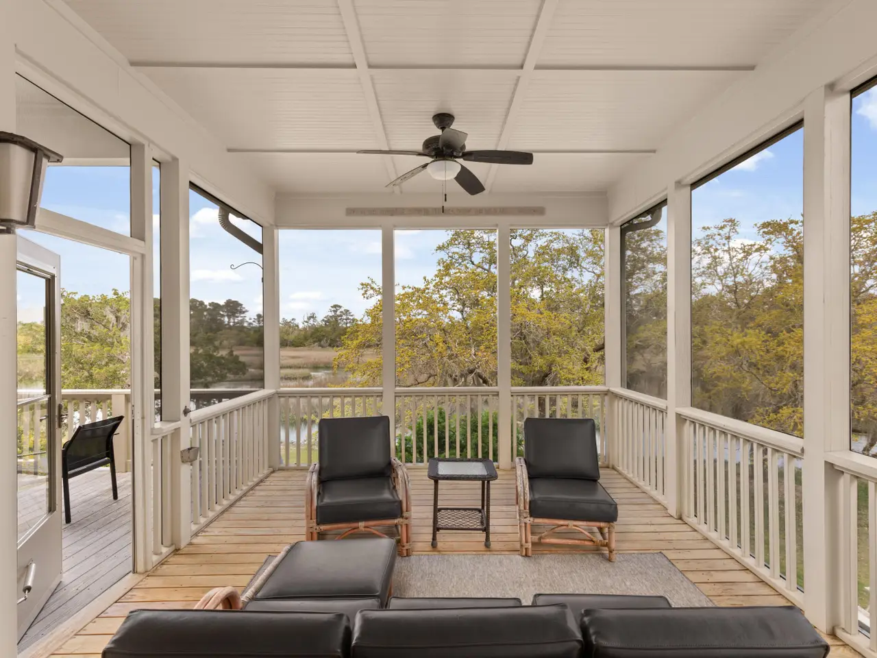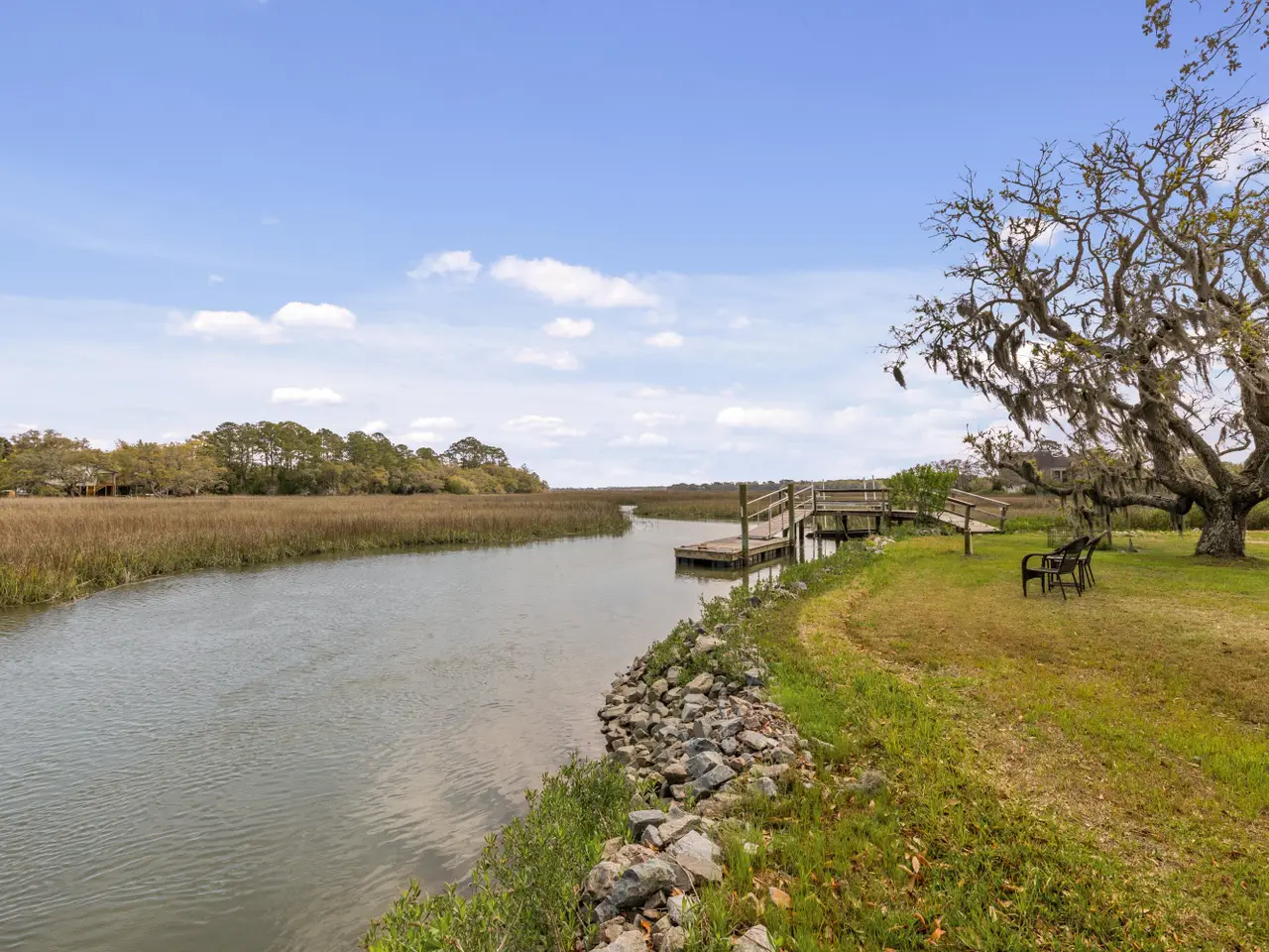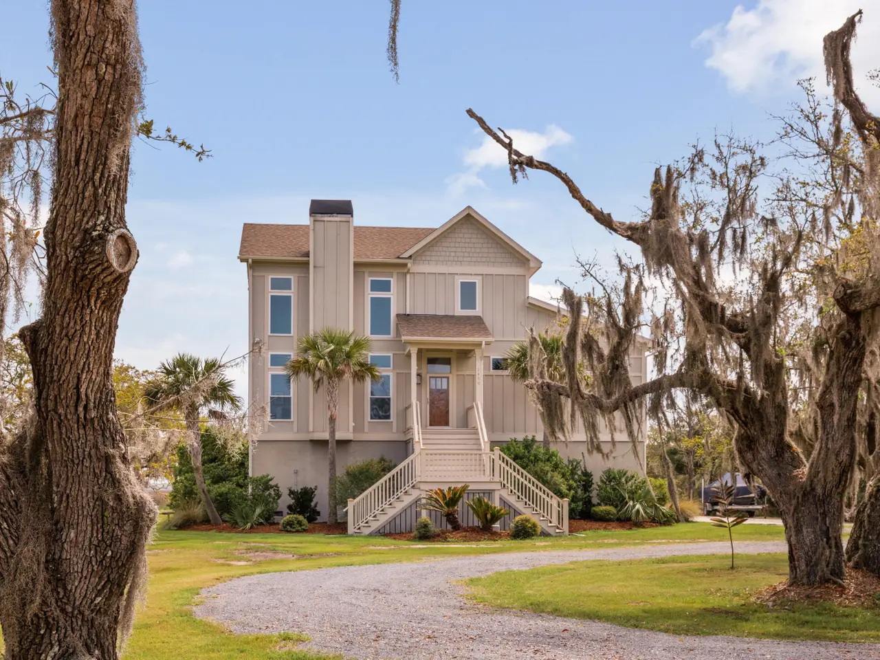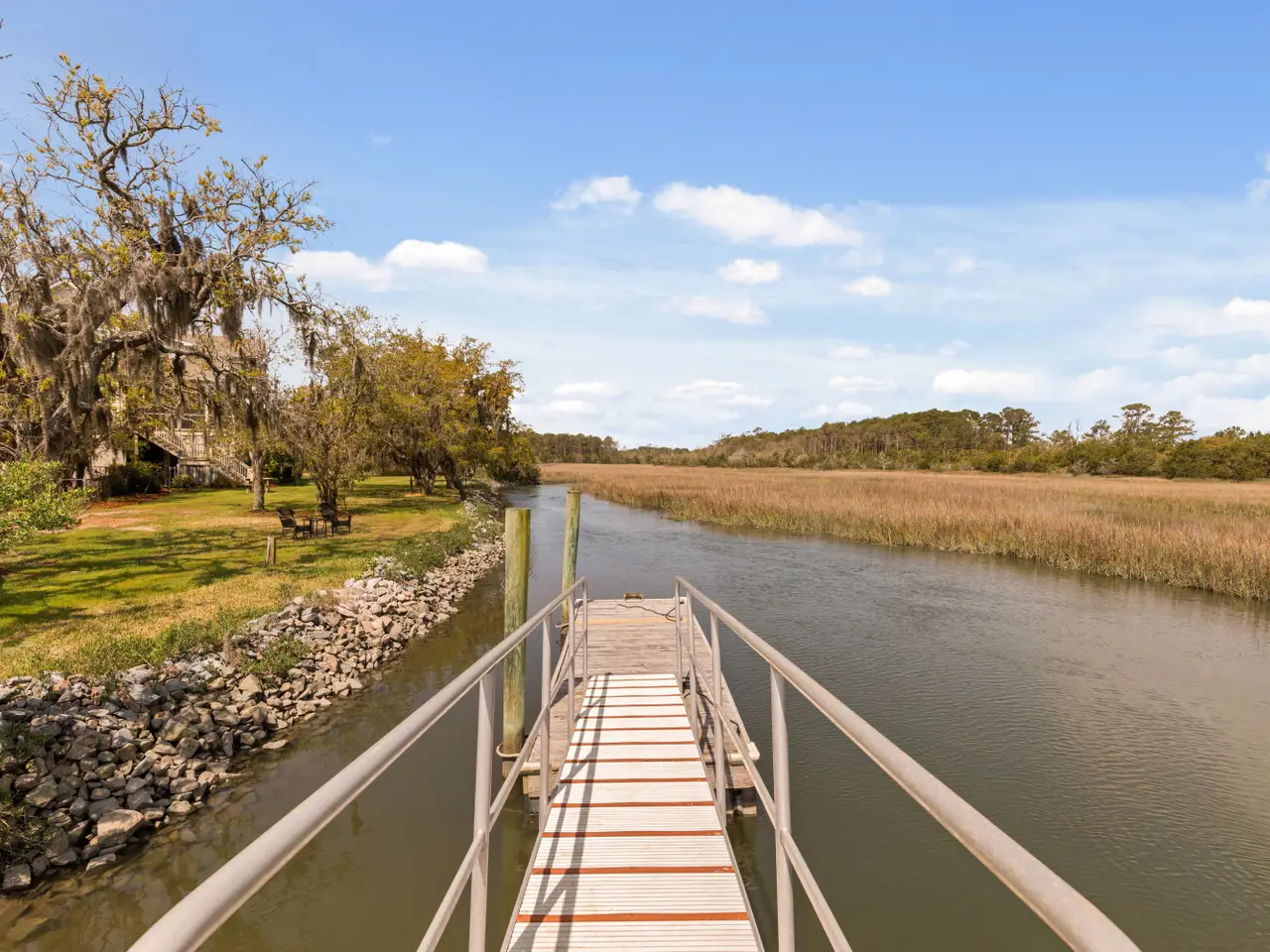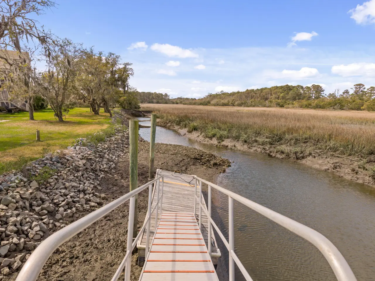 A rare chance to own a private island retreat in Charleston's breathtaking Lowcountry! This custom-built Lowcountry estate, completed in 2014, offers an unparalleled blend of Southern charm and modern luxury. Situated on 7.2 serene acres with panoramic 360 degree Stono River and Abbapoola Creek views, this home is a sanctuary of peace and privacy. A private drive leads you past 5 acres of planted pine timber to this secluded haven, complete with its own .4 acre tidal saltwater pond that is full of redfish, where nature and elegance intertwine effortlessly. Inside, the open-concept living area is a showstopper - cathedral ceilings with floor-to-ceiling windows that frame the ever-changing marsh landscape. The heart of the home is the kitchen, meticulously designed for both functionality and style, featuring a massive granite island with seating. Enjoy stunning views from your kitchen windows, where dolphins often glide by, a daily reminder of nature's magic. The owner's suite is a retreat of its own, with a spa-like en suite bath with a soaking tub, and two spacious walk-in closets. Two additional bedrooms are upstairs, each with ensuite baths, that provide ample space for family and visitors. Feel the salt-kissed air and listen to the gentle rustle of the marsh grasses as you unwind on the screened in porch. The deep-water dock is equipped with electricity, water, and a 13,000 pound boat lift - ideal for launching kayaks, paddleboards, or heading out for a day on the water. The oversized three-car garage offers abundant storage for vehicles, golf carts, boats, and all your Lowcountry lifestyle essentials. This property is thoughtfully designed for durability and peace of mind, featuring elevated construction for enhanced flood protection, storm-resistant materials, and a granite revetment to help mitigate shoreline erosion. Additional premium upgrades include a fully owned solar panel system, offering significant energy savings while promoting sustainability. A robust 20-ton-per-axle bridge ensures secure access for all vehicle types, including emergency services and heavy-duty equipment - ideal for future improvements such as a pool installation. Located just 15 minutes from Freshfields Village shopping and dining, and a short drive to the pristine beaches of Kiawah Island, this one-of-a-kind property offers the perfect balance of seclusion and convenience. This is Lowcountry living at its finest - a rare blend of natural wonder, refined living, and endless adventure.