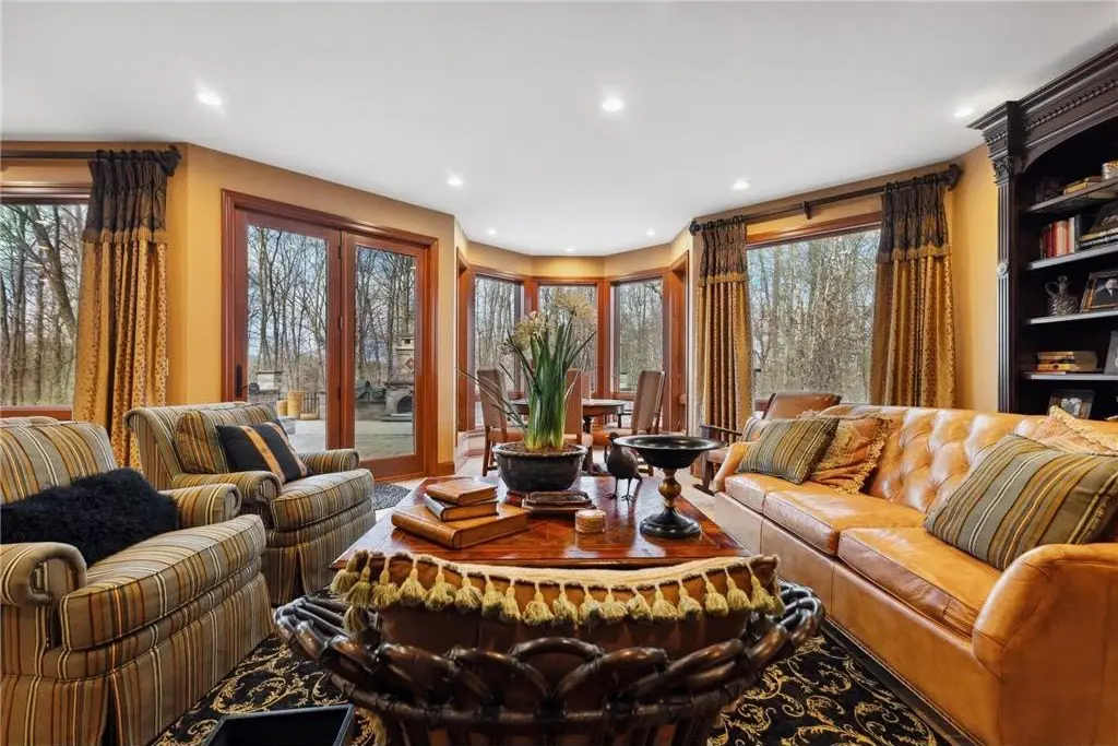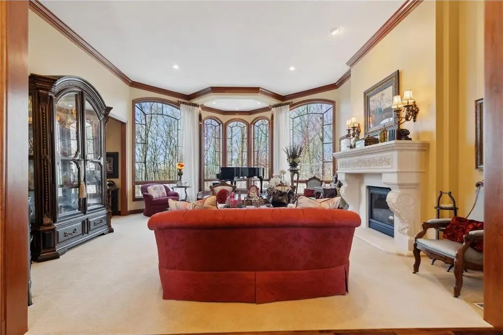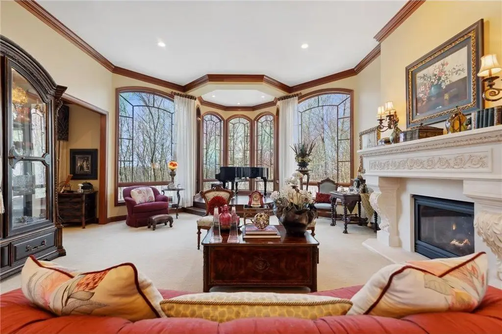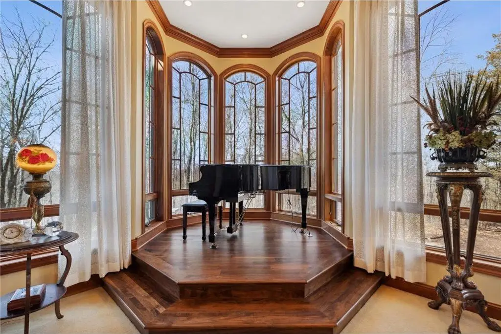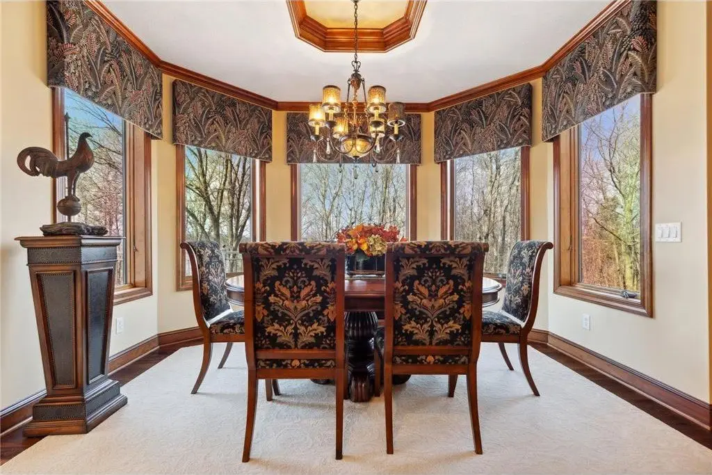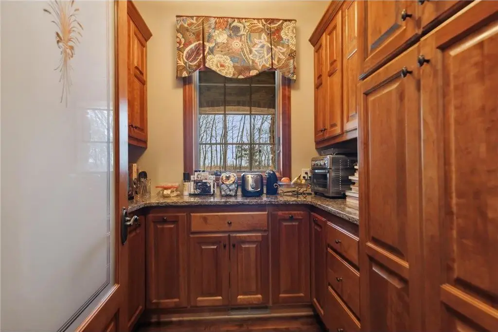 Serene Private Setting & Beautiful Views! Enjoy the Timeless Elegance in this Custom 1 owner home nestled on 10 wooded acres! Custom Open Floor plan with floor to ceiling windows. Attention to detail & Top quality throughout the home. The exterior is made of hand formed bricks and decorative Arkansas River Rock. As you enter through the custom-made security gate with security cameras the Peace & Serenity begins. Lovely 2-Story design with an elevator. 12 ft. ceilings & 8.5 ft doorways. The Spacious Kitchen & Hearth Room features American cherry cabinets, Sub Zero appliances, Wolf double ovens, large 42 X 8 granite center island with refrigerator and warming drawers. There is a large prep pantry with granite counters too! The Hearth Room has a Built-in hutch with granite top, built in bookcase & TV. The fireplace is Colorado stone. The formal dining room has elegant wood pillars, mullioned windows, chandelier, built in cabinet with granite top and coved ceiling. The large office has 12 ft ceiling with a custom 12 ft. Fireplace with decorative Lion Heads. Custom wall of built in bookshelves, wood wainscot & French doors. Walnut, stone & tile floors, Crown Moulding & Custom Drapery throughout. The Beautiful Sunroom has mosaic tile & overlooks the deck and the expansive patio with built in seating, custom outdoor kitchen and fireplace. As you enter the upper level you will notice the large custom stained-glass window and large foyer. There are 3 upper-level bedrooms and a lower-level bedroom too. The Luxurious Owners Suite has walnut wood floors, coved ceiling, double doors, dressing room with built in dresser with quartz top. His & Hers closets. The owner's bath has heated floors, chandelier, spa-tub, separate shower with tile floor, built in cabinets with granite tops. The secondary bedrooms have walk in closets. The secondary bedroom is an Ensuite with custom cabinets, granite countertops and tile flooring. There is an upstairs flex room that could be a craft room, exercise or second office. This home is a great home for Entertaining! There is a large granite top bar, with circular seating. Lots of cabinets and granite top counters. The lower-level features Fireplace and beautiful heated cut stone floor. There is an additional Bedroom with a walk in closet, Exercise room, storage room. The lower-level walks out to the beautiful Patio! This Home is like new! Avoid the New construction wait!
