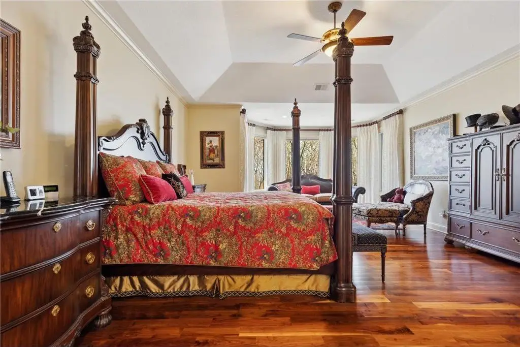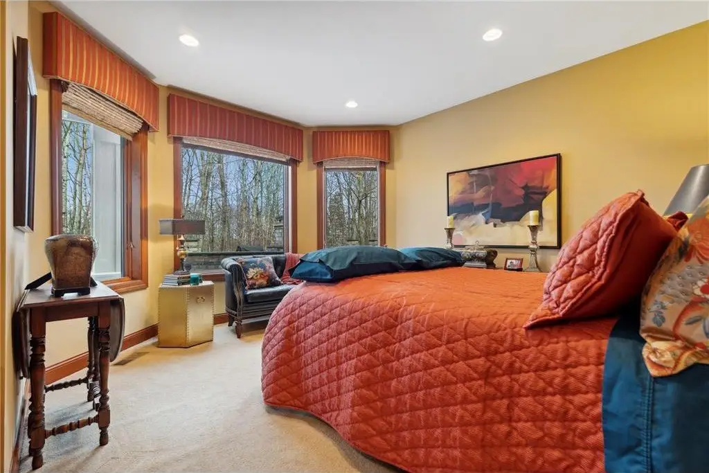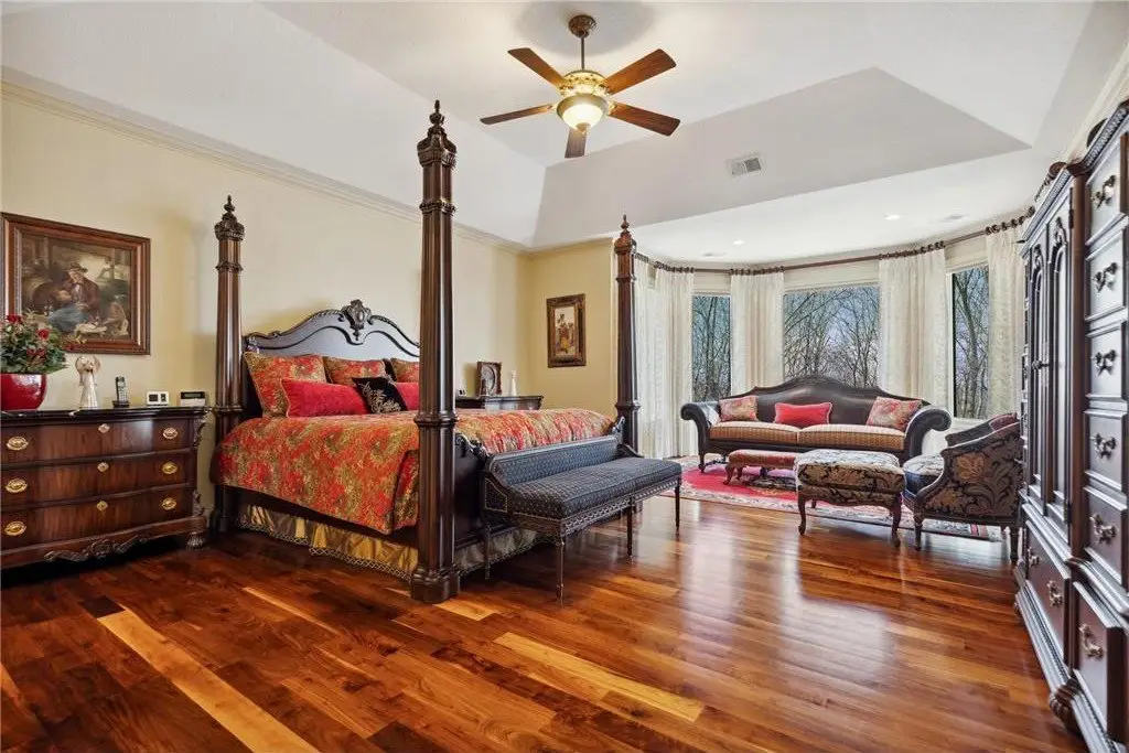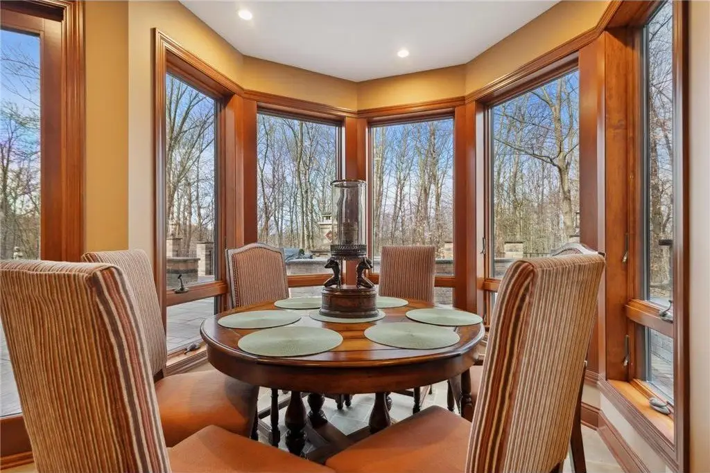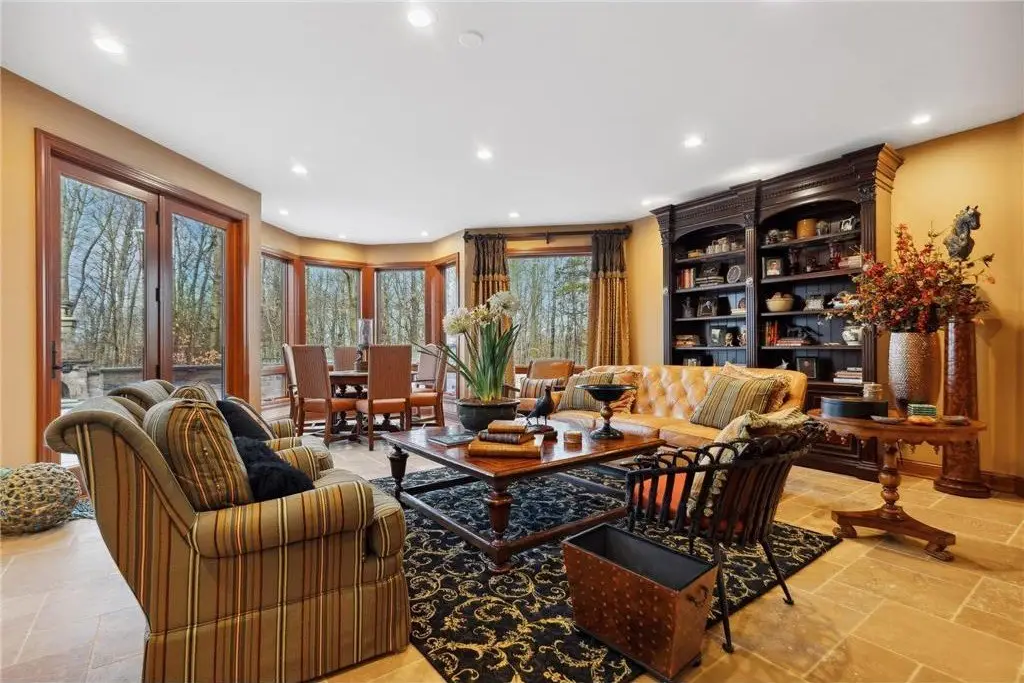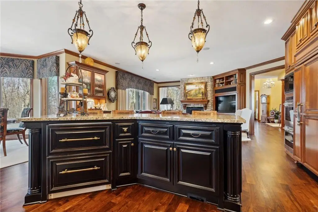 Serene Private Setting & Beautiful Views! Enjoy the Timeless Elegance in this Custom 1 owner home nestled on 10 wooded acres! Custom Open Floor plan with floor to ceiling windows. Attention to detail & Top quality throughout the home. The exterior is made of hand formed bricks and decorative Arkansas River Rock. As you enter through the custom-made security gate with security cameras the Peace & Serenity begins. Lovely 2-Story design with an elevator. 12 ft. ceilings & 8.5 ft doorways. The Spacious Kitchen & Hearth Room features American cherry cabinets, Sub Zero appliances, Wolf double ovens, large 42 X 8 granite center island with refrigerator and warming drawers. There is a large prep pantry with granite counters too! The Hearth Room has a Built-in hutch with granite top, built in bookcase & TV. The fireplace is Colorado stone. The formal dining room has elegant wood pillars, mullioned windows, chandelier, built in cabinet with granite top and coved ceiling. The large office has 12 ft ceiling with a custom 12 ft. Fireplace with decorative Lion Heads. Custom wall of built in bookshelves, wood wainscot & French doors. Walnut, stone & tile floors, Crown Moulding & Custom Drapery throughout. The Beautiful Sunroom has mosaic tile & overlooks the deck and the expansive patio with built in seating, custom outdoor kitchen and fireplace. As you enter the upper level you will notice the large custom stained-glass window and large foyer. There are 3 upper-level bedrooms and a lower-level bedroom too. The Luxurious Owners Suite has walnut wood floors, coved ceiling, double doors, dressing room with built in dresser with quartz top. His & Hers closets. The owner's bath has heated floors, chandelier, spa-tub, separate shower with tile floor, built in cabinets with granite tops. The secondary bedrooms have walk in closets. The secondary bedroom is an Ensuite with custom cabinets, granite countertops and tile flooring. There is an upstairs flex room that could be a craft room, exercise or second office. This home is a great home for Entertaining! There is a large granite top bar, with circular seating. Lots of cabinets and granite top counters. The lower-level features Fireplace and beautiful heated cut stone floor. There is an additional Bedroom with a walk in closet, Exercise room, storage room. The lower-level walks out to the beautiful Patio! This Home is like new! Avoid the New construction wait!