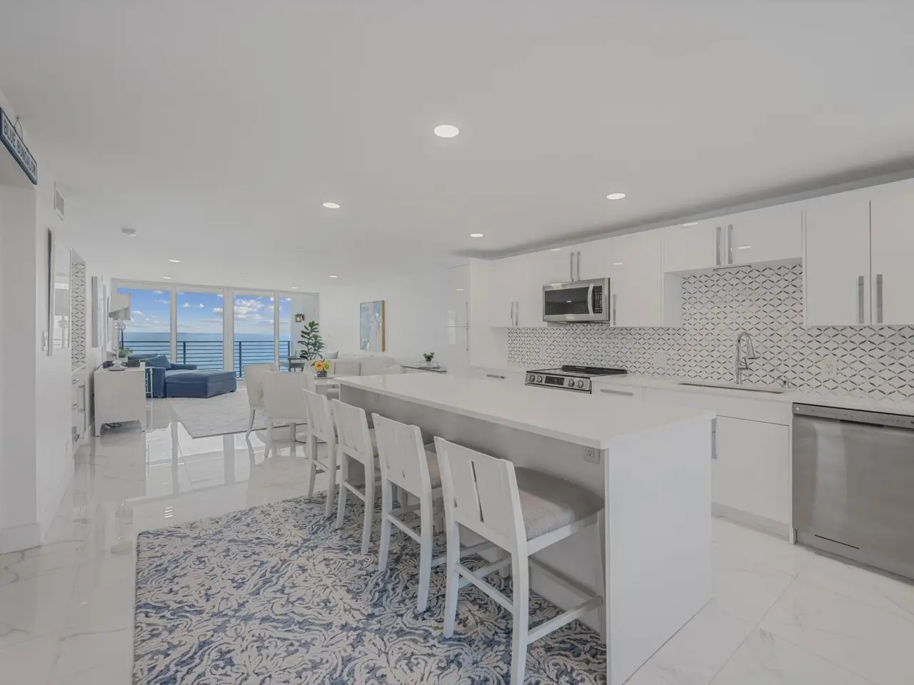 This beautifully renovated oceanfront condo at The Surf offers sweeping, unobstructed views of the Atlantic and an easy, turnkey lifestyle in the heart of Juno Beach. Offered with the option to be fully furnished, this unit has been thoughtfully redesigned with a clean, modern coastal feel. The open kitchen features sleek quartz countertops, European-style cabinetry, and a stylish backsplash that flows into the spacious living and dining areas--framed by floor-to-ceiling impact windows showcasing the ocean. Porcelain tile floors run throughout, and the primary suite offers its own incredible views along with a spa-like bathroom and custom walk-in closet. SEE MORE... The oversized balcony is the perfect place to relax, unwind, and watch the sunrise and sunset. The building just underwent renovations (seller has paid all assessments), with almost everything completed. Upgrades include concrete restoration, all-new balconies, waterproofed catwalks, rebar reinforcement, updated electrical systems, newly finished garages and pool, fresh exterior paint, and updated tropical landscaping. One of the standout features is the second-floor beachfront pool, which offers private beach access and elevated ocean views, making it feel like your own private resort. The Surf is a pet-friendly community with underground parking and an unbeatable location just minutes from the best dining, shopping, golf, and entertainment. This is a rare chance to enjoy luxurious, low-maintenance oceanfront living in one of South Floridas most charming beach towns.
