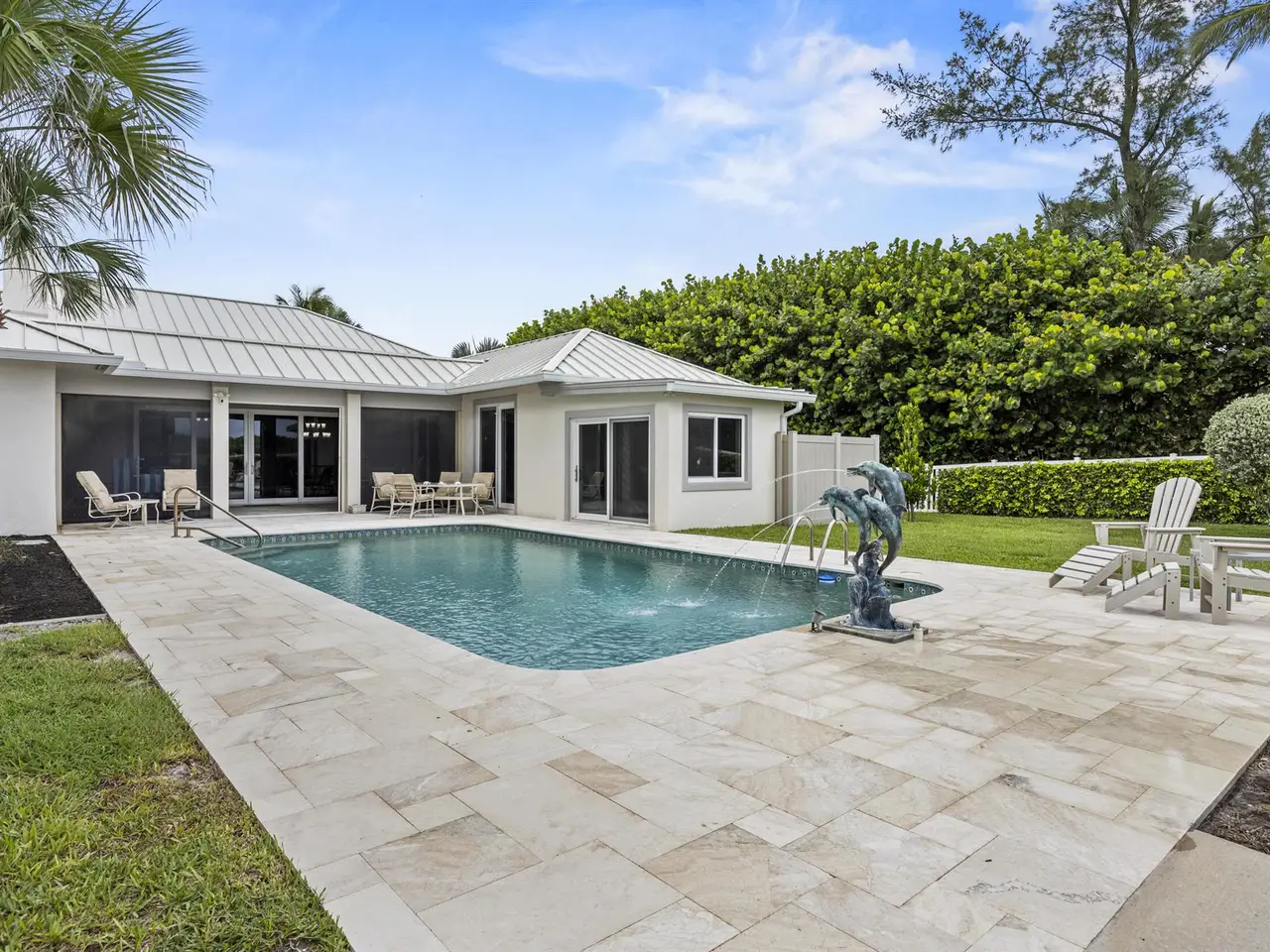 Exquisite oceanfront estate on prestigious Jupiter Island, fully renovated to embody coastal luxury. This four bedroom, 5.5 bath residence offers breathtaking Atlantic views, a brand-new gourmet kitchen, and a striking cocina stone fireplace. Designed for refined living and effortless entertaining, enjoy an air-conditioned summer kitchen, resort-style pool, and seamless indoor-outdoor spaces. The expansive primary suite features a spa-inspired bath, while guest suites ensure unmatched comfort. With direct beach access, elegant finishes, and a location on one of the most exclusive islands in the world, this home defines sophisticated oceanfront living.