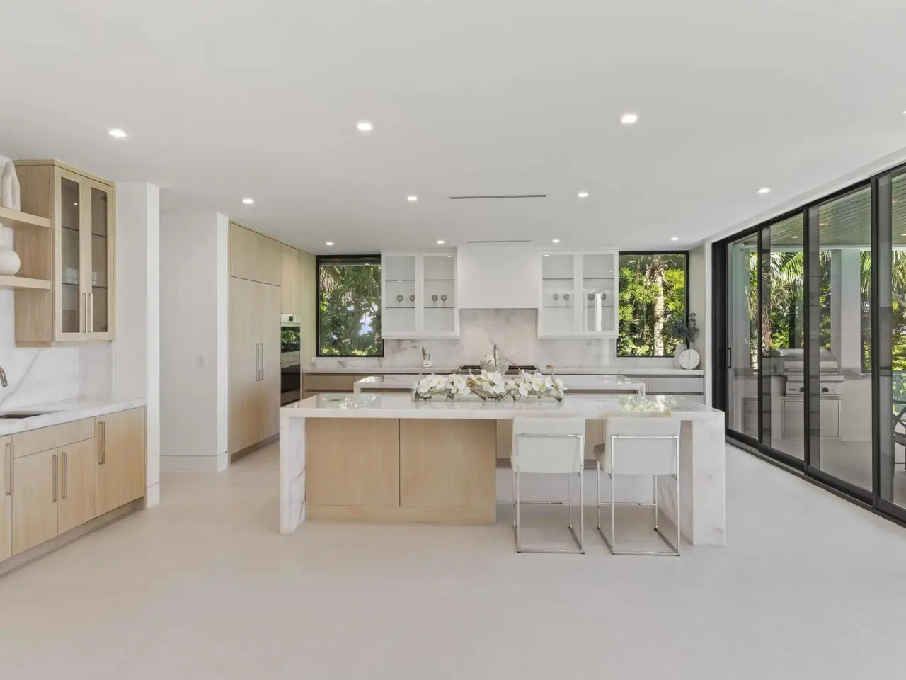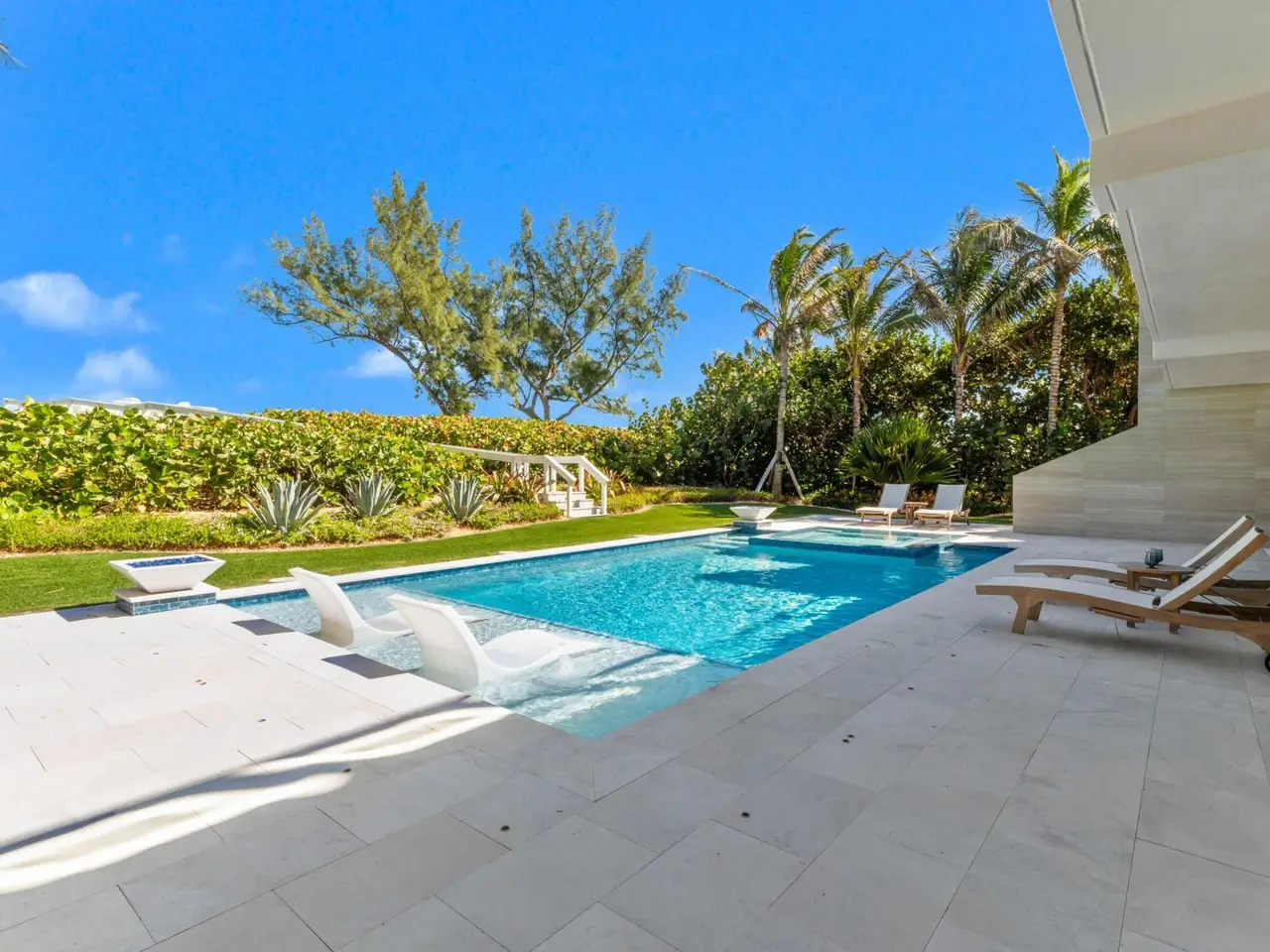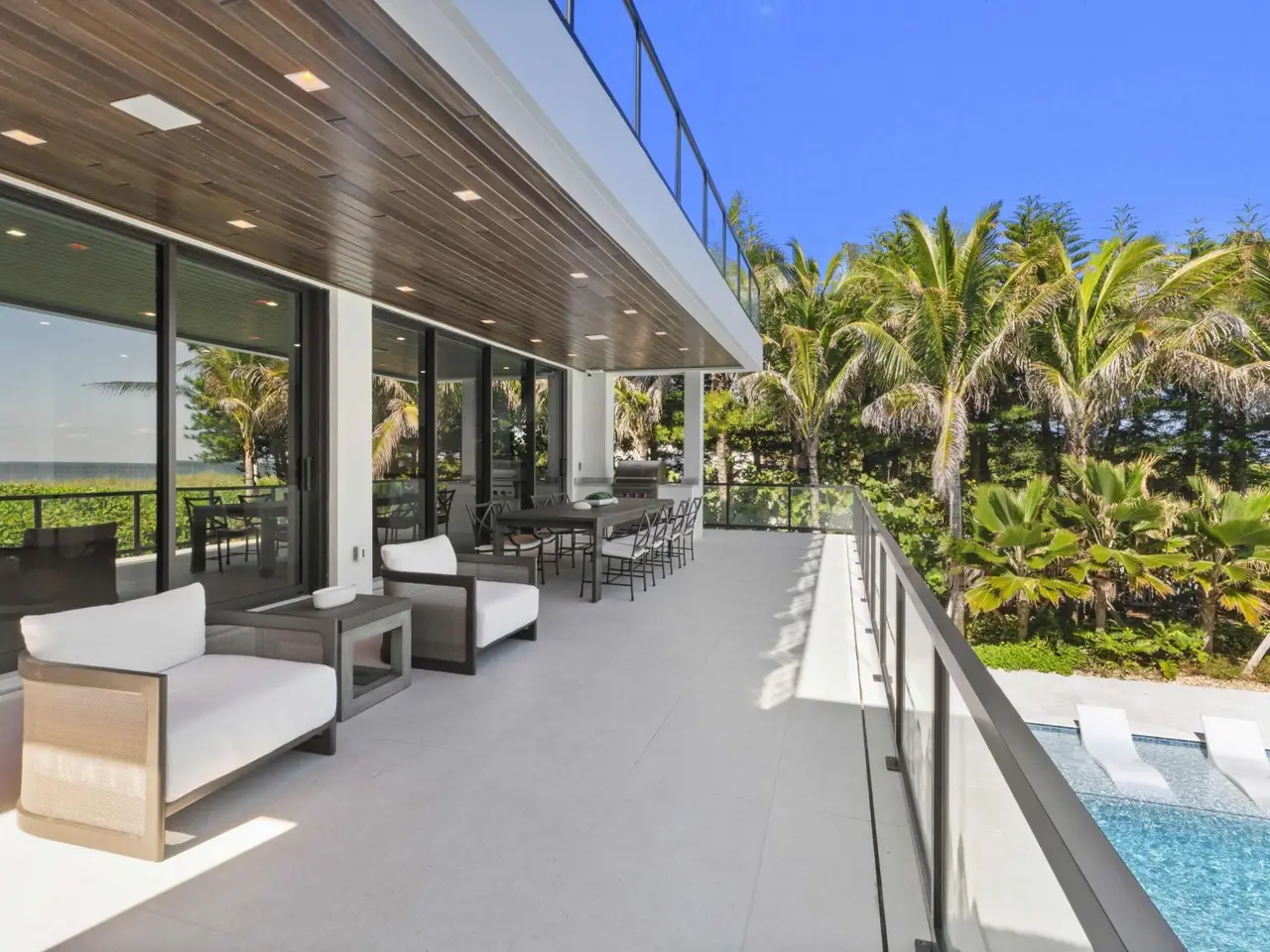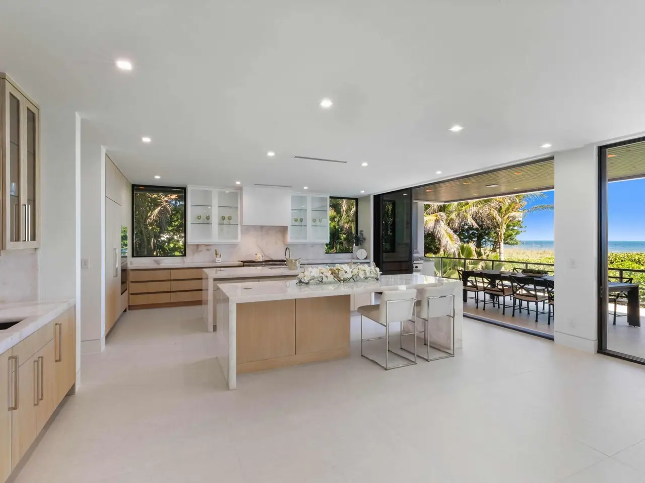 Experience unparalleled beachfront luxury and an exceptional family lifestyle on Jupiter Island with this brand-new (2025) oceanfront estate, set on 100 feet of pristine, unobstructed shoreline. Crafted by Lendalk Properties and reimagined by Olsson Design, this modern coastal masterpiece offers 8,000 total sq ft (approx. 6,000 sq ft under air) with 4 bedrooms, 5.2 baths, a den, and a three-car garage plus golf-cart bay--designed with comfort, connection, and effortless living in mind.The open, state-of-the-art chefs kitchen is ideal for gathering, featuring dual islands, Cristallo countertops, custom cabinetry, Sub-Zero refrigeration, a Wolf gas range, a wet bar, oversized pantry, and abundant built-ins--perfect for family meals, entertaining, or hosting weekend guests.