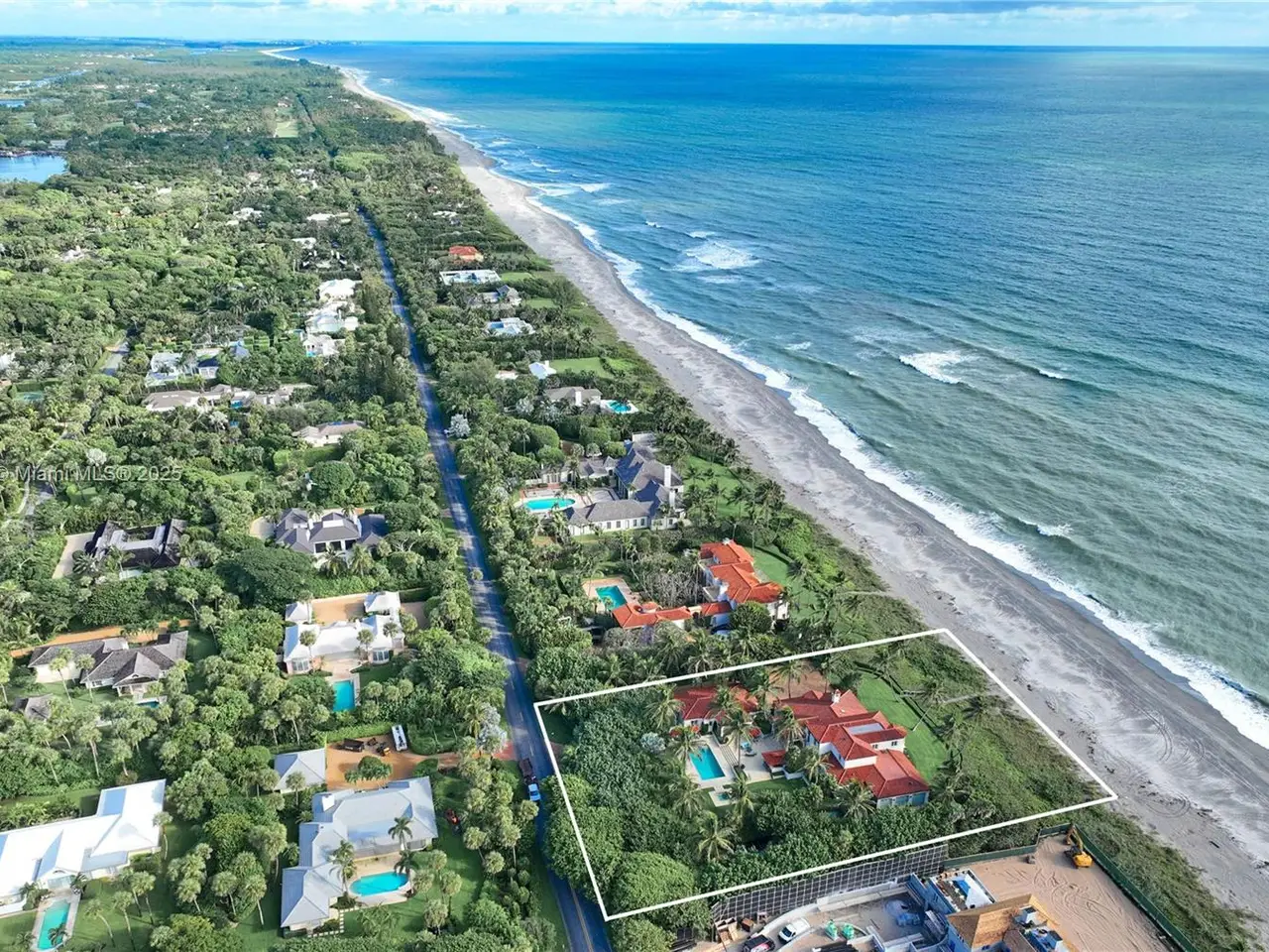 A rare opportunity to own a legacy estate on prestigious Jupiter Island, where timeless Mediterranean architecture meets impeccable craftsmanship. Set on an expansive oceanfront lot, this residence has been thoughtfully designed to balance privacy, comfort, and sophistication, offering both intimate family living and grand-scale entertaining. The main house features a luxurious primary suite complete with dual full bathrooms and a private office, creating a retreat that blends comfort and elegance. Downstairs offers an en-suite guest bedroom and an additional office, along with two half bathrooms for convenience. The lower level includes a rare basement, a versatile and highly desirable feature in South Florida.