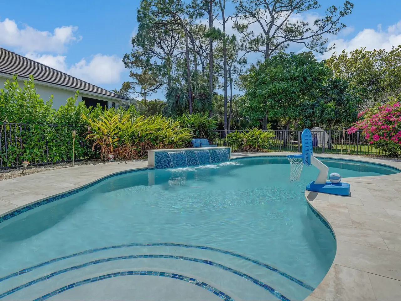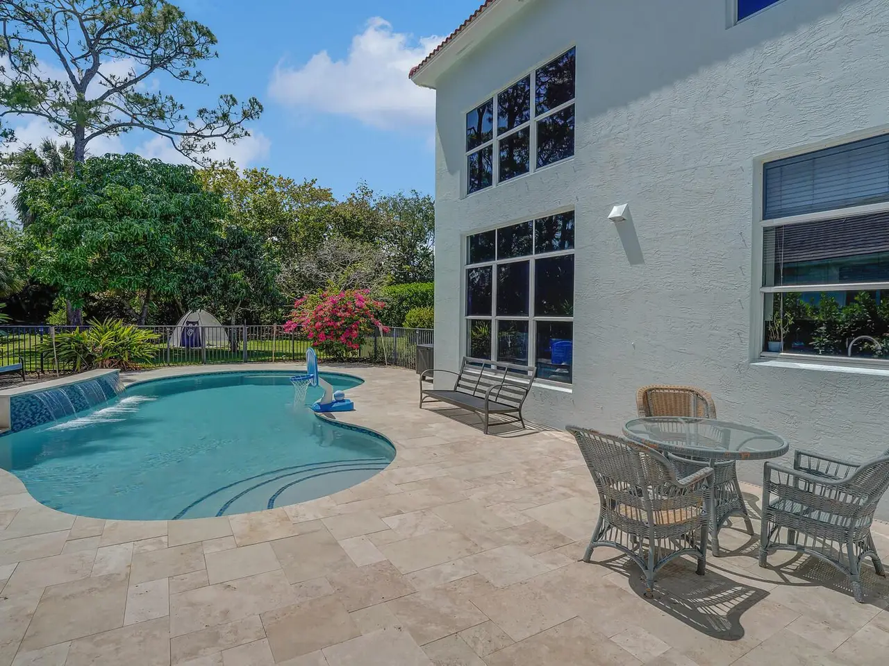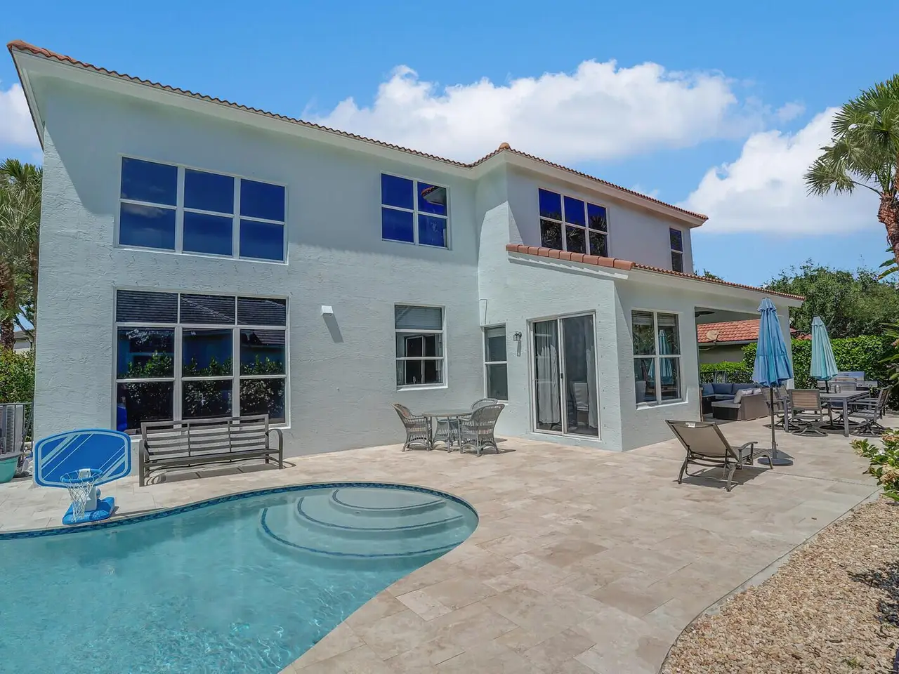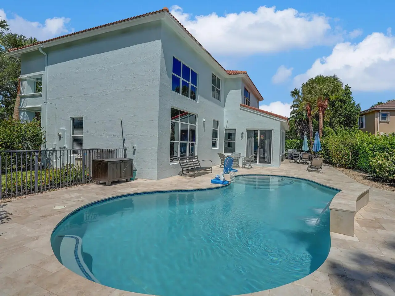 BEST VALUE IN ALL OF JUPITER! Situated on a cul-de-sac on a .29 acre lot, is a beautifully maintained 6 bedroom, 4 bath home with 3 car garage. Gorgeous marble flooring flows throughout the first story. A large, 1st floor office/guest room with ensuite full bath is ideal for remote work and guests alike. Upstairs, you will find an additional 5 bedrooms, two spacious bedrooms share an accommodating full bath in addition to 2 other large bedrooms with a jack and jill. French doors open into your spacious owner's suite with ample closet space. Outside, enjoy the newly constructed heated, saltwater pool with 1400 sq ft of travertine patio, surrounded for privacy and serene outdoor living, by mature landscaping. New HVAC - Fresh exterior paint, April 2025. Stunning and priced to sell!
