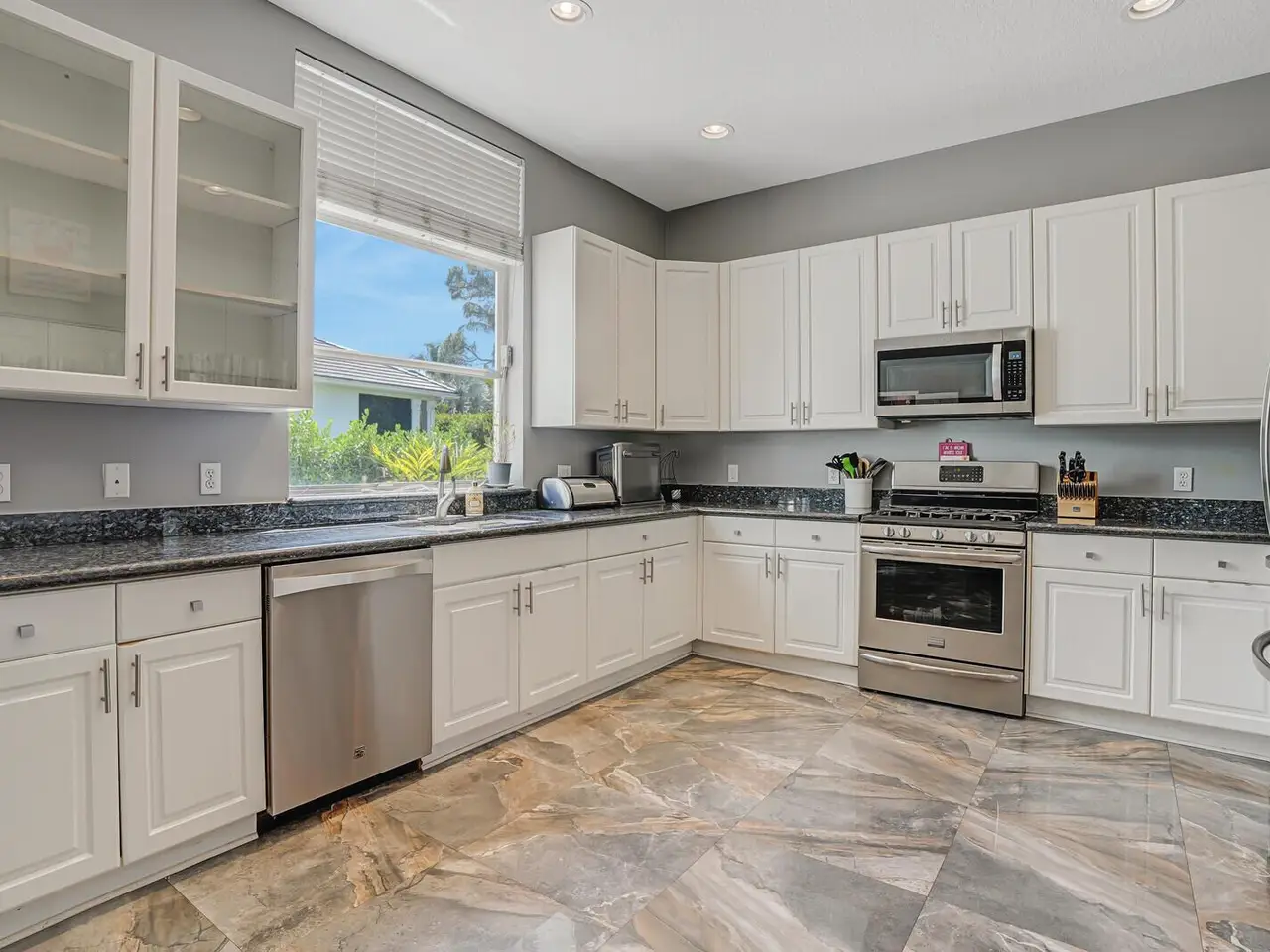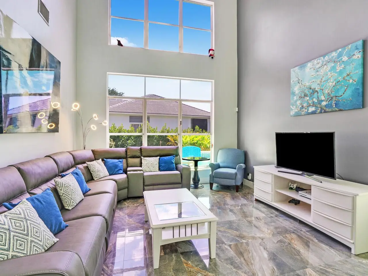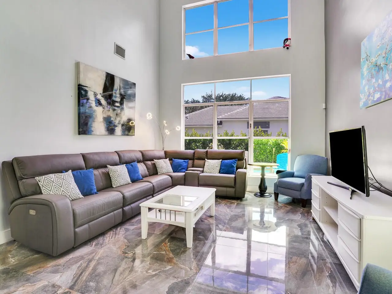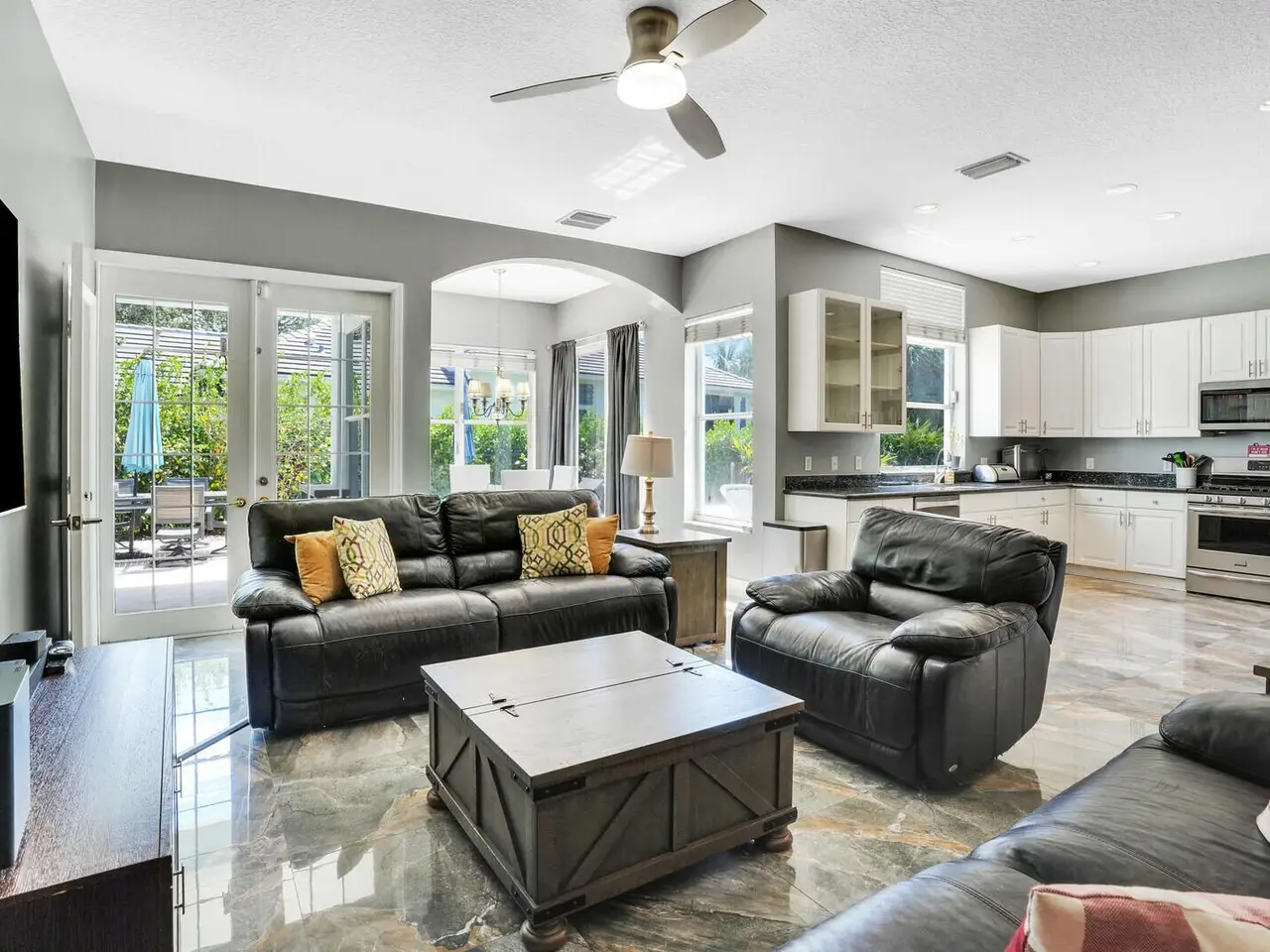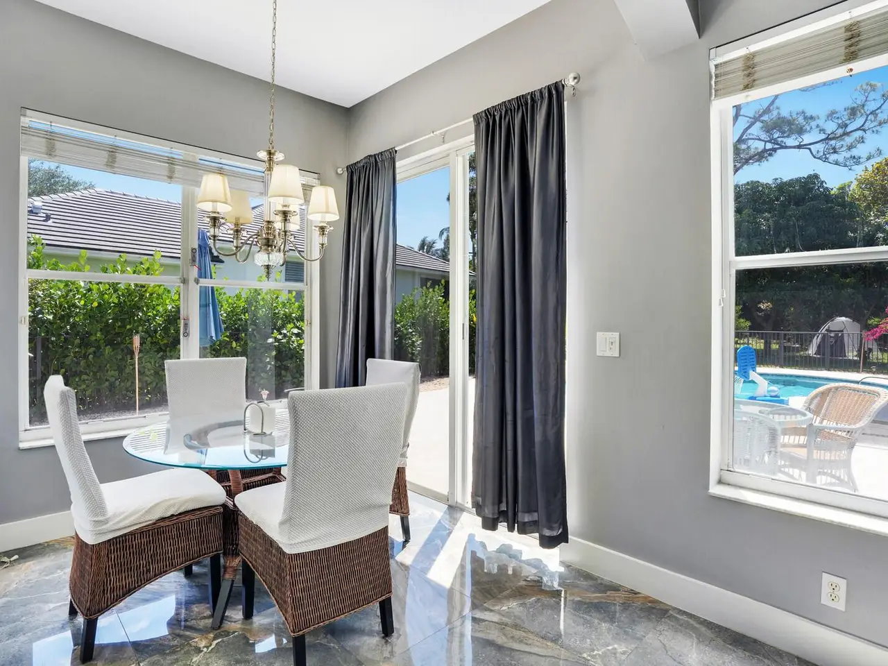 BEST VALUE IN ALL OF JUPITER! Situated on a cul-de-sac on a .29 acre lot, is a beautifully maintained 6 bedroom, 4 bath home with 3 car garage. Gorgeous marble flooring flows throughout the first story. A large, 1st floor office/guest room with ensuite full bath is ideal for remote work and guests alike. Upstairs, you will find an additional 5 bedrooms, two spacious bedrooms share an accommodating full bath in addition to 2 other large bedrooms with a jack and jill. French doors open into your spacious owner's suite with ample closet space. Outside, enjoy the newly constructed heated, saltwater pool with 1400 sq ft of travertine patio, surrounded for privacy and serene outdoor living, by mature landscaping. New HVAC - Fresh exterior paint, April 2025. Stunning and priced to sell!