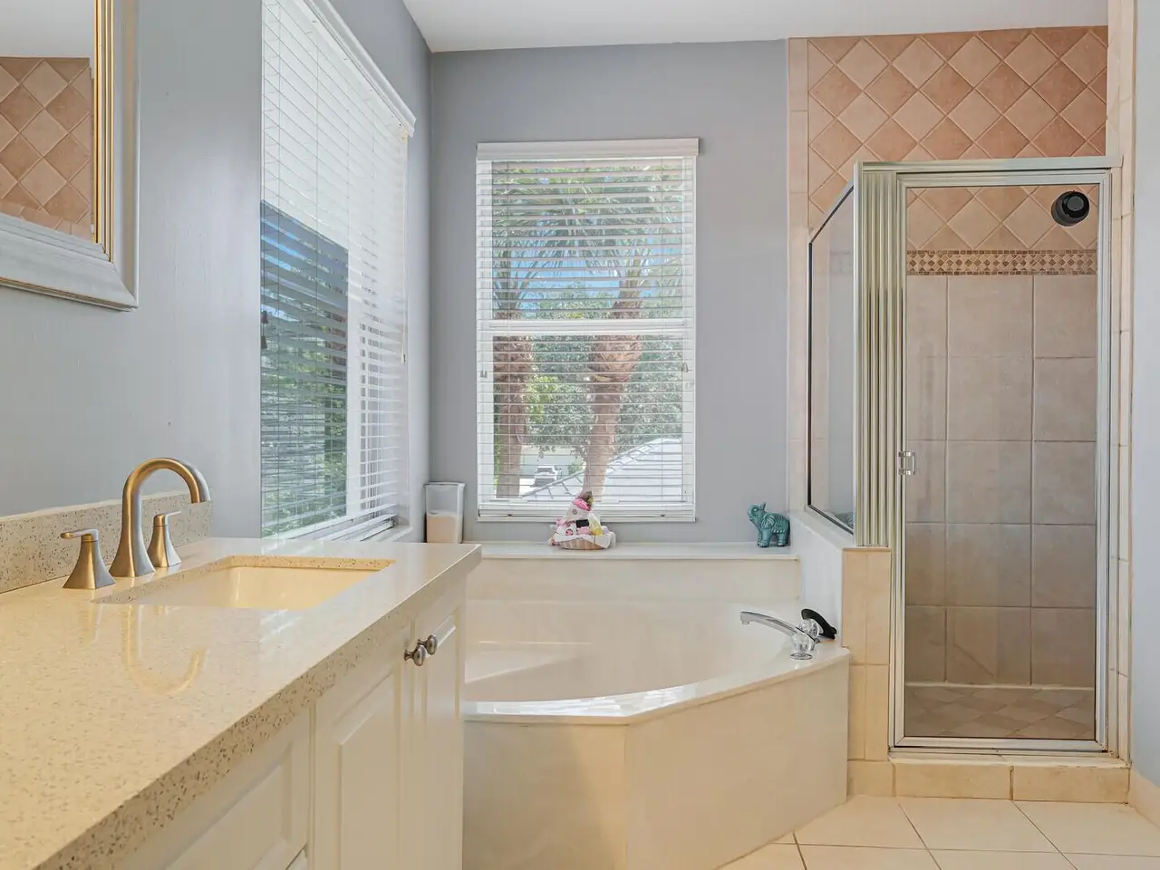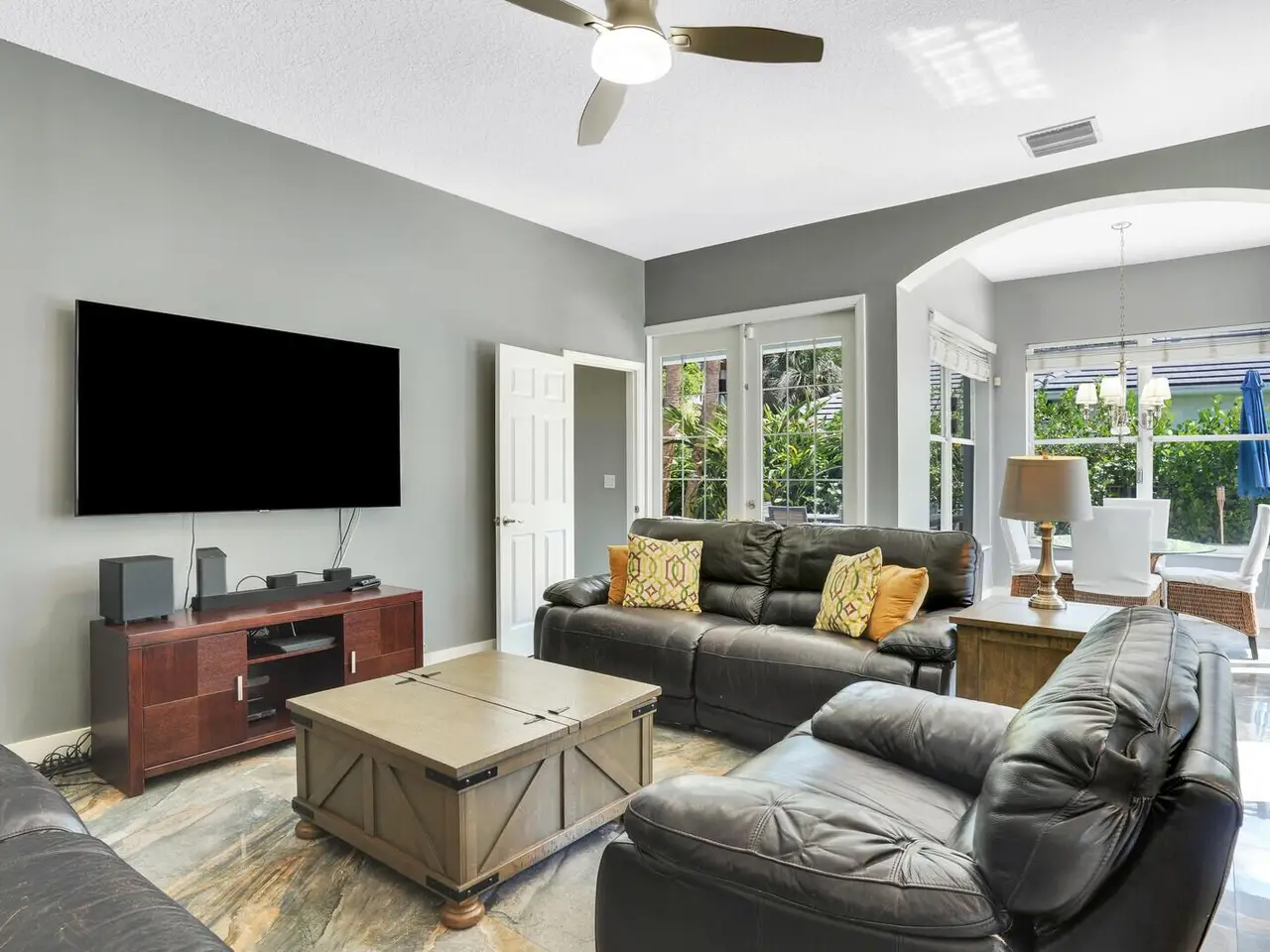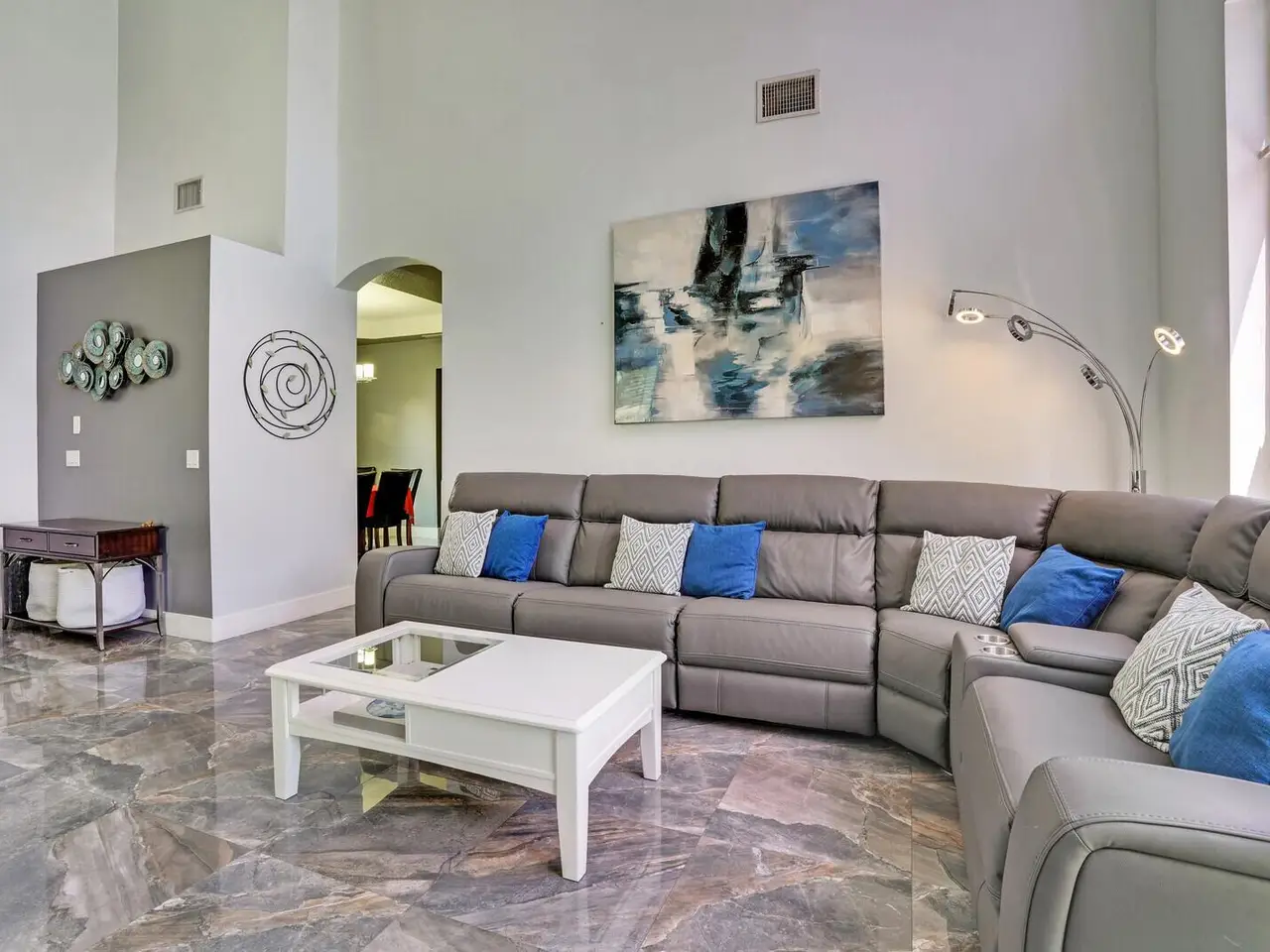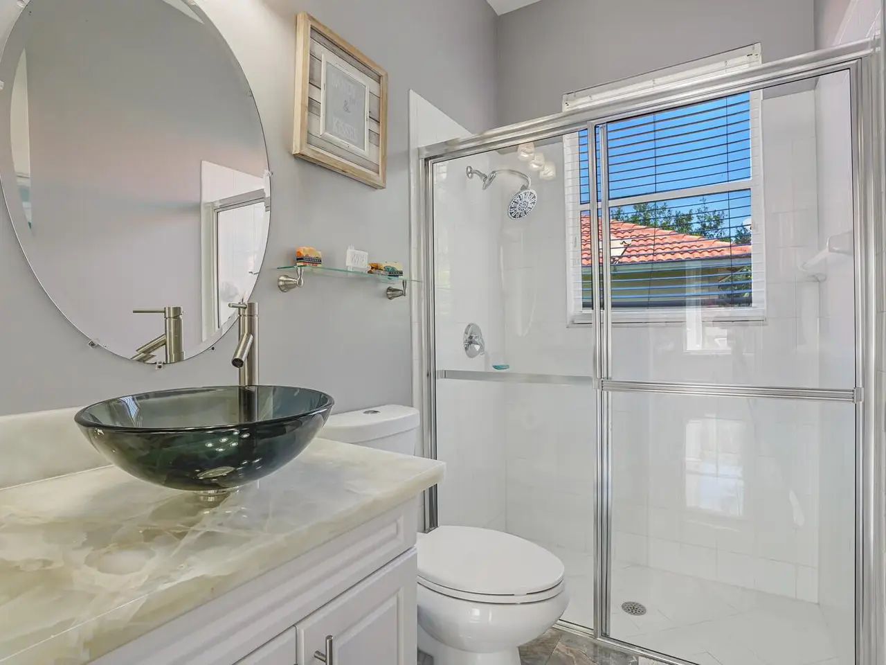BEST VALUE IN ALL OF JUPITER! Situated on a cul-de-sac on a .29 acre lot, is a beautifully maintained 6 bedroom, 4 bath home with 3 car garage. Gorgeous marble flooring flows throughout the first story. A large, 1st floor office/guest room with ensuite full bath is ideal for remote work and guests alike. Upstairs, you will find an additional 5 bedrooms, two spacious bedrooms share an accommodating full bath in addition to 2 other large bedrooms with a jack and jill. French doors open into your spacious owner's suite with ample closet space. Outside, enjoy the newly constructed heated, saltwater pool with 1400 sq ft of travertine patio, surrounded for privacy and serene outdoor living, by mature landscaping. New HVAC - Fresh exterior paint, April 2025. Stunning and priced to sell!
