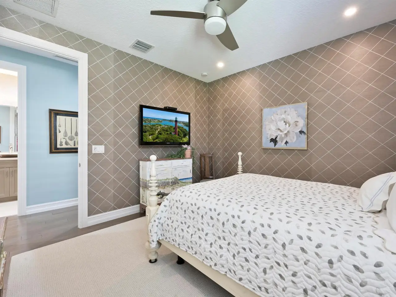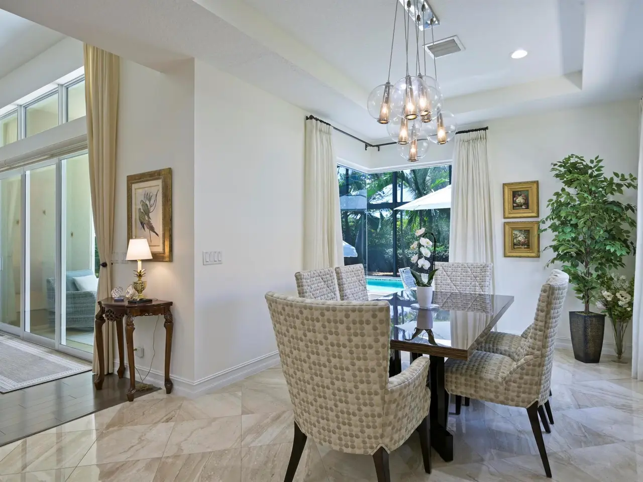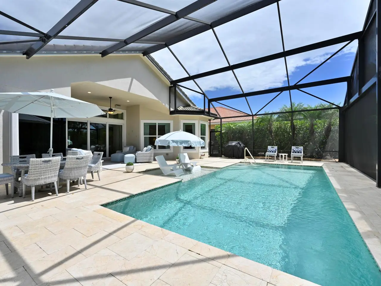 Welcome to this beautifully updated single-family residence in the desirable Jupiter Country Club. This elegant, single-story home boasts 3 bedrooms plus an office, an open floor plan with high ceilings, rich wood flooring throughout and marble floors in the foyer and kitchen.The gourmet kitchen is a chef's dream and well appointed with a Sub-Zero built-in refrigerator,a beverage cooler, Jenn Air gas stove cook top and oven. The Silestone countertops and custom cabinetry offers both style and functionality creating a seamless flow of storage solutions.Enjoy Florida living at its finest in your private backyard oasis which backs up to a serene preserve. The salt-chlorinated, heated pool with sun deck is fully screened, offering year-round enjoyment and total privacy.