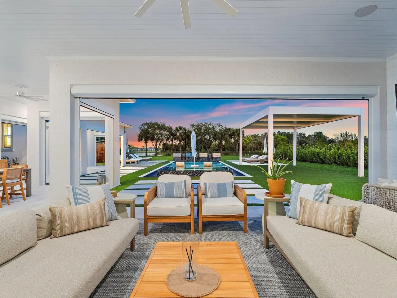• Custom pergola with louvered ceiling