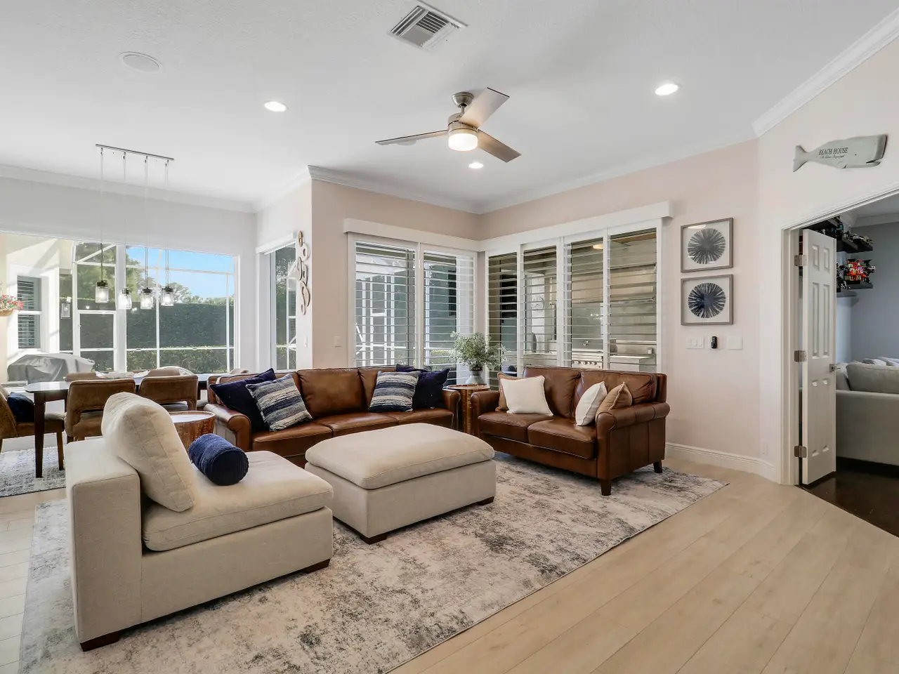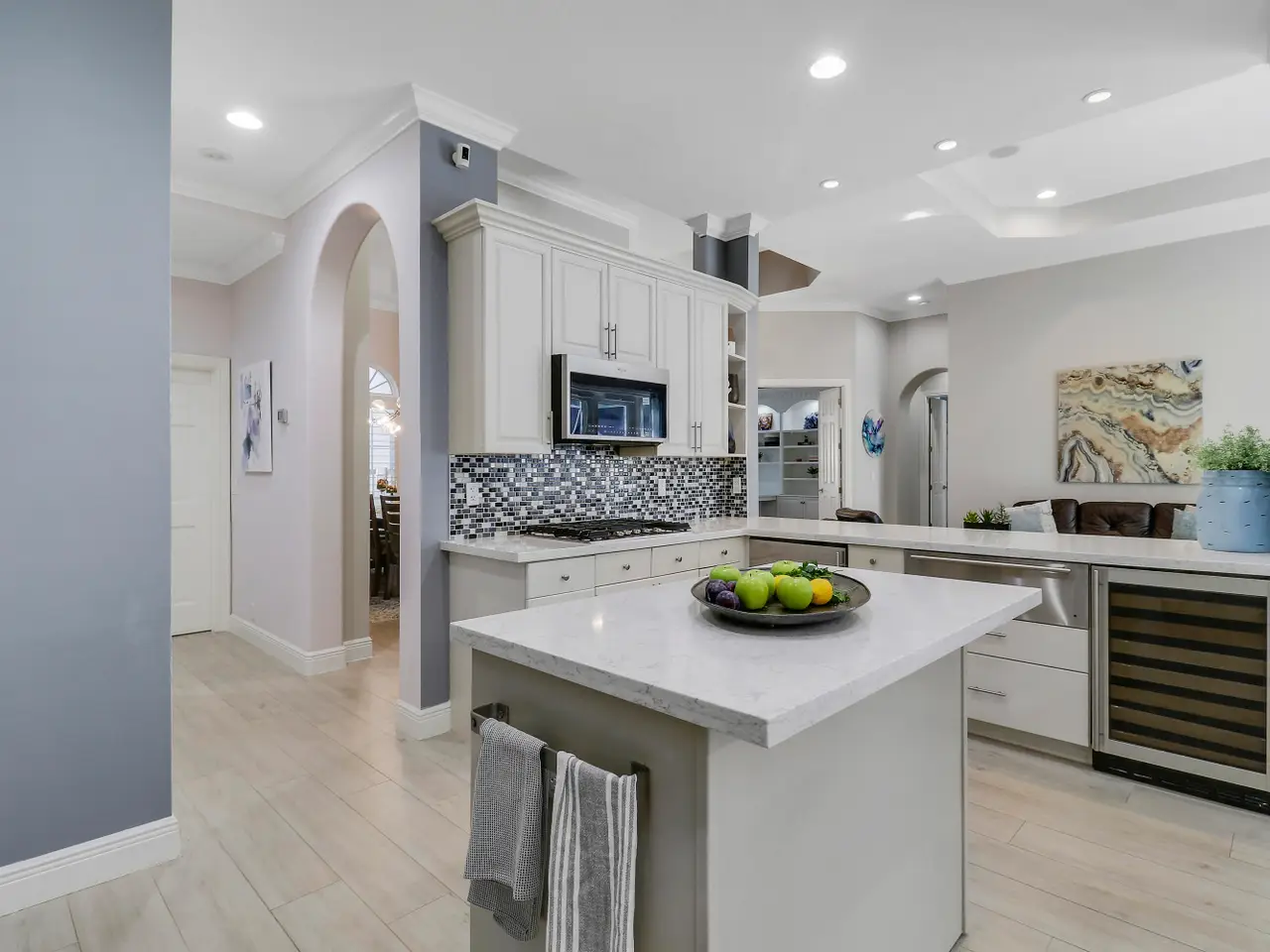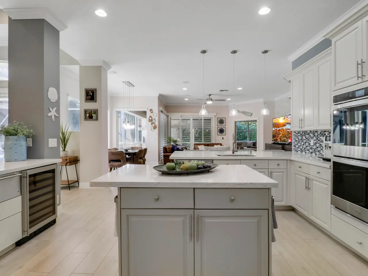 Luxury Living with Space to Spare - 6BR/6BA Pool Home with Office & Den. Step through custom designer entry doors into a home that exudes elegance and comfort. This expansive residence offers 6 bedrooms and 6 bathrooms in a thoughtfully designed 4-way split floor plan, complemented by a spacious den, dedicated office, formal living room, and inviting family room. Natural light fills the interior, highlighting the quality craftsmanship throughout. The chef's kitchen is a true centerpiece, featuring a gas cooktop, double ovens, a warming drawer, a beverage center and generous quartz countertops -- ideal for entertaining. The primary suite is a private retreat, complete with a luxurious bathroom and direct access to the newly resurfaced patio. Enjoy the sparkling pool, ...