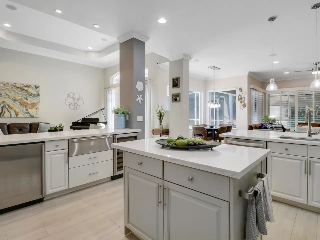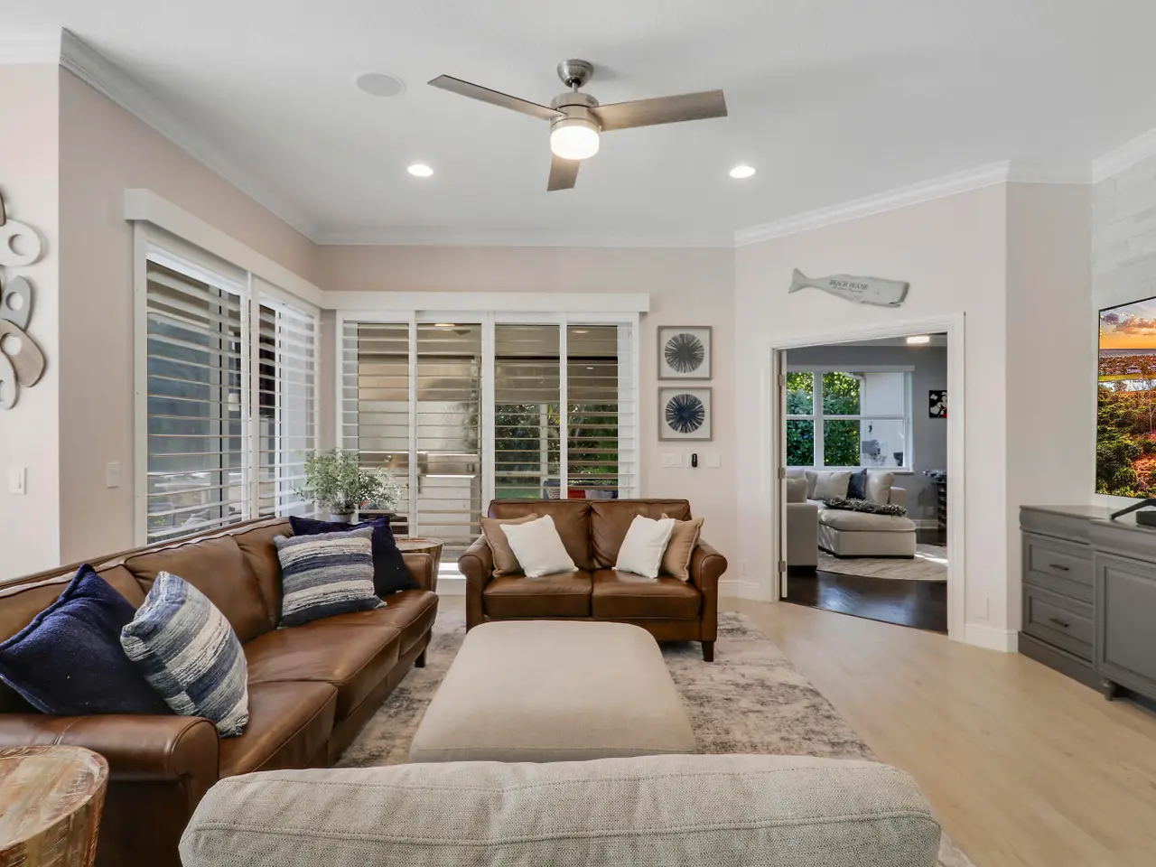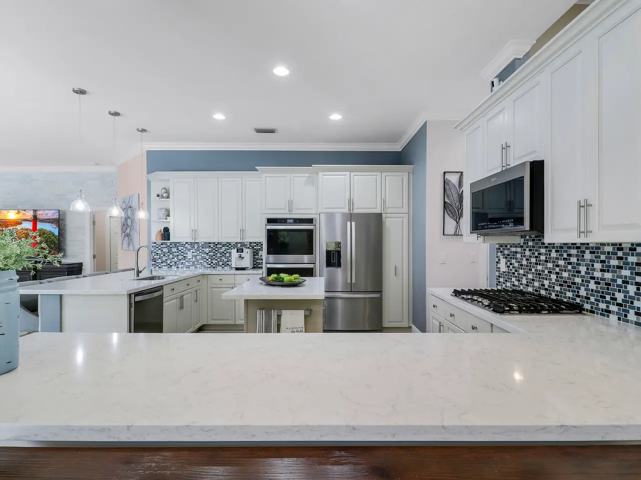 Luxury Living with Space to Spare - 6BR/6BA Pool Home with Office & Den. Step through custom designer entry doors into a home that exudes elegance and comfort. This expansive residence offers 6 bedrooms and 6 bathrooms in a thoughtfully designed 4-way split floor plan, complemented by a spacious den, dedicated office, formal living room, and inviting family room. Natural light fills the interior, highlighting the quality craftsmanship throughout. The chef's kitchen is a true centerpiece, featuring a gas cooktop, double ovens, a warming drawer, a beverage center and generous quartz countertops -- ideal for entertaining. The primary suite is a private retreat, complete with a luxurious bathroom and direct access to the newly resurfaced patio. Enjoy the sparkling pool, ...