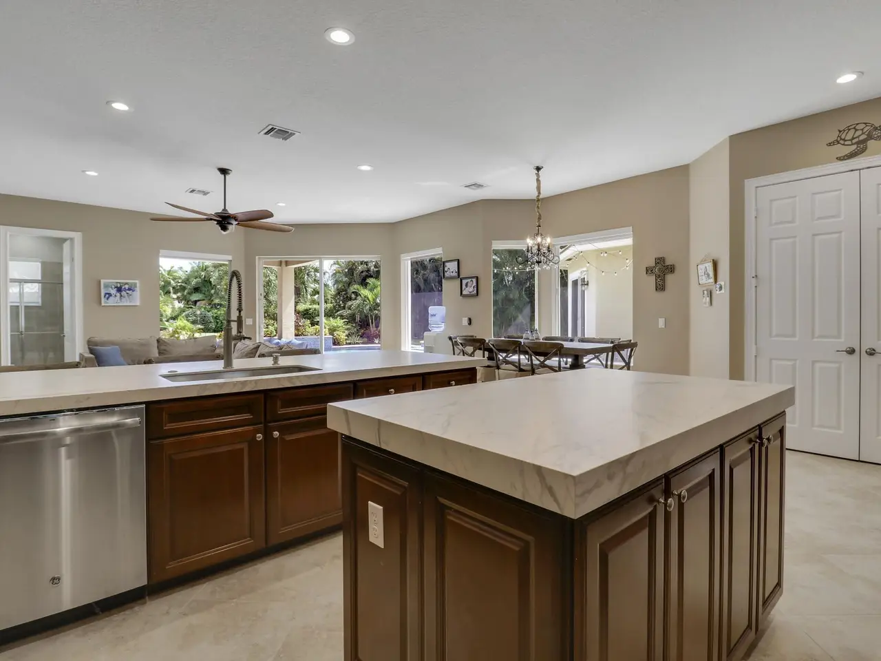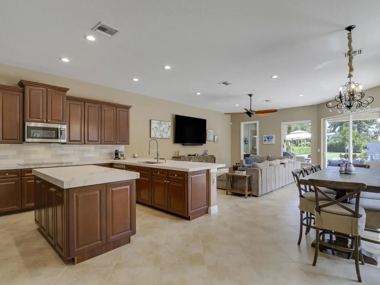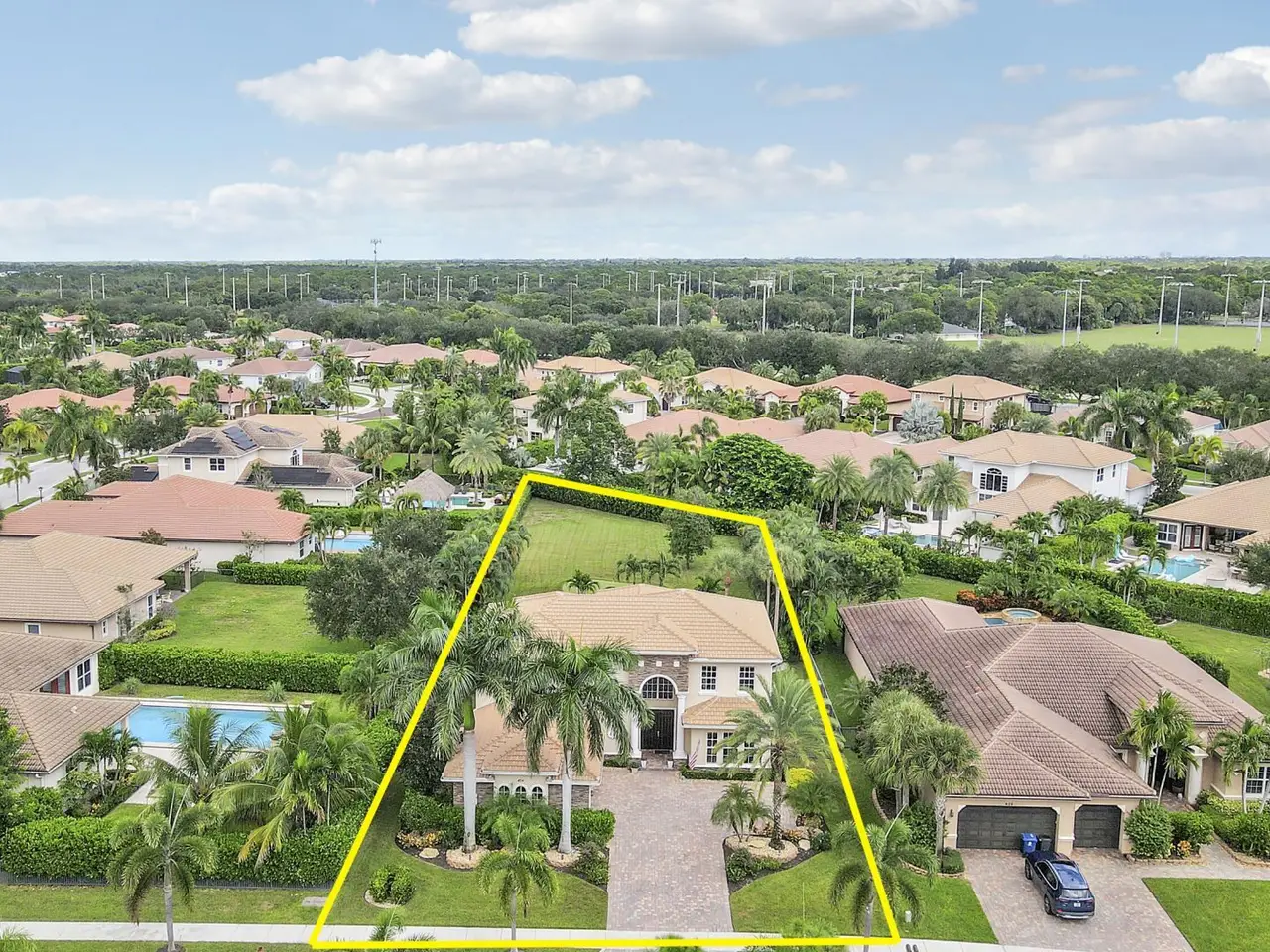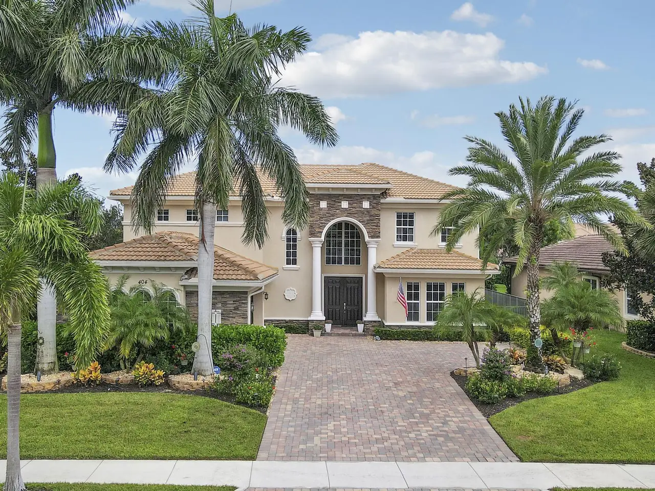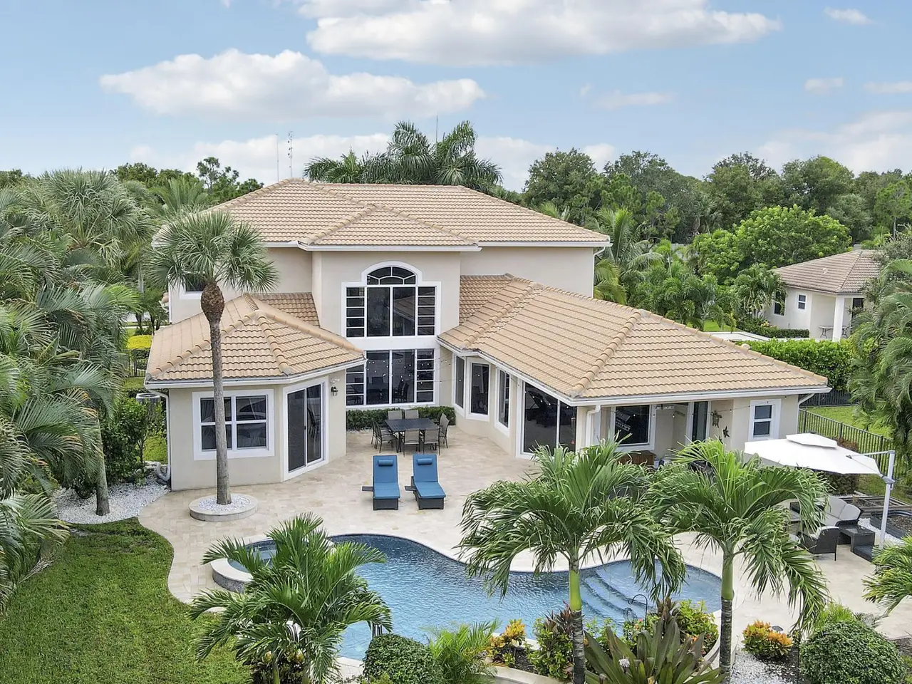 Step into luxury and comfort in this upgraded 6-bedroom, 5-bathroom Stonegate model. Located in one of the areas most sought-after gated communities, known for its exceptional amenities and top-rated school district. Situated on a generous 1/2 acre lot, this home is the perfect blend of luxury, comfort, and functionality.Discover the thoughtfully designed floor plan featuring a spacious first-floor primary suite for ultimate convenience and privacy. The interior boasts impact-rated windows throughout, ensuring peace of mind and energy efficiency. The gourmet kitchen and first-floor bathrooms have been tastefully updated with stunning new quartz countertops, adding a sleek and modern touch. The closets in the primary bedroom have all been built out to accommodate all storage needs. Outdoors, you'll find your own private oasis complete with a heated pool, custom putting green, and beautifully redesigned landscaping enhanced by professional lighting. Whether you're hosting guests or enjoying a quiet evening under the stars, the expansive backyard offers endless possibilities. Additional highlights include a newly finished epoxy garage floor, perfect for car enthusiasts or extra storage. This move-in ready home checks every box for luxury. Rialto is one of Jupiter's most desirable communities, known for its atmosphere, A- rated schools, and top tier amenities including a clubhouse with fitness center, community pool, splash park, tennis courts, playground and more. This move -in ready masterpiece is a rare opportunity to enjoy luxury living in the heart of Jupiter.