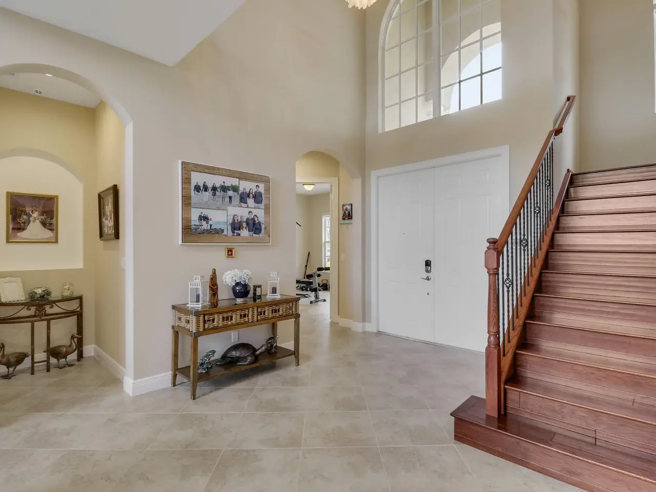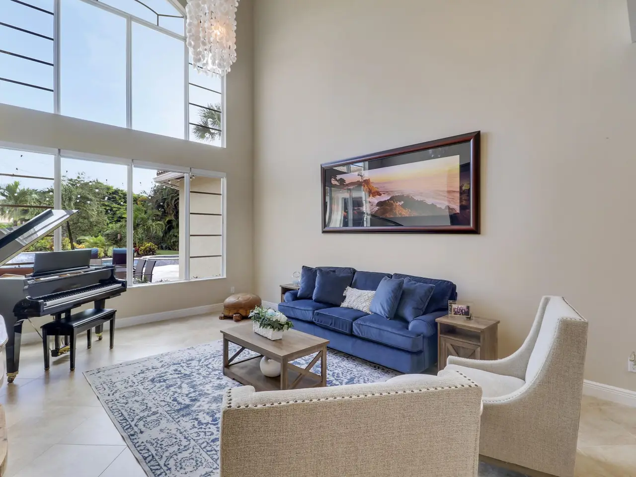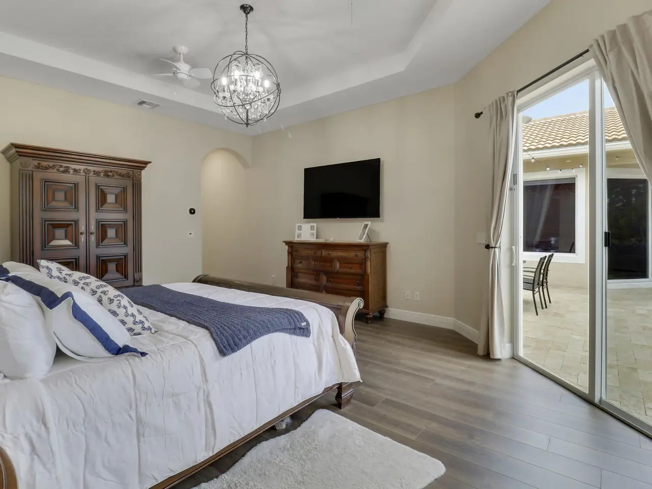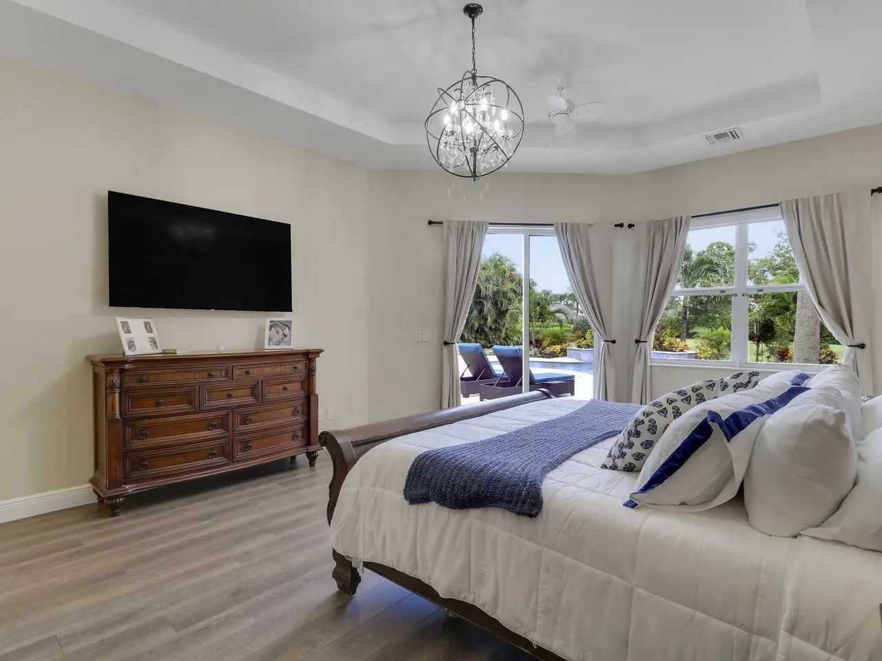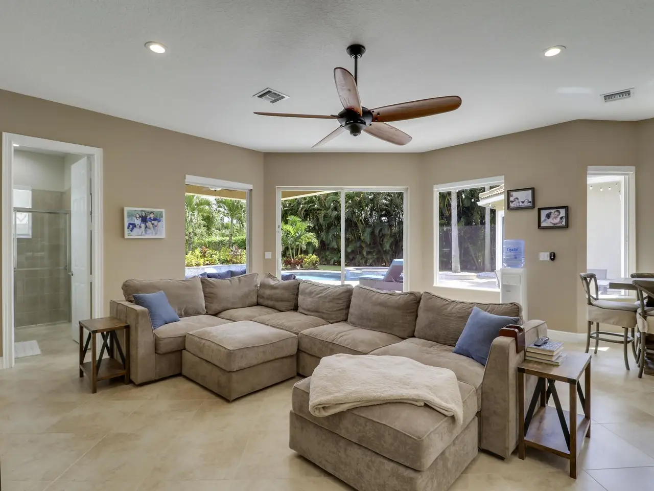 Step into luxury and comfort in this upgraded 6-bedroom, 5-bathroom Stonegate model. Located in one of the areas most sought-after gated communities, known for its exceptional amenities and top-rated school district. Situated on a generous 1/2 acre lot, this home is the perfect blend of luxury, comfort, and functionality.Discover the thoughtfully designed floor plan featuring a spacious first-floor primary suite for ultimate convenience and privacy. The interior boasts impact-rated windows throughout, ensuring peace of mind and energy efficiency. The gourmet kitchen and first-floor bathrooms have been tastefully updated with stunning new quartz countertops, adding a sleek and modern touch. The closets in the primary bedroom have all been built out to accommodate all storage needs. Outdoors, you'll find your own private oasis complete with a heated pool, custom putting green, and beautifully redesigned landscaping enhanced by professional lighting. Whether you're hosting guests or enjoying a quiet evening under the stars, the expansive backyard offers endless possibilities. Additional highlights include a newly finished epoxy garage floor, perfect for car enthusiasts or extra storage. This move-in ready home checks every box for luxury. Rialto is one of Jupiter's most desirable communities, known for its atmosphere, A- rated schools, and top tier amenities including a clubhouse with fitness center, community pool, splash park, tennis courts, playground and more. This move -in ready masterpiece is a rare opportunity to enjoy luxury living in the heart of Jupiter.