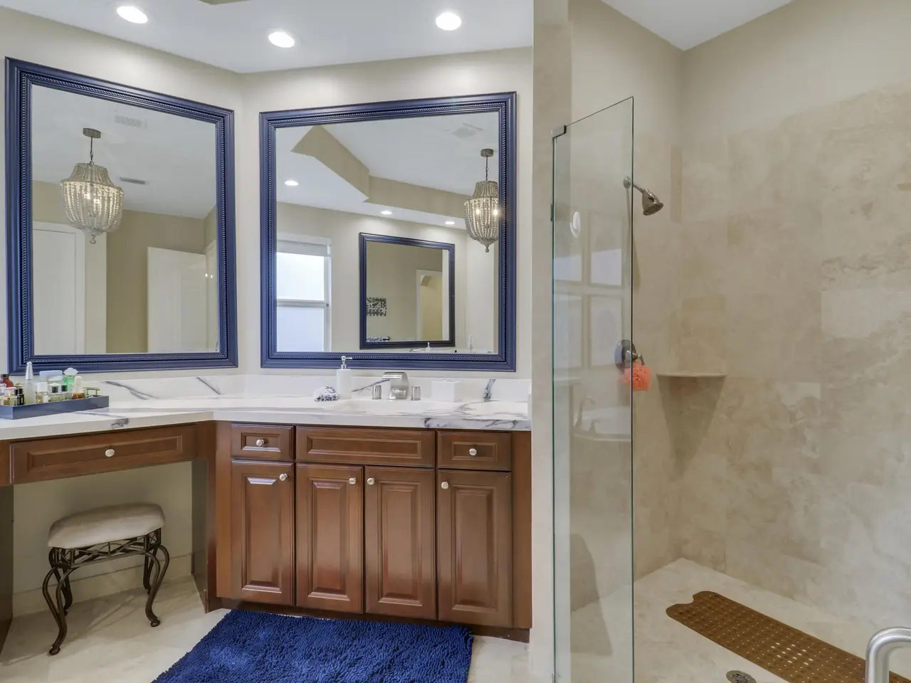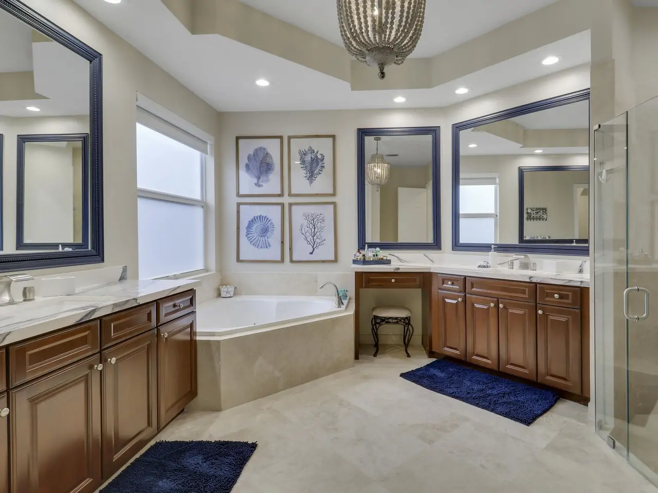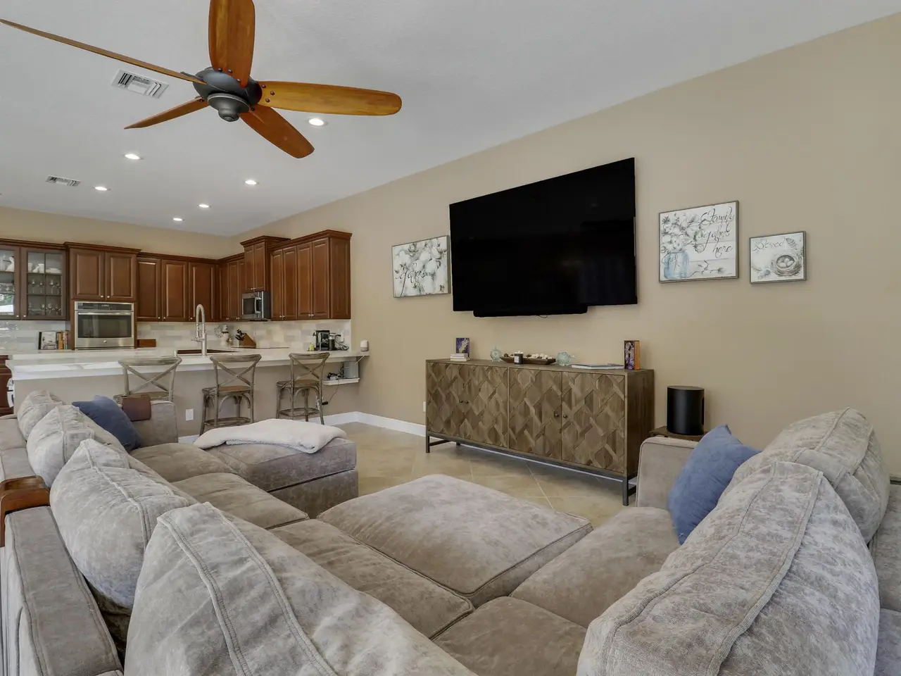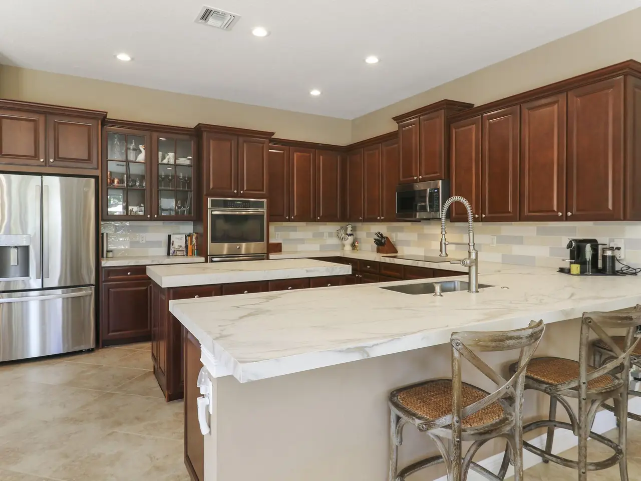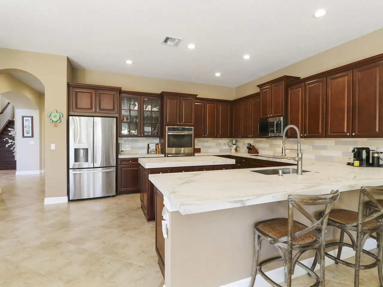 Step into luxury and comfort in this upgraded 6-bedroom, 5-bathroom Stonegate model. Located in one of the areas most sought-after gated communities, known for its exceptional amenities and top-rated school district. Situated on a generous 1/2 acre lot, this home is the perfect blend of luxury, comfort, and functionality.Discover the thoughtfully designed floor plan featuring a spacious first-floor primary suite for ultimate convenience and privacy. The interior boasts impact-rated windows throughout, ensuring peace of mind and energy efficiency. The gourmet kitchen and first-floor bathrooms have been tastefully updated with stunning new quartz countertops, adding a sleek and modern touch. The closets in the primary bedroom have all been built out to accommodate all storage needs. Outdoors, you'll find your own private oasis complete with a heated pool, custom putting green, and beautifully redesigned landscaping enhanced by professional lighting. Whether you're hosting guests or enjoying a quiet evening under the stars, the expansive backyard offers endless possibilities. Additional highlights include a newly finished epoxy garage floor, perfect for car enthusiasts or extra storage. This move-in ready home checks every box for luxury. Rialto is one of Jupiter's most desirable communities, known for its atmosphere, A- rated schools, and top tier amenities including a clubhouse with fitness center, community pool, splash park, tennis courts, playground and more. This move -in ready masterpiece is a rare opportunity to enjoy luxury living in the heart of Jupiter.