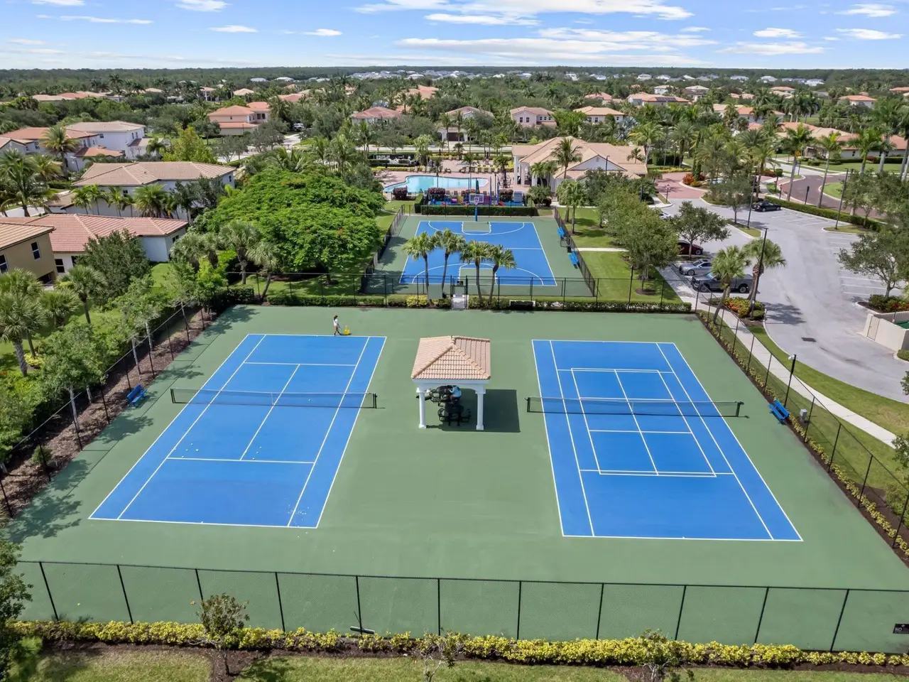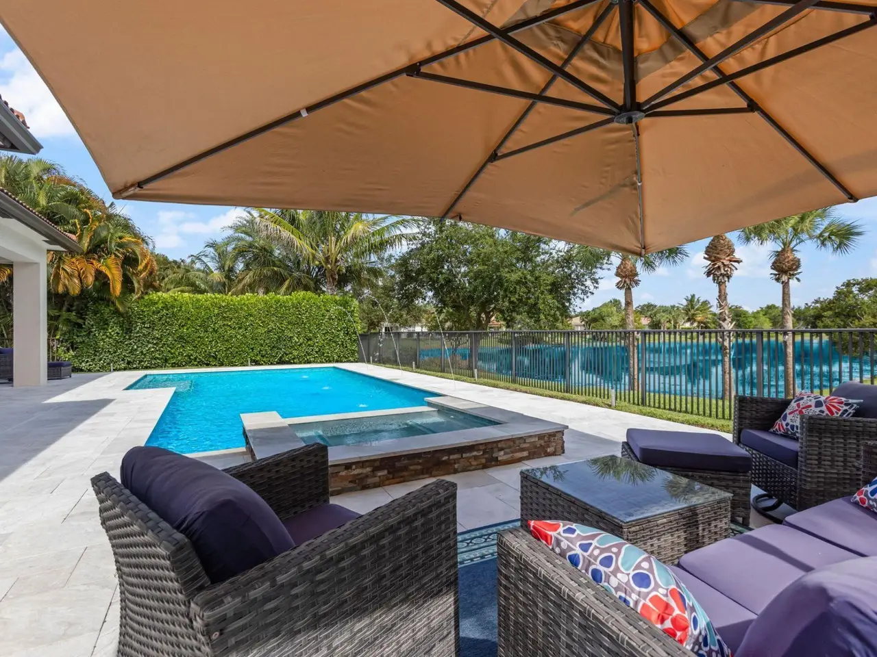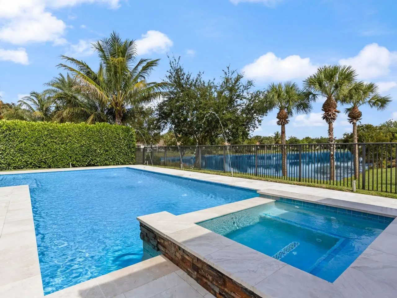 Located in the highly desirable gated community of Rialto, this beautifully upgraded 4 bedroom, 2.5 bath home offers a perfect blend of comfort, style, and functionality - all overlooking a serene water view!The backyard is a true retreat, featuring a 32 x 14 saltwater, heated pool and 7 x 8 spa with waterfall spillover, sun shelf, deck jets, deep-end bench seating, and jets on both top and bottom. Built in 2022 by CSE Paving of Florida, Inc., the pool area is finished with elegant sandblasted marble decking in a French pattern and includes Aqualink smartphone automation. Inside, youll find Level 5 Italian glazed porcelain tile flooring throughout in a 9 x 36 staggered wood plank design. The primary bathroom features European-inspired tile work, with 12 x 24 Sardinia Ivory porcelain tile and glass mosaic accents. The home layout has been thoughtfully opened up to maximize light and flow, and includes custom barn doors in both the living and laundry areas with reinforced framing. Additional features include: Granite kitchen countertops, Benjamin Moore designer paint palette, Recessed lighting throughout, Impact-rated contemporary glass front door, windows and sliders, Carrier AC (2022) with Ecobee Smart Thermostat Pro & remote sensor, Halo-LED Whole Home Air Purifier in air handler & UV light, Water heater (2024). The attached two-car garage includes an epoxy-coated floor, utility sink, refrigerator, and bolted metal shelving, plus metal staircase access to the attic for extra storage. Exterior updates include professional cleaning of the roof and paver driveway (2024), exterior Sherwin Williams painting (approx. 2021), and recently added gutters. Rialto is one of Jupiters most sought-after gated communities, known for its resort-style amenities. Residents enjoy a grand clubhouse with fitness center, tennis and basketball courts, walking trails, and a resort-style pool... just minutes from Jupiters beaches, dining, and golf. This meticulously maintained home combines lifestyle, luxury, and location - offering a rare opportunity in the heart of Jupiter.