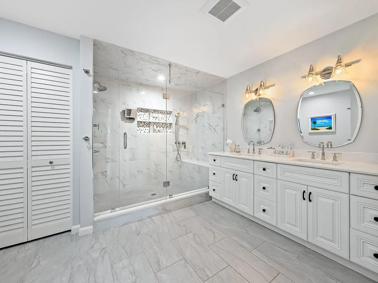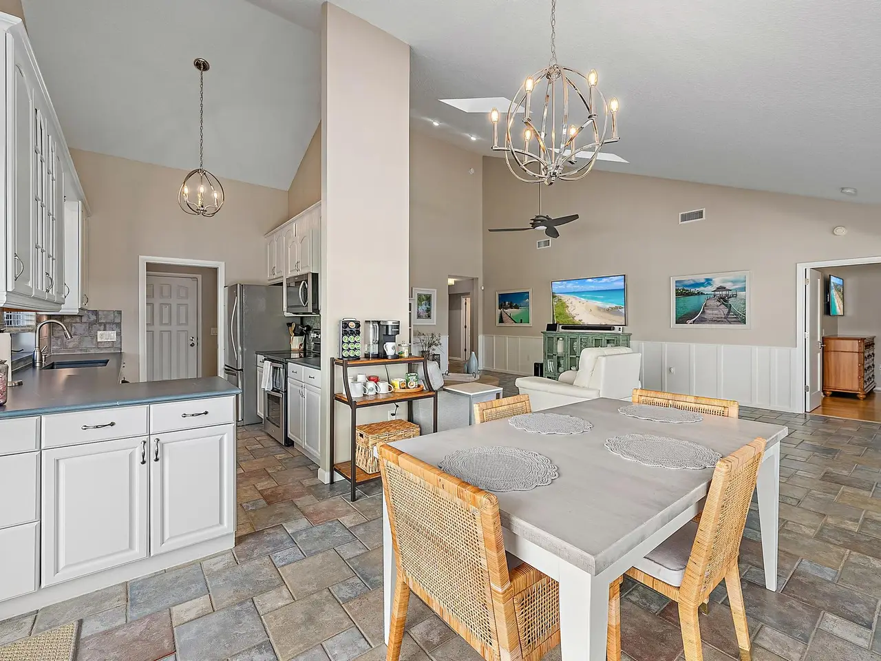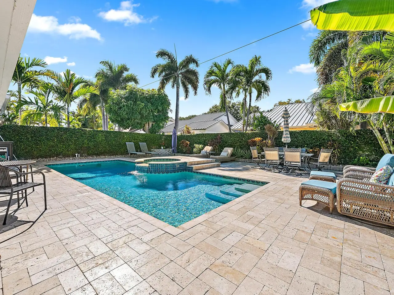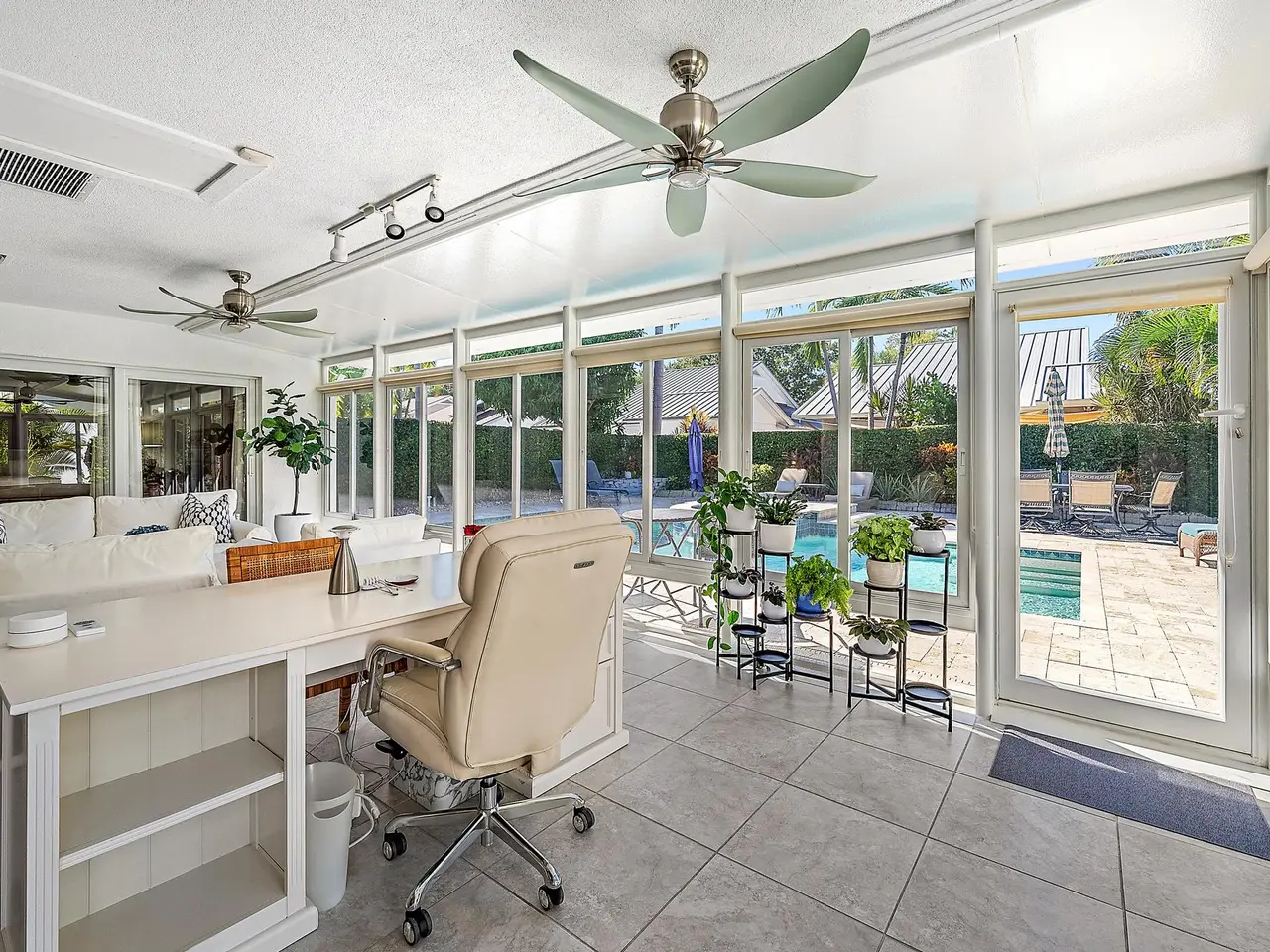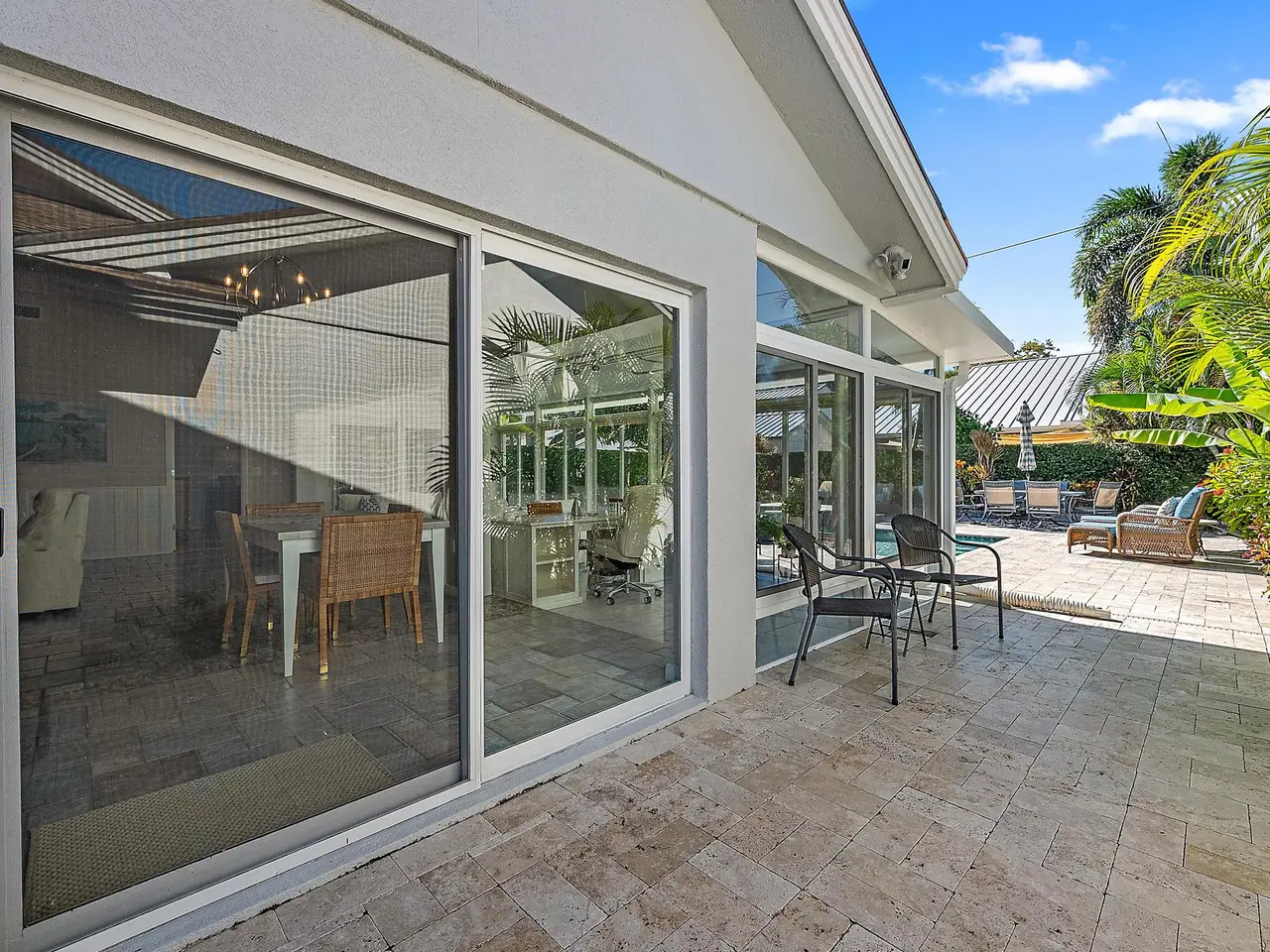 Nestled in the desirable coastal community of The Ridge at the Bluffs, this beautifully updated three-bedroom, two-bath home combines relaxed Florida living with timeless comfort and style. The light-filled, open floor plan showcases vaulted ceilings and spacious living areas that flow seamlessly to the gorgeous pool and patio area, creating an effortless indoor-outdoor lifestyle. The kitchen features stainless steel appliances, white cabinetry, and a breakfast area overlooking the pool - perfect for entertaining. The adjoining great room offers volume ceilings, a neutral palette, and expansive space that opens to the sunroom and outdoor living area. A versatile Florida room, framed in glass, serves as a bright second lounge or home office, blending indoor comfort with poolside views. The primary suite provides a tranquil retreat with wood flooring, generous closet space, and a fully remodeled spa bath featuring dual vanities, marble-style tile, and a frameless glass shower. Guest accommodations include two inviting bedrooms, one a loft-style suite with soaring ceilings, ideal for family, guests or a work-from-home setup. Additional highlights include a newly renovated guest bath, a dedicated laundry room with custom cabinetry, and an attached two-car garage. Step outside to enjoy the heated saltwater pool and spa, surrounded by tropical landscaping and travertine decking a private oasis designed for year-round enjoyment. Residents of The Ridge at the Bluffs enjoy resort-style amenities including a heated community pool, tennis and pickleball courts, basketball courts, and a clubhouse all within close proximity to the home. Ideally located just minutes from Juno Beach, Pelican Lake, premier golf clubs, and fine dining, this home embodies the very best of coastal living in one of Jupiter's most sought-after enclaves.