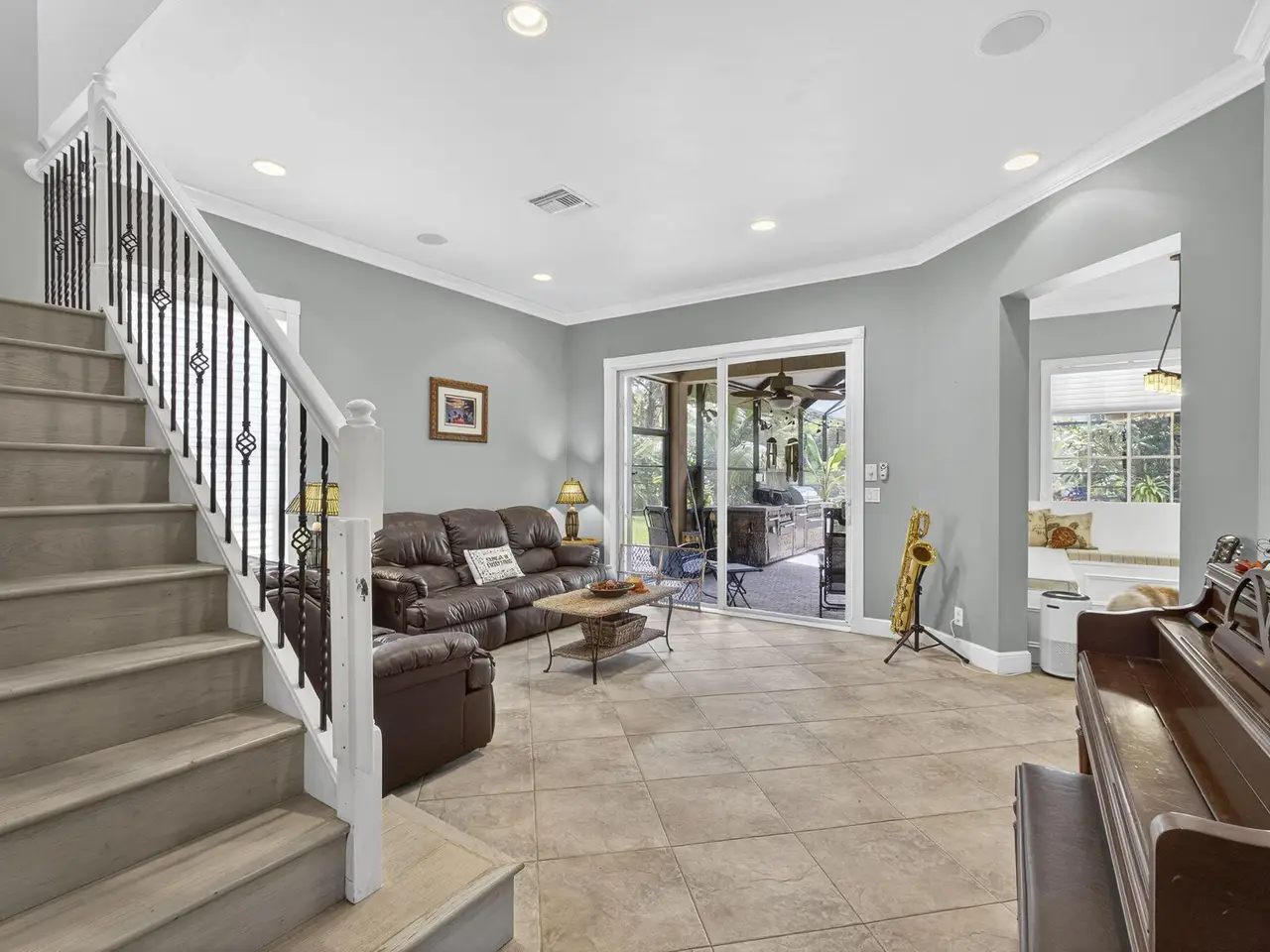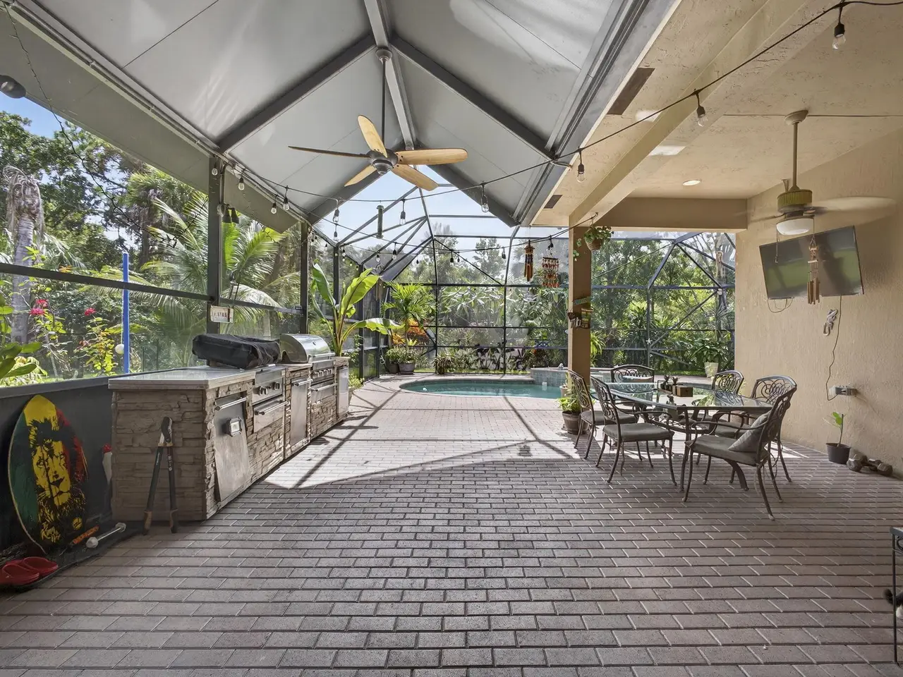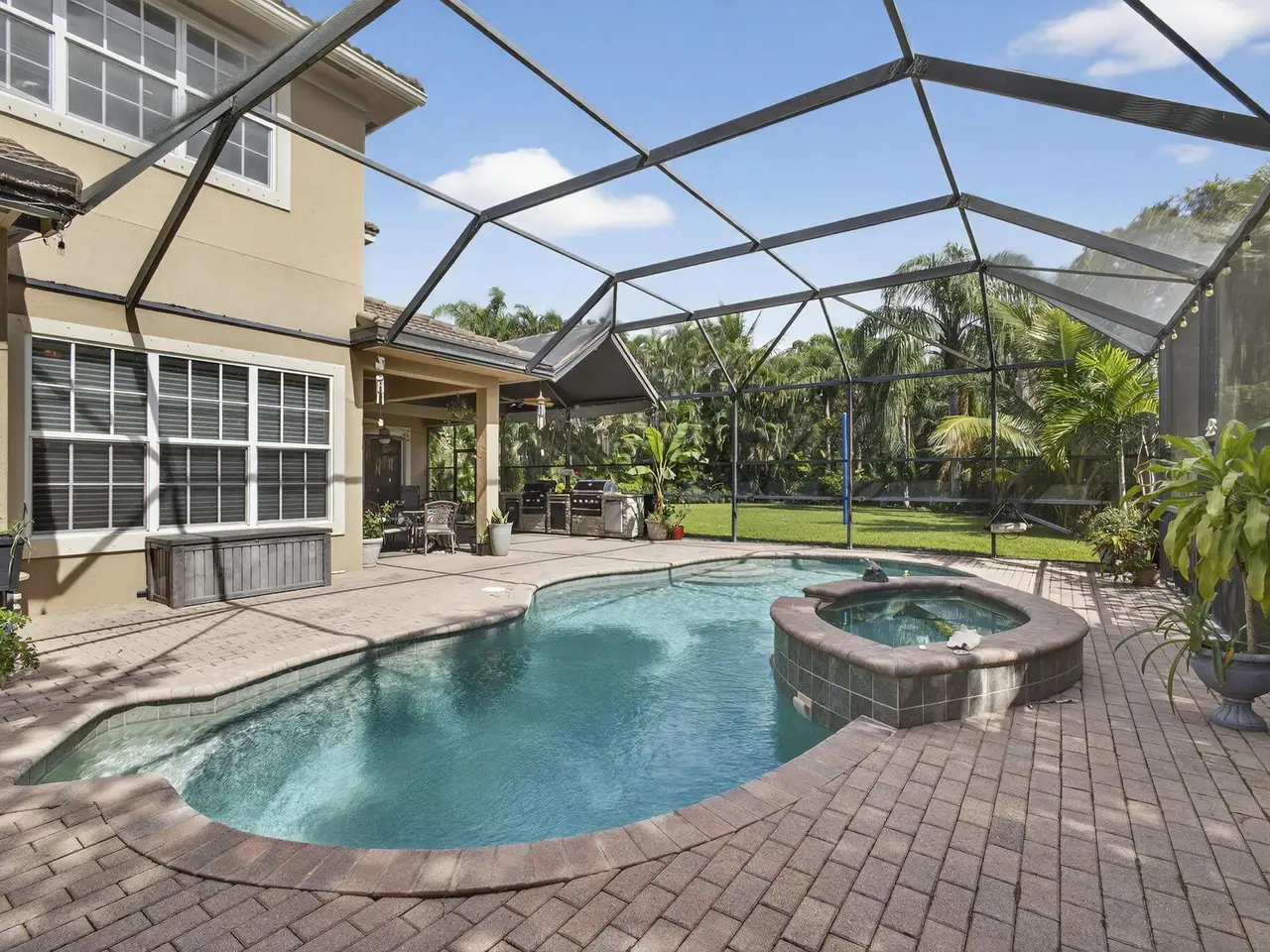 Spacious 4 Bedroom 4 Bath pool home, fully fenced 3,122 Living Sqft, largest pie-shaped preserve sheltered lot on the only cul-de-sac in the highly desirable, well located community of Paseos. No thru street, two flowering treed and palm landscaped islands in cul-de-sac. Home features,impact glass and doors, wired for whole house generator, fully screened in pool and patio with ample space for shaded seating, summer kitchen, very large private yard split for each side access, covered Front Porch, Stainless Steel Appliances w/ Double Ovens, Walk In Pantry, 1st floor guest bedroom adjacent to bath, cabana bath for guests with direct pool access. Nearby A rated schools. Minutes from shopping, medical, beach, airport, access to Turnpike, I95