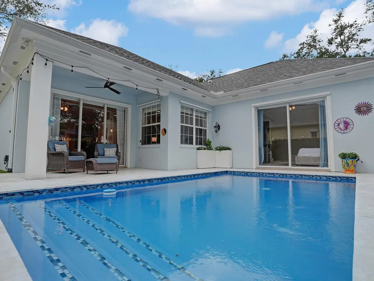 Welcome to this stunning 3 bedroom, 2 bath pool home with a den/office, ideally situated on a corner lot in the sought-after community of NewHaven at Abacoa. This residence has been beautifully updated from top to bottom and offers modern finishes with ti