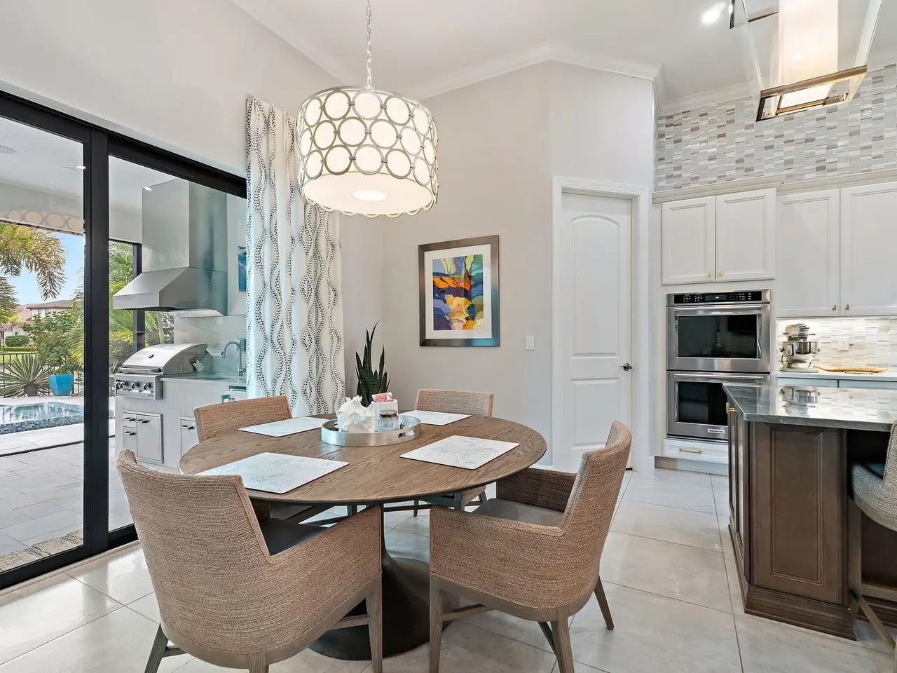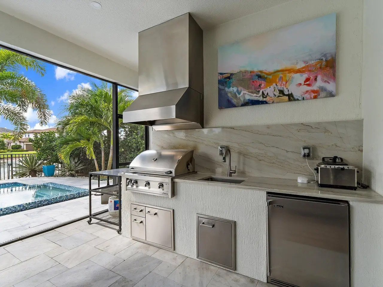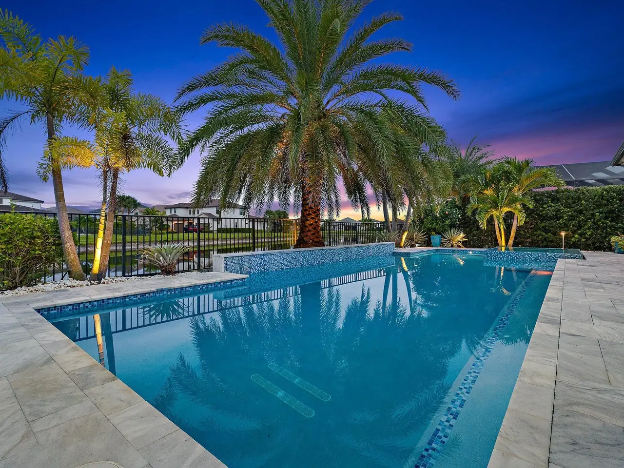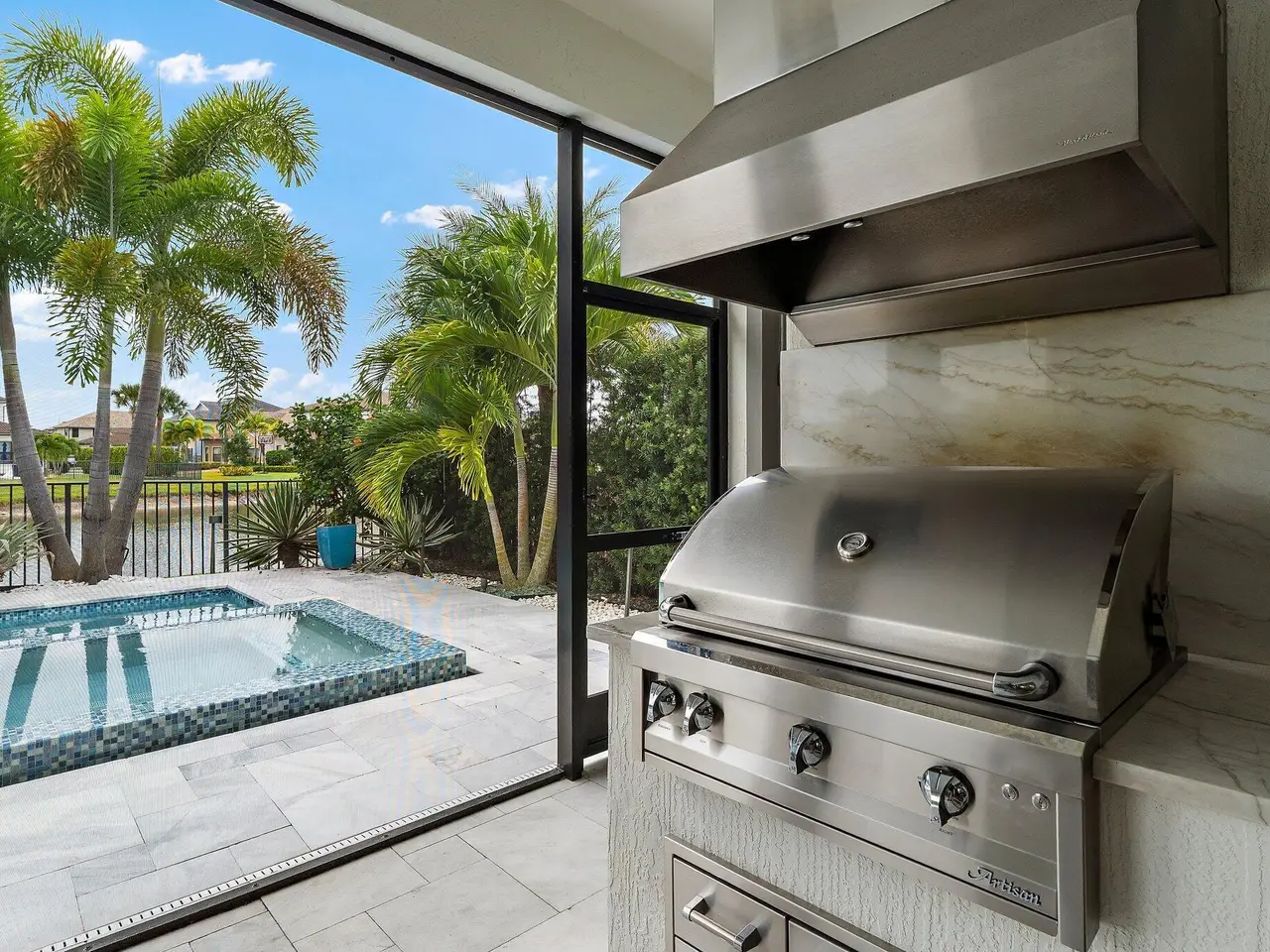 This 2-Story Stonewater model home has all the bells and whistles desired by the most sophisticated buyers. Mahogany and beveled glass, impact double entry doors; crystal chandeliers in the foyer, dining room and great room; Sea Pearl quartzite countertop at kitchen island; custom European wallcoverings in the great room, den, and primary suite; and full height marble primary bath wall with freestanding tub and custom plumbing fixtures are just a few examples of next level interior finishes. The outdoor spaces are amazing too with a custom glass tile, saltwater pool with infinity edge hot tub; textured marble sundeck; summer kitchen with Artisan gas grill, stainless full-height hood, kitchen sink, and Perlick beverage cooler. Oversized lush landsacping and LED landscape and pathway lighting puts a bow on the total package. Best of all, Sonoma Isles offers outstanding amenities like a state-of-the art fitness center; community lounge with kitchen; meeting spaces; lap pool with spa and firepit; playground; tennis court and pickleball court; onsite manager; and 24/7 security.