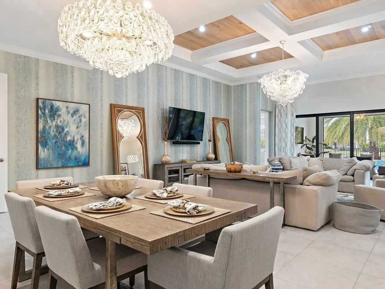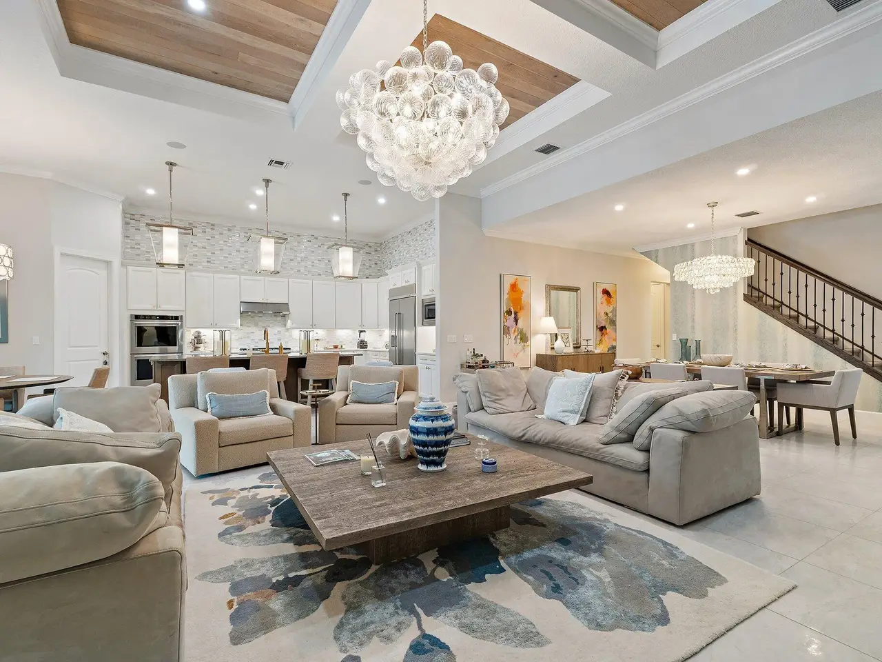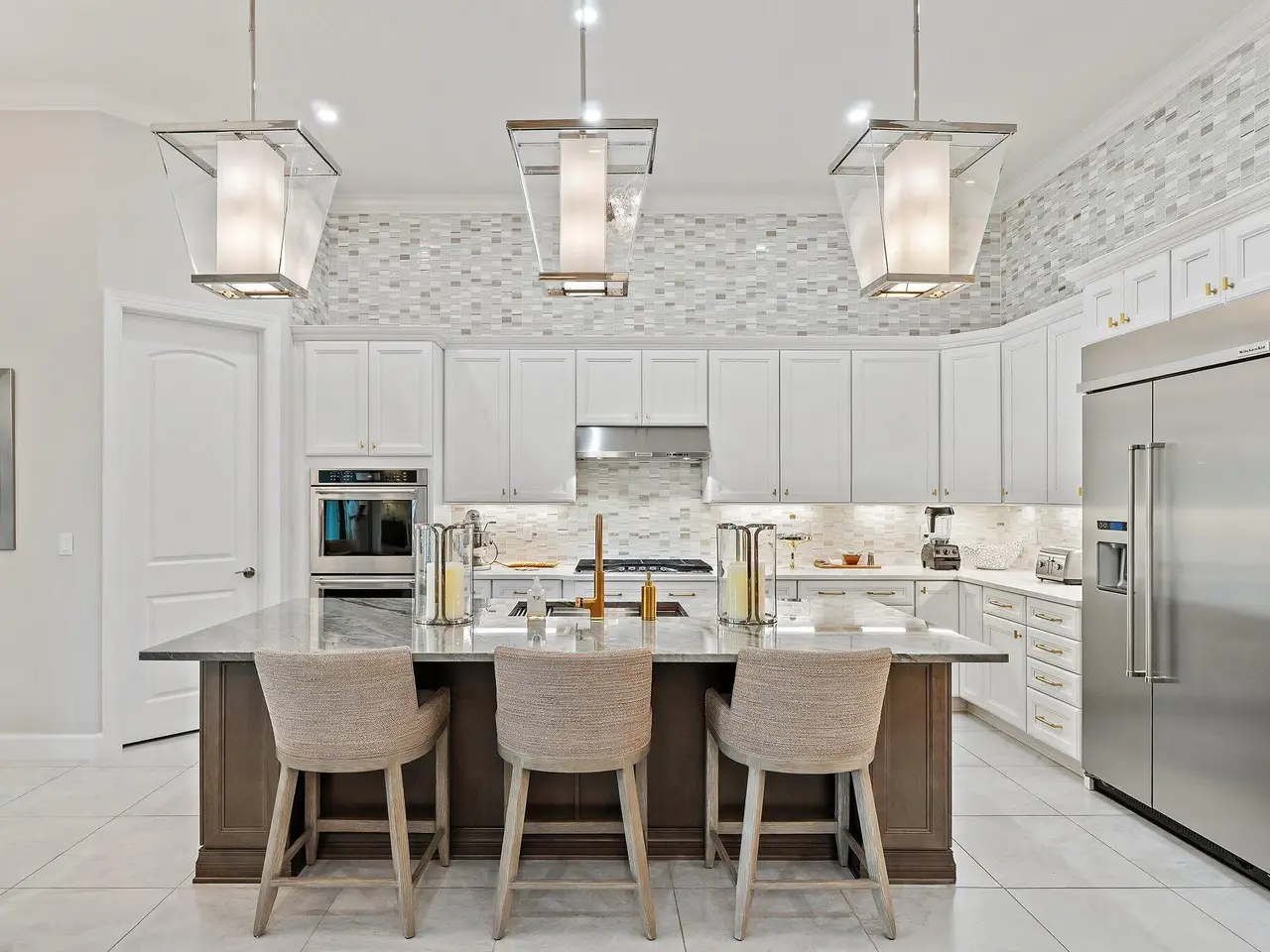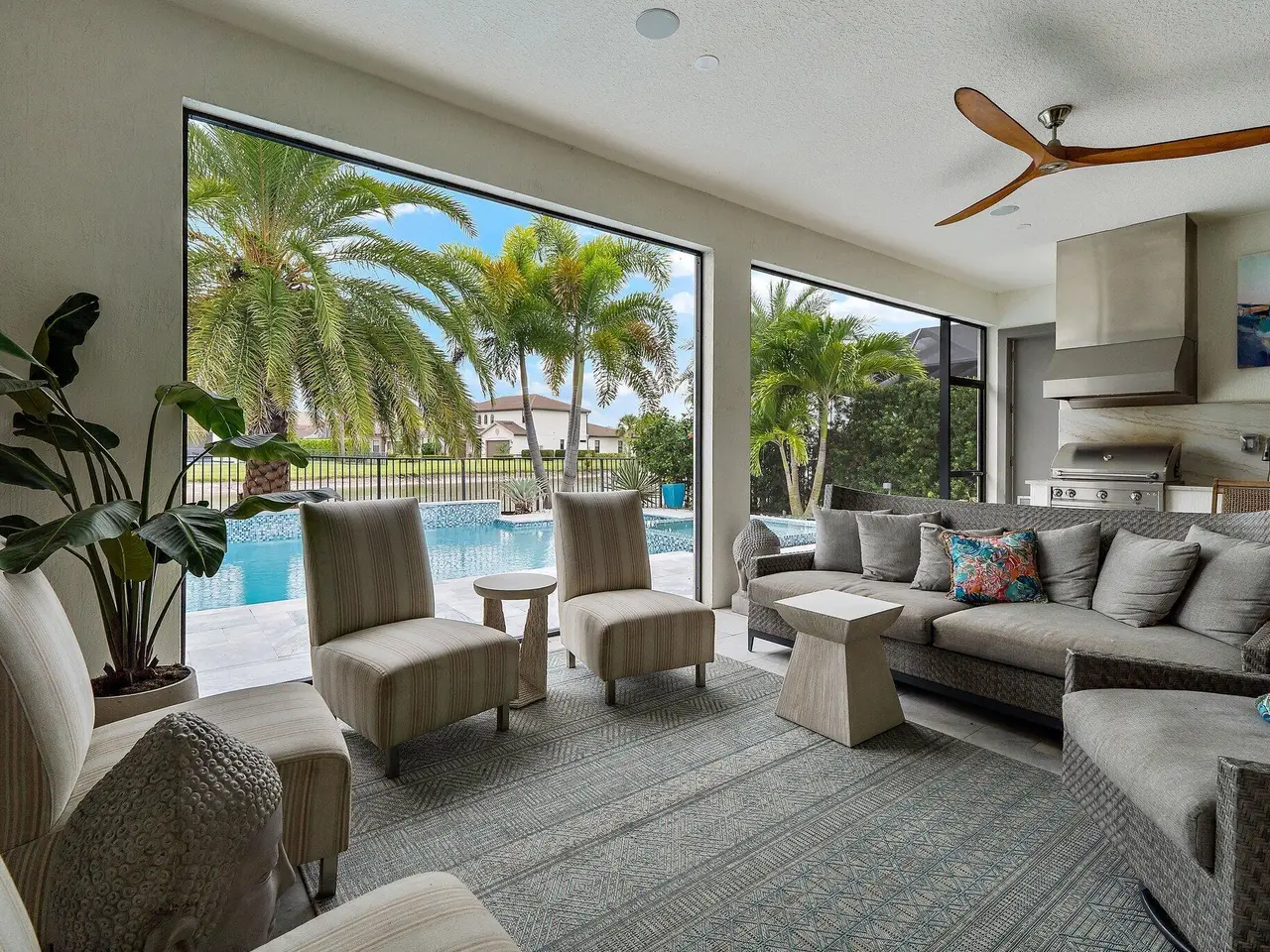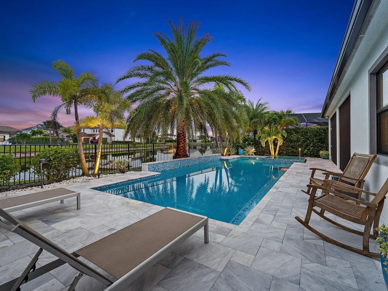 This 2-Story Stonewater model home has all the bells and whistles desired by the most sophisticated buyers. Mahogany and beveled glass, impact double entry doors; crystal chandeliers in the foyer, dining room and great room; Sea Pearl quartzite countertop at kitchen island; custom European wallcoverings in the great room, den, and primary suite; and full height marble primary bath wall with freestanding tub and custom plumbing fixtures are just a few examples of next level interior finishes. The outdoor spaces are amazing too with a custom glass tile, saltwater pool with infinity edge hot tub; textured marble sundeck; summer kitchen with Artisan gas grill, stainless full-height hood, kitchen sink, and Perlick beverage cooler. Oversized lush landsacping and LED landscape and pathway lighting puts a bow on the total package. Best of all, Sonoma Isles offers outstanding amenities like a state-of-the art fitness center; community lounge with kitchen; meeting spaces; lap pool with spa and firepit; playground; tennis court and pickleball court; onsite manager; and 24/7 security.