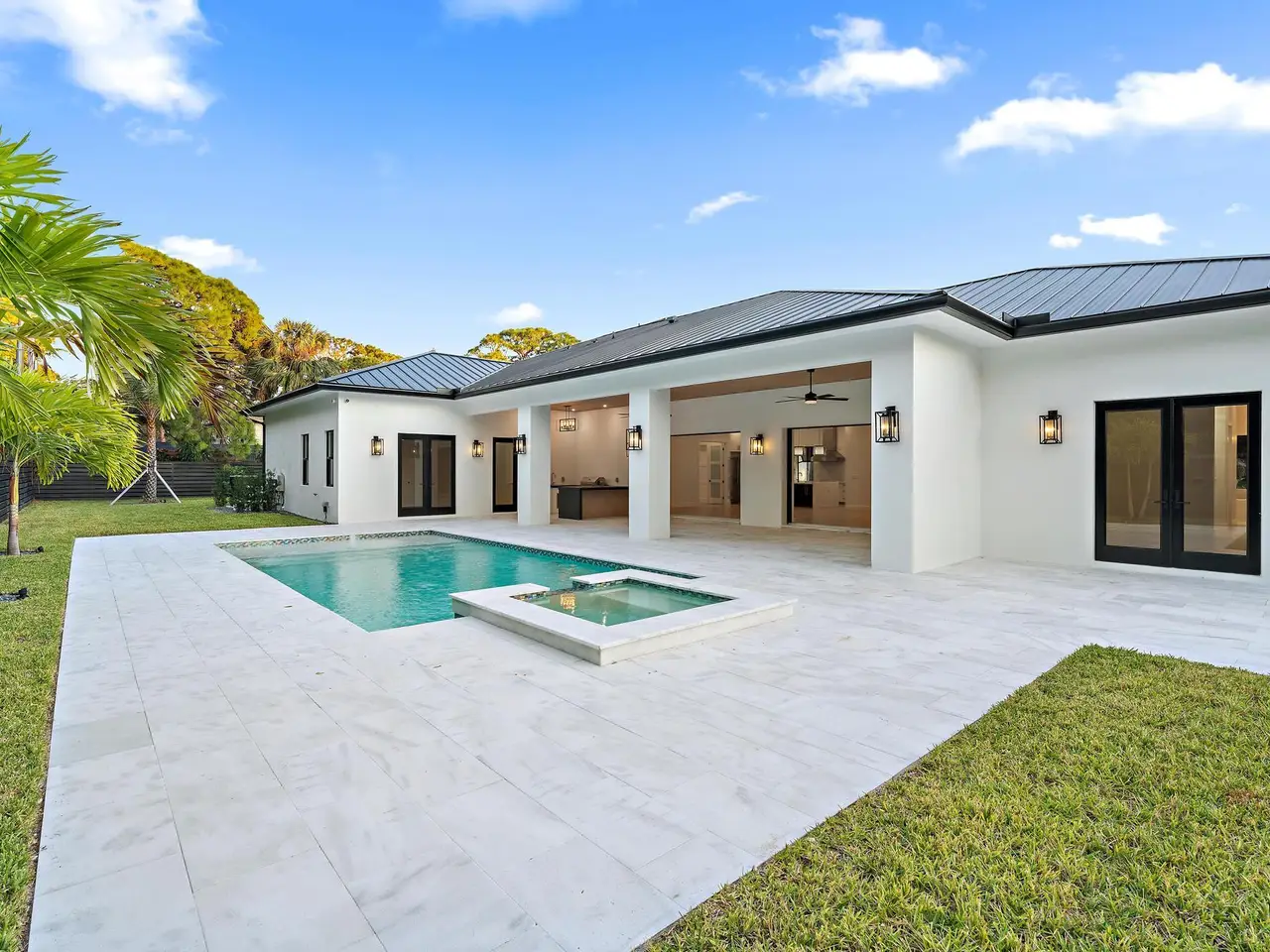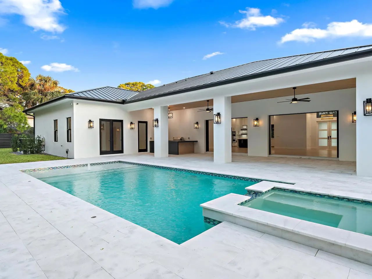 Experience modern luxury in this brand-new, thoughtfully designed five bedroom, 5.5 bathroom masterpiece, complete with a saltwater POOL, hot tub, and private casita. This stunning home features an open-concept floor plan that effortlessly blends indoor and outdoor living, basking in natural light by day and glowing with sophistication by night. From the moment you step inside, you'll fall in love with its impeccable design and inviting ambiance. This new construction property combines style and functionality. With impact windows, impact doors, and a durable metal roof, this home offers both timeless elegance and superior protection. Other features include a spacious three-car garage, laundry room, an under-stairs dog kennel, and a dedicated homework station -- all designed for a modern lifestyle.