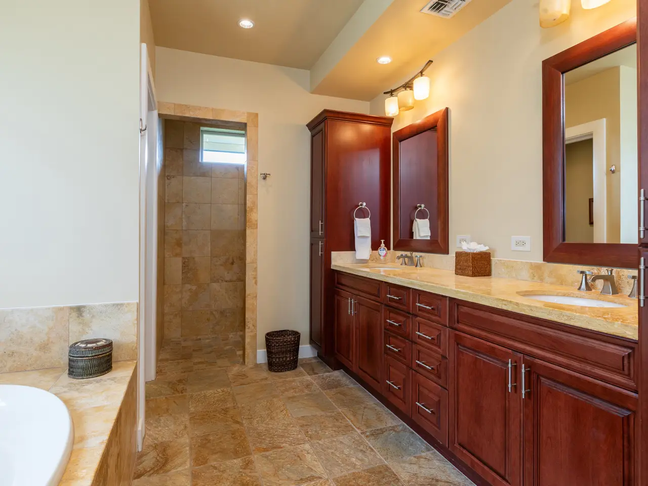 Wai'ula'ula A201 is positioned as arguably the best-located unit within the community. Overlooking the 15th fairway of the Hapuna Golf Course, this "front row" ridge unit boasts unobstructed ocean and coastline views, along with stunning year-round sunset vistas. This is the first time the unit has ever been offered for resale. Additionally, the "A" building of Wa'ula'ula served as the model building during the initial sales phase by the developer due to its exceptional location and expansive views.Wai'ula'ula A201 offers a seamless transition as it is being sold fully furnished, including beautiful artwork (some pieces by local artists) and is move-in ready. This 3-bedroom, 3-bathroom unit boasts two master bedrooms overlooking stunning views. With 2,111 square feet of air-conditioned living space and a generous 253-square-foot covered lanai, it also includes a spacious one-car garage with storage and an additional uncovered, undesignated parking stall.The unit has an STVR with some advanced bookings already in place. Features of this premier upstairs unit include natural stone floors in the kitchen, bathrooms and laundry, recently installed water resistant plank floors in the great room, hallway and bedrooms, vaulted ceilings with crown molding, wood cabinetry throughout, framed pocket doors and custom window coverings. Stainless steel kitchen appliances include a SubZero refrigerator, Bosch dishwasher, Wolf gas cook-top, wall oven and microwave. This outdoor lanai features a built-in brushed stainless DCS grill with a Viking hood, set against a Bella Pietra Quartzite countertop and backsplash. Custom Thomasville cabinetry in a dark finish with modern hardware completes the sleek, functional design.Mauna Kea Resort is currently undergoing a $180M renovation, set for completion in late 2025. The transformative project includes a revitalization of all four dining venues, and the addition of a world-class destination spa with an infinity pool.