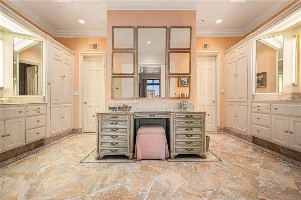 Kansas City’s Premier Luxury Penthouse! Step into an unparalleled luxury lifestyle with this exquisite penthouse, offering 4,513 square feet of interior living space complemented by 2,814 square feet of private outdoor terraces - all with breathtaking views of the Country Club Plaza. Thoughtfully designed for comfort and sophistication, this residence is a rare gem in the Kansas City market. The three-bedroom layout ensures privacy and elegance, with each bedroom featuring an en-suite bath. The west wing is dedicated to the primary suite, with a lavish bath featuring custom Dessin Fournir vanities, bespoke mirrors, and two separate toilet rooms. Adjacent to the suite is a stunning wood-paneled library/den, adorned with antique fluted pilasters, a marble-clad wood-burning fireplace (fitted for gas), and a sophisticated rosewood bar with a marble top, Guerin fixtures, a Sub-Zero wine fridge, and a concealed barware mirror. Over the fireplace, a custom Gregorious Pineo antique reproduction Chinese screen hides a flat-screen TV, blending old-world charm with modern convenience. The east wing houses two luxurious guest suites, both wrapped in Kneedler Fauchere hempcloth-covered walls and framed by floor-to-ceiling windows with sliding patio doors leading to a private terrace. The gourmet kitchen has a six-burner Wolf stove with pot filler, a custom range hood, Sub-Zero double refrigerators with additional pullout fridges and freezers, double Thermador ovens, and extensive storage, ensuring every culinary need is met. One of only 26 exclusive residences in the building, this penthouse offers unmatched amenities, including a fitness center, a heated outdoor pool with lounge seating, a party room, a 24-hour doorman, a guest suite, and two reserved garage parking spaces per unit. For those seeking the finest condo living in Kansas City, complete with expansive outdoor terraces and breathtaking Plaza views, this is truly a one-of-a-kind opportunity.